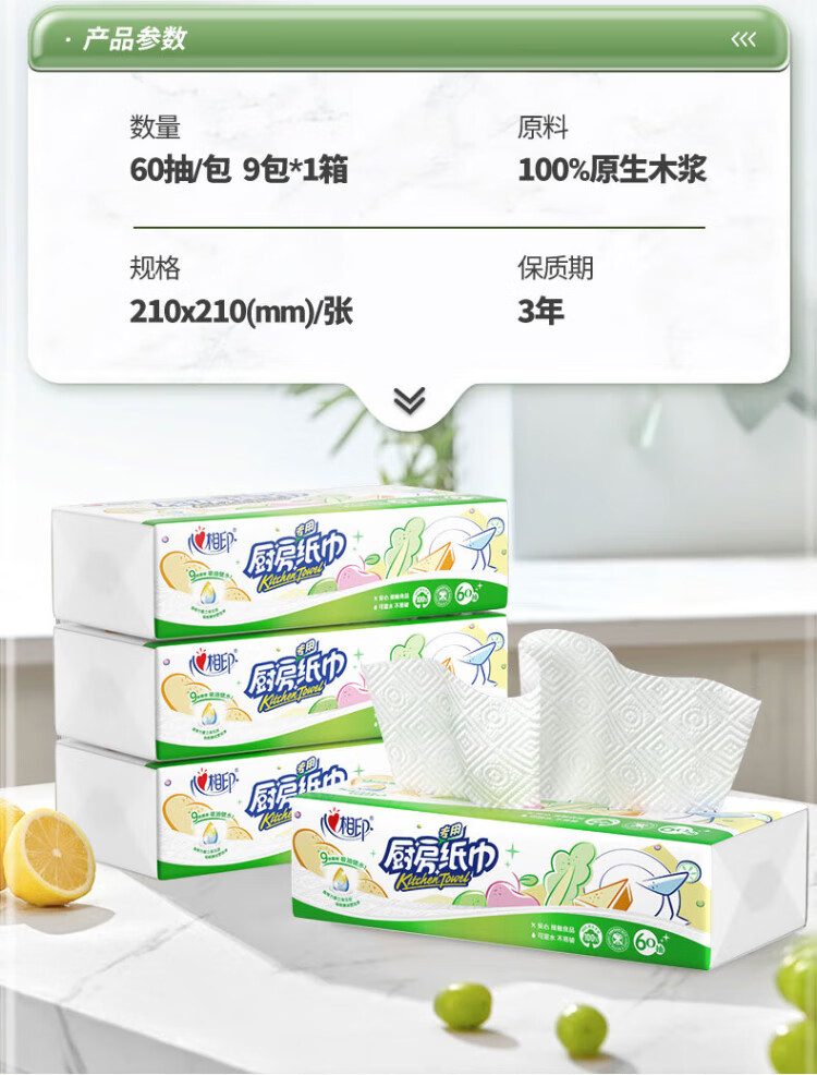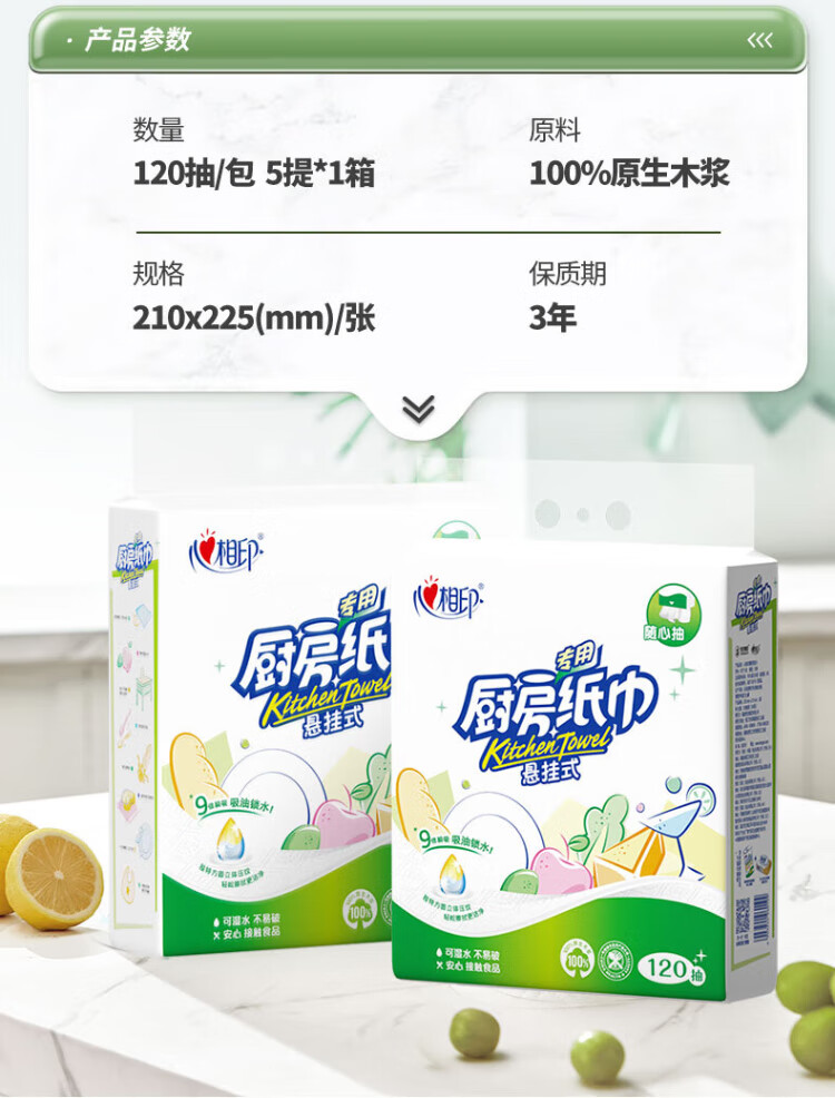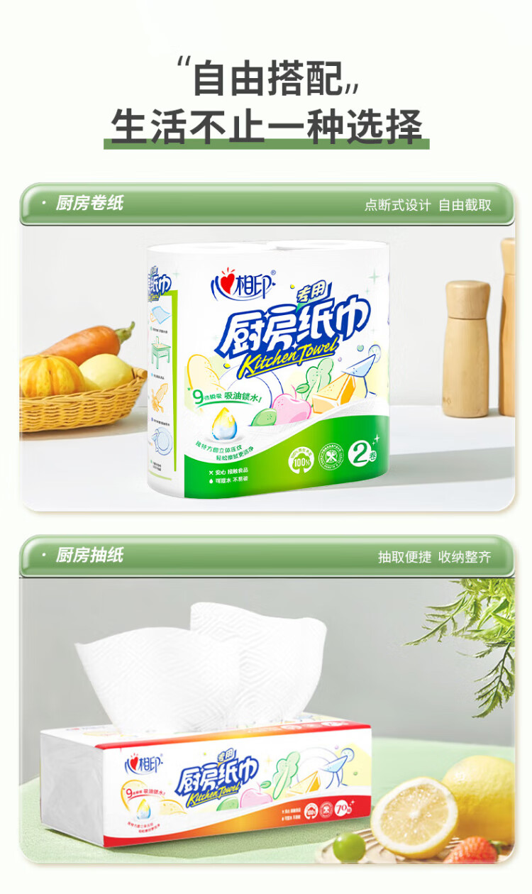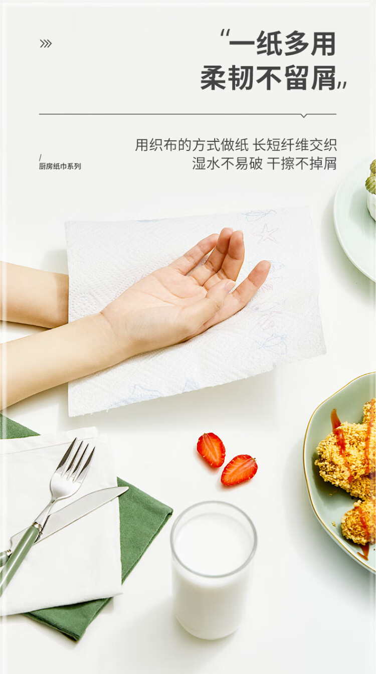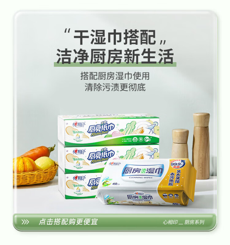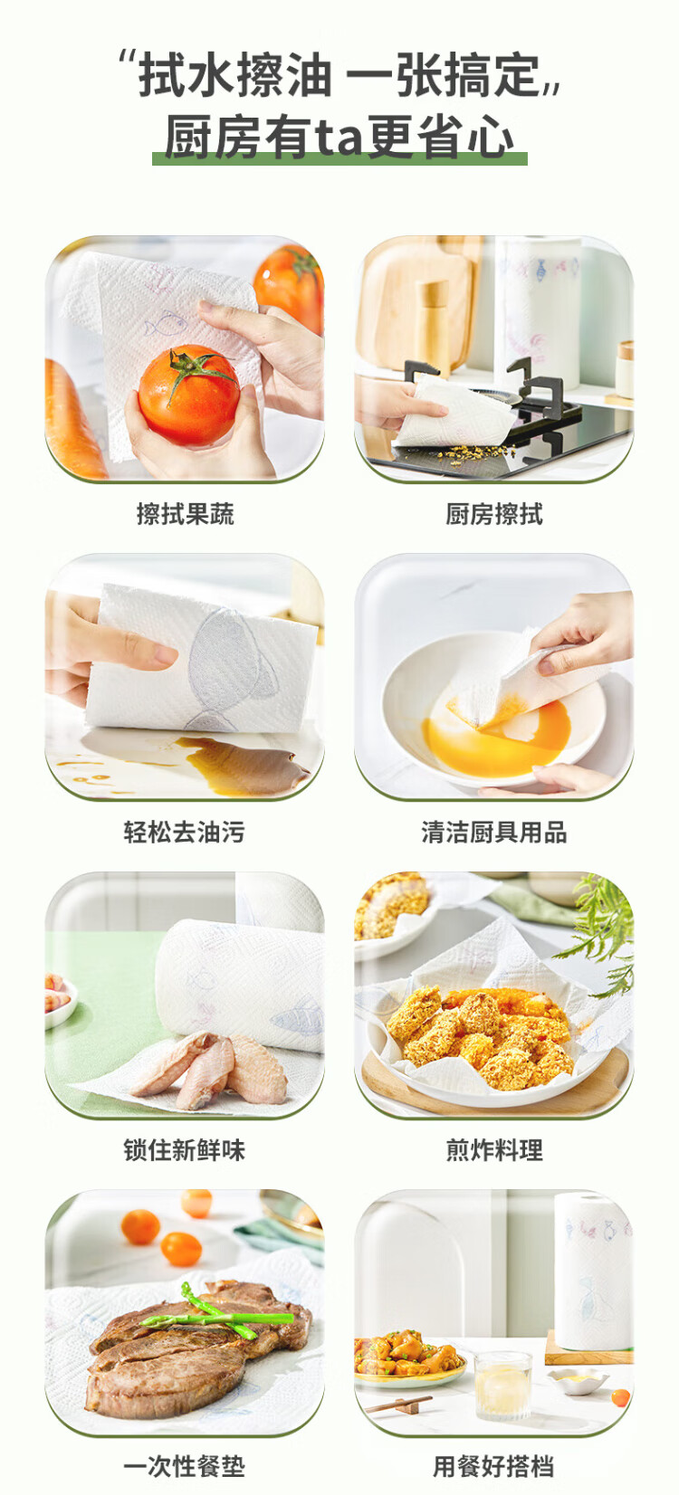 Heart-to-heart kitchen paper kitchen grease paper household kitchen paper oil-absorbent and water-absorbent thickened paper towel family pack cheap large roll 2 layers 75 sections * 4 rolls