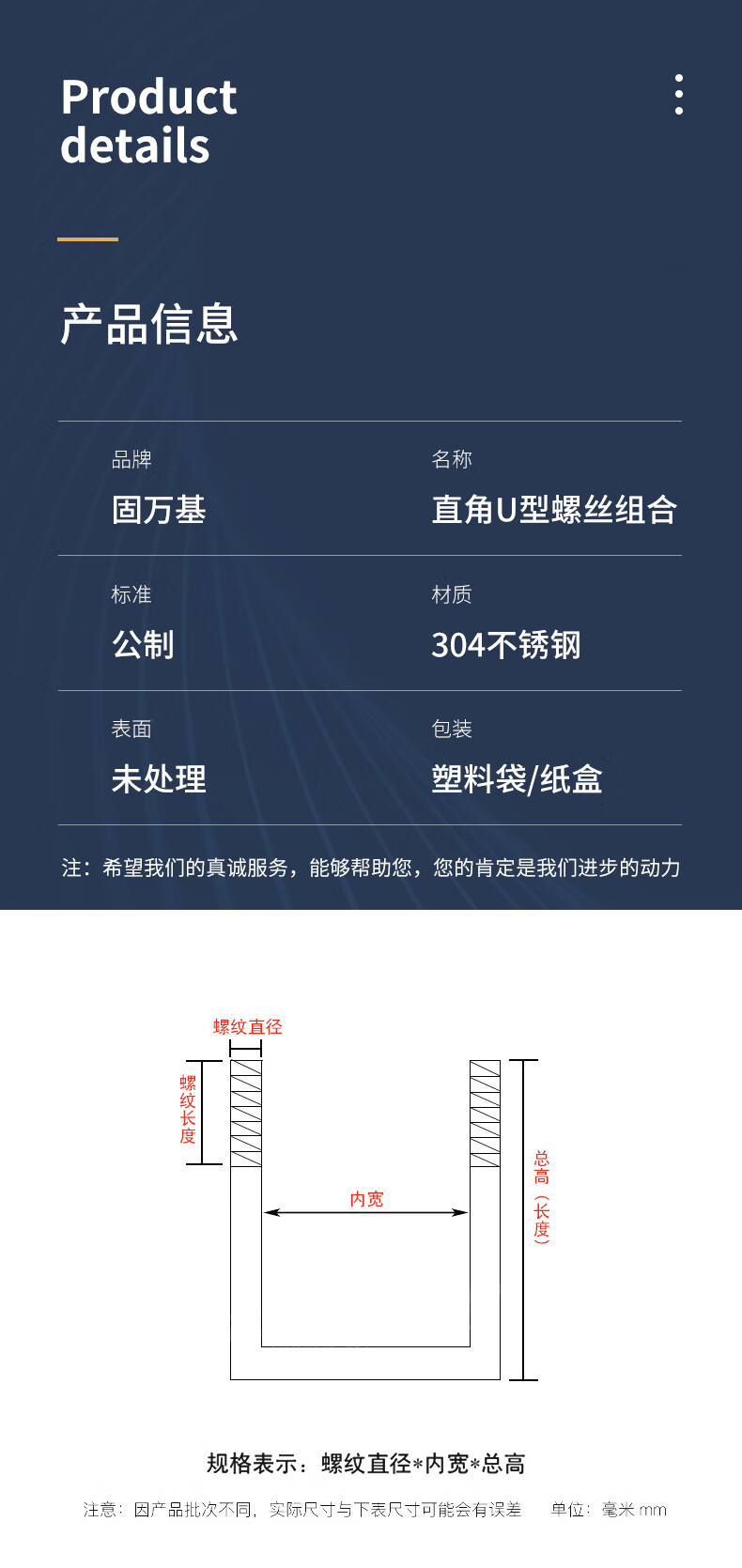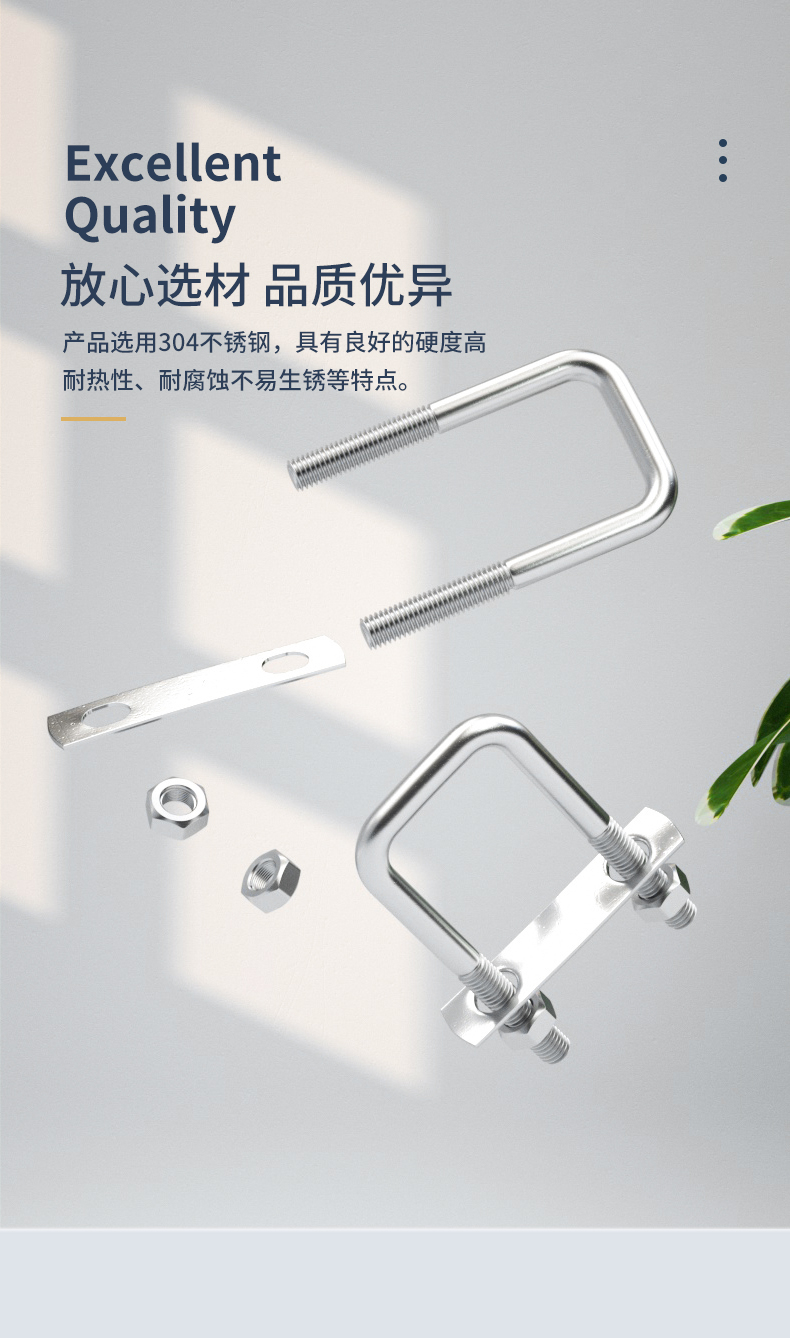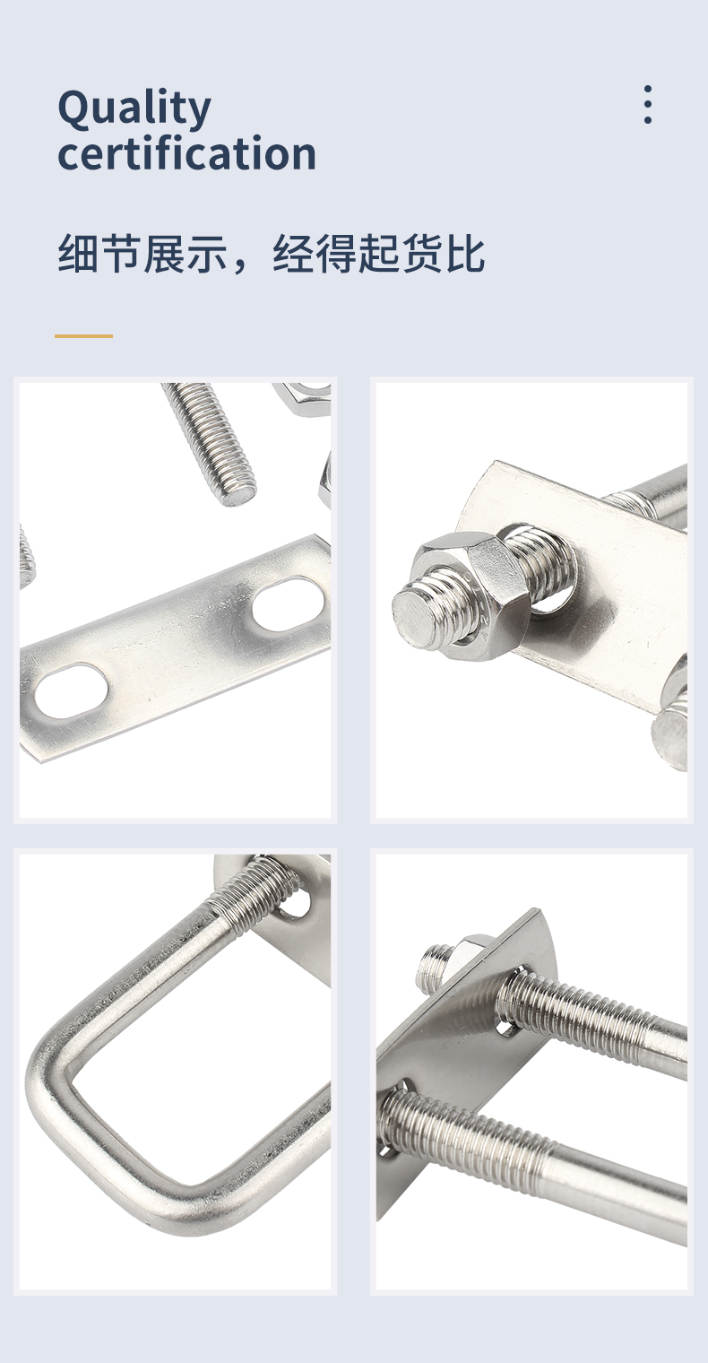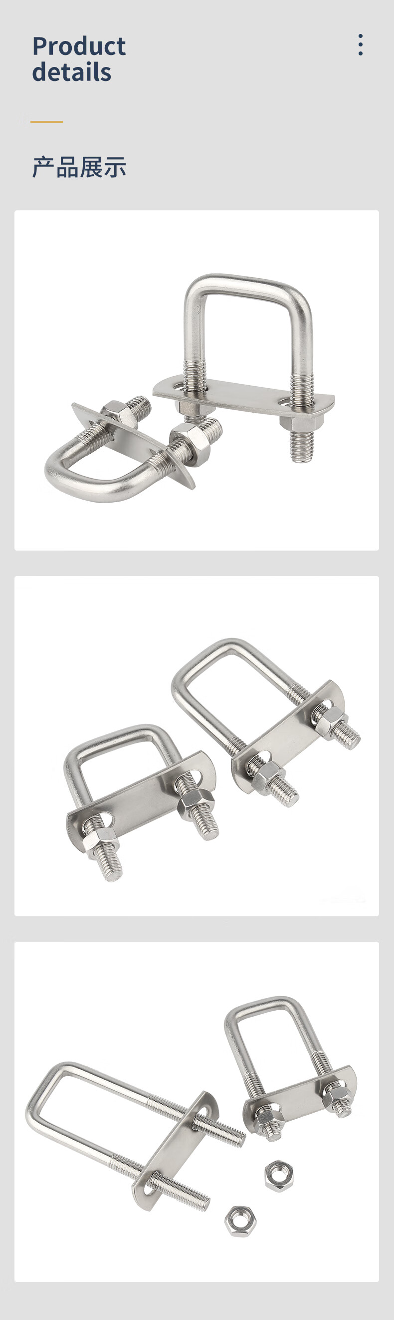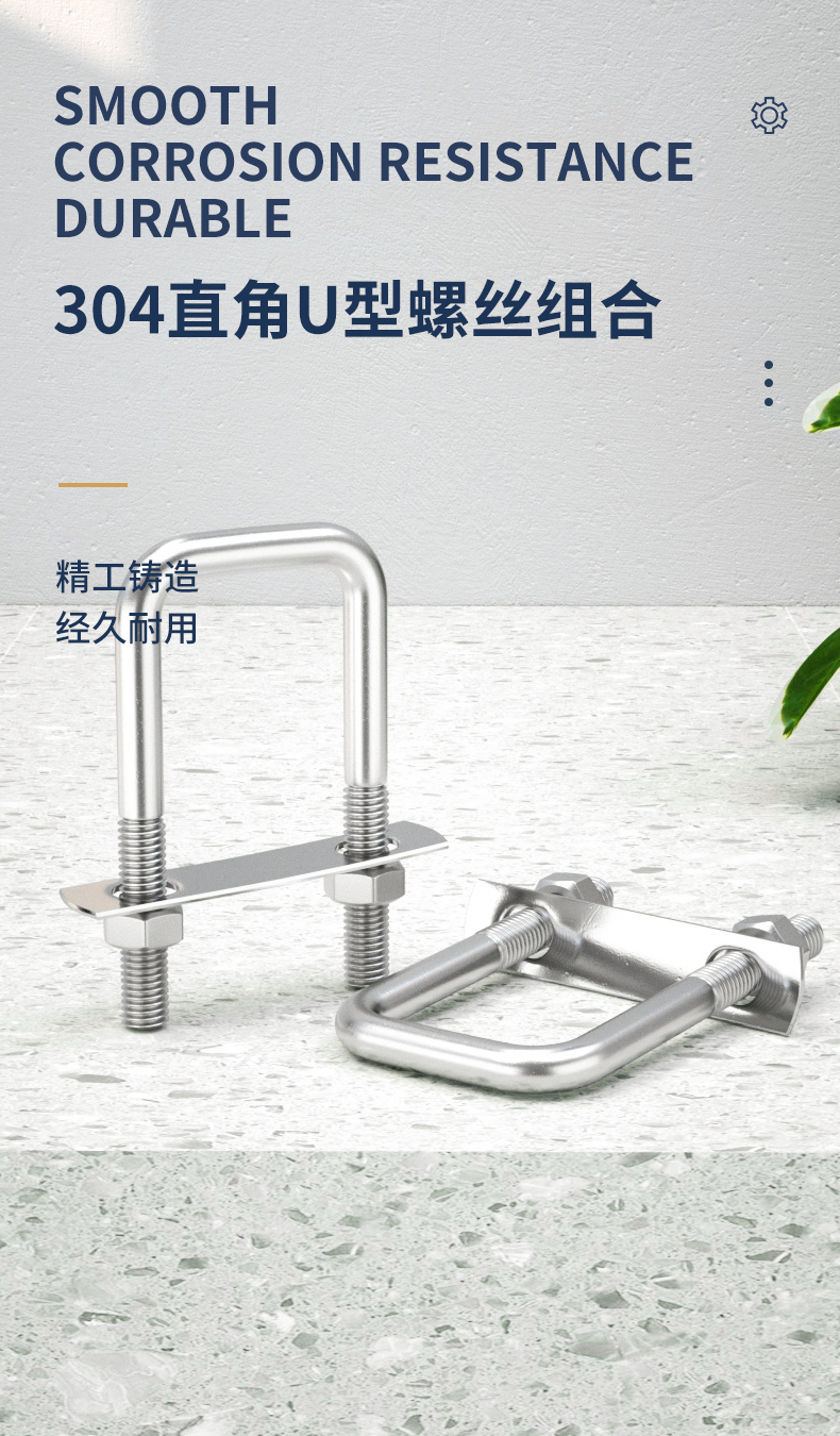 GUWANJI 304 stainless steel right-angle U-bolt U-tube clamp pipe clamp screw square clamp U-shaped screw nut set M6*20*50 (2 sets)