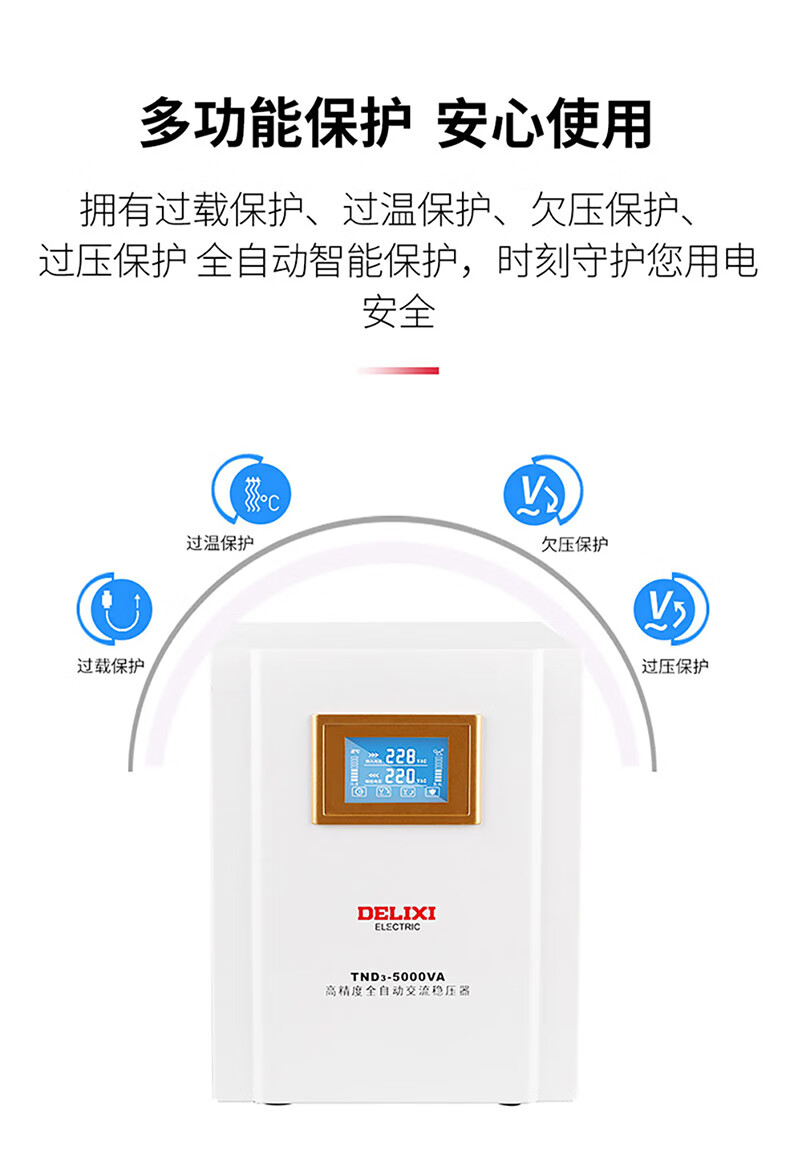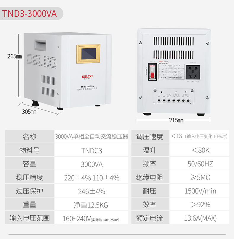 Delixi Electric household digital display voltage regulator 3000W computer refrigerator air conditioner hang-up single-phase AC power supply TND3 3KW