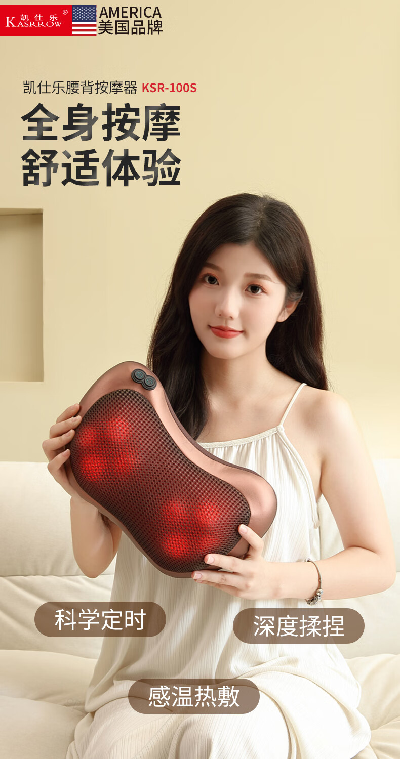 KASRROW, the best family gift, neck massager, massage pillow, shoulder and neck massage, shoulder, neck, waist and back massage cushion, neck, legs, soles, whole body, parent birthday gift for girlfriend, 8D wired plug-in model, massage + timing + hot compress + Chinese red