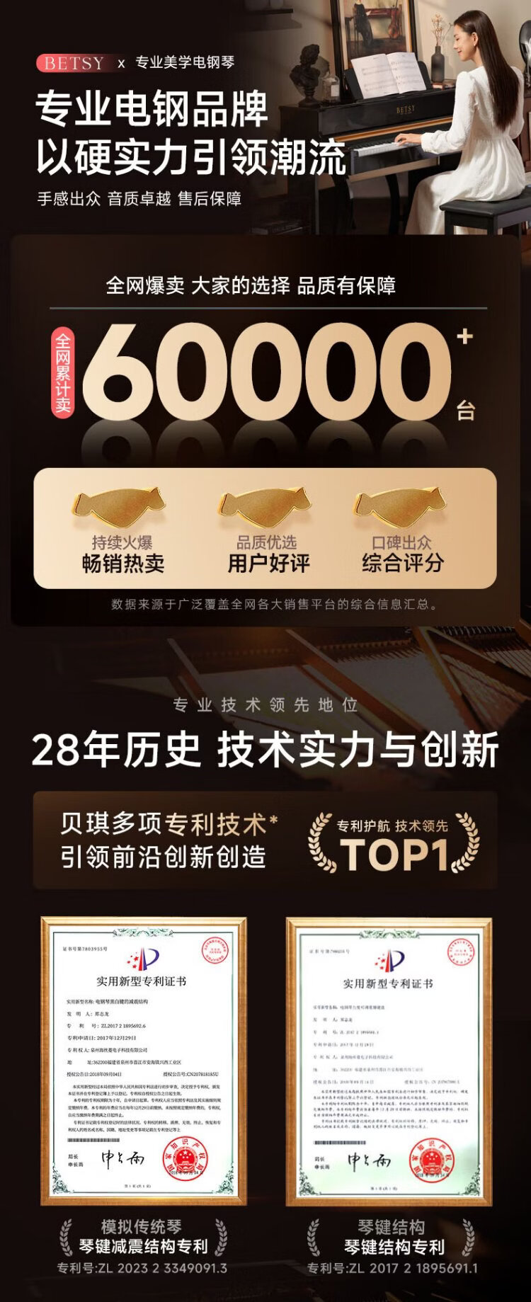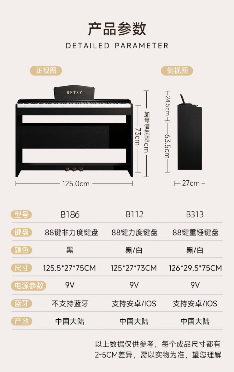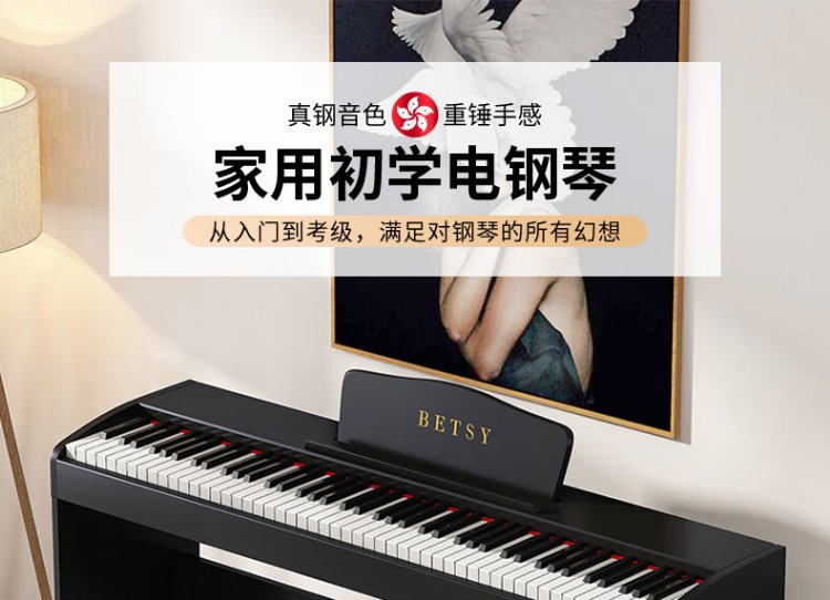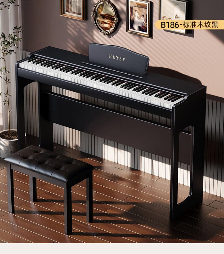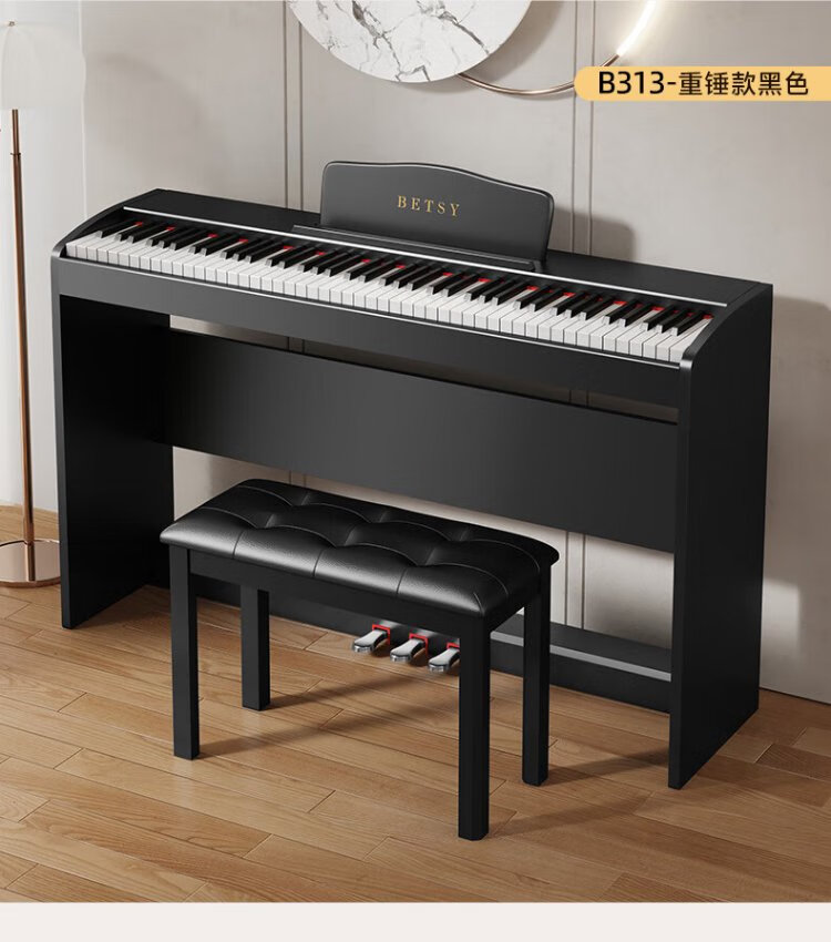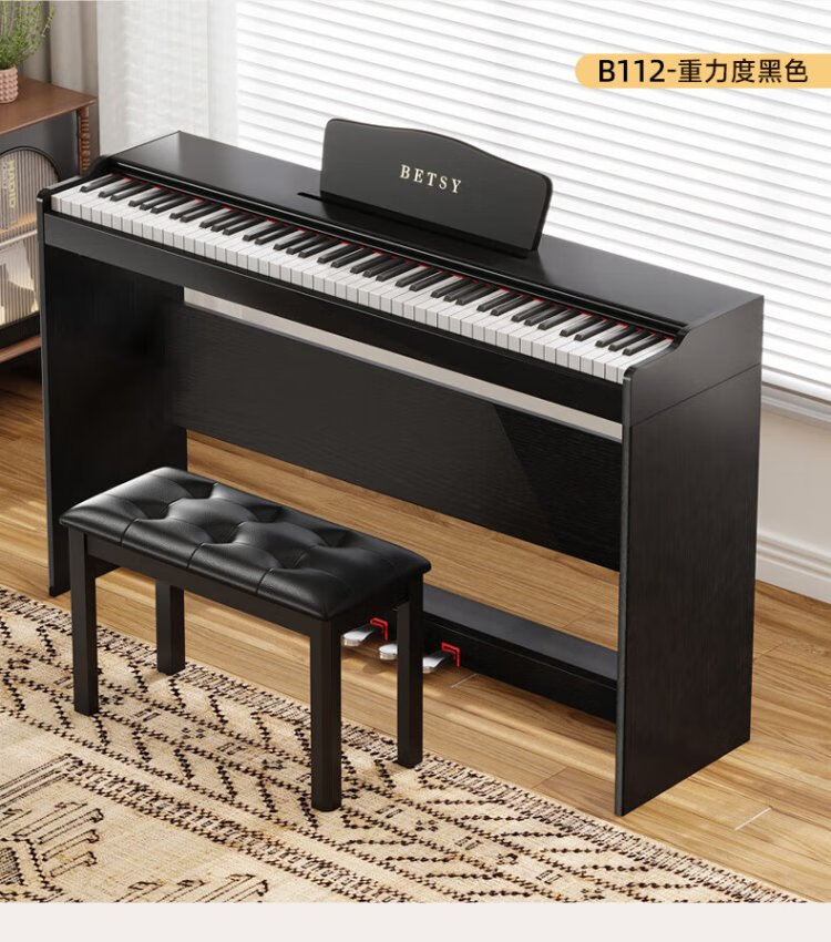 Betsy B112 heavy hammer 88-key electric piano for beginners, home practice piano for adults and children, professional graded electronic piano B112 force keys - wood grain black, high configuration (piano + piano learning gift package + double piano bench)