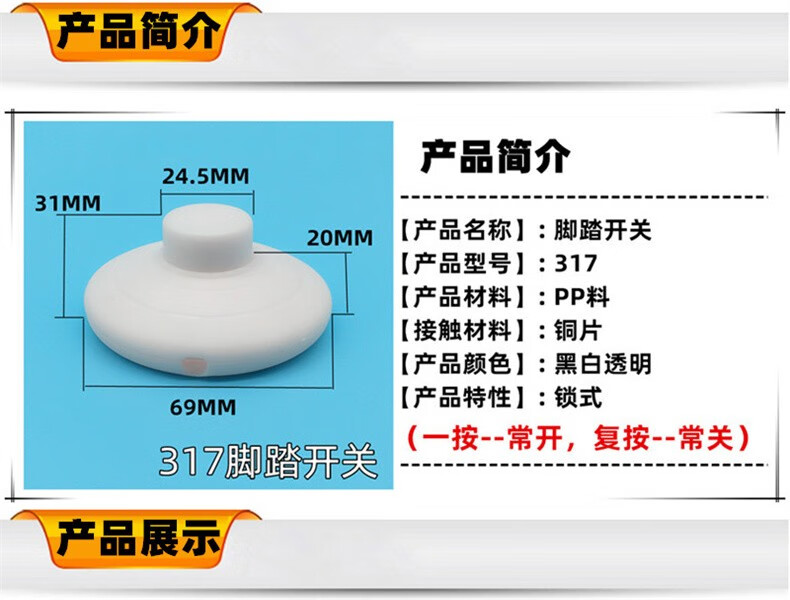 Floor lamp LED lamp table lamp bedside lamp copper sheet contact foot safety protection flame retardant material convenient wiring midway switch button online switch floor light switch floor switch foot switch black