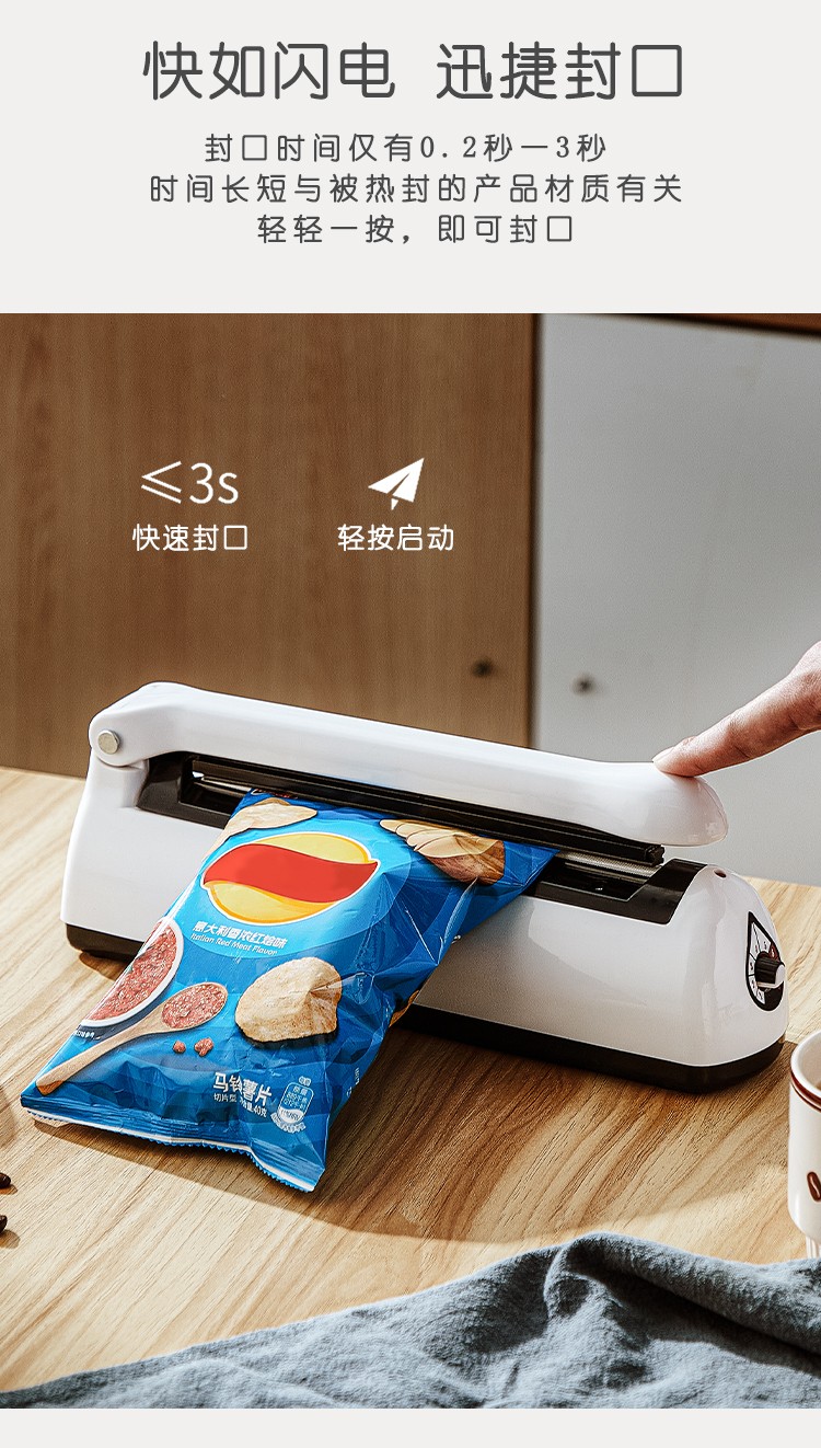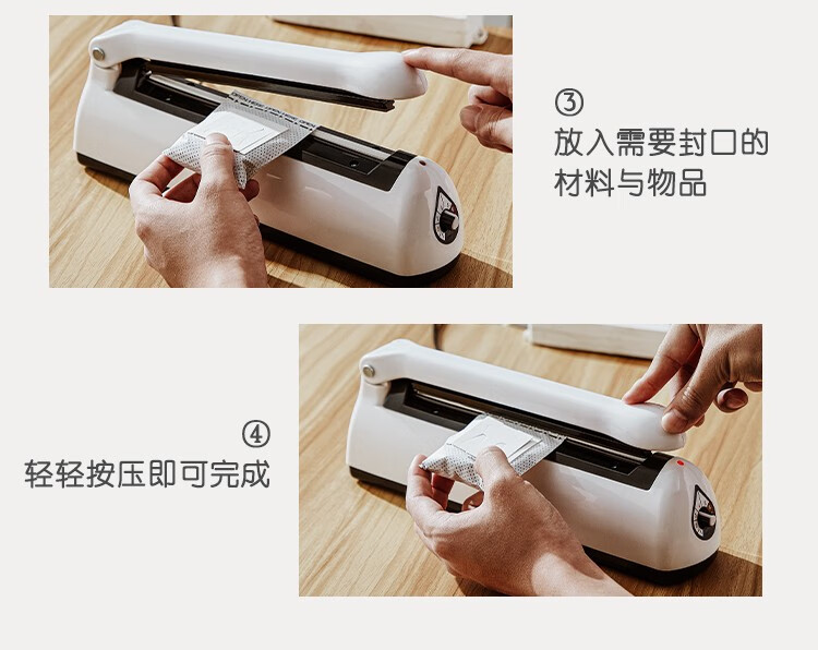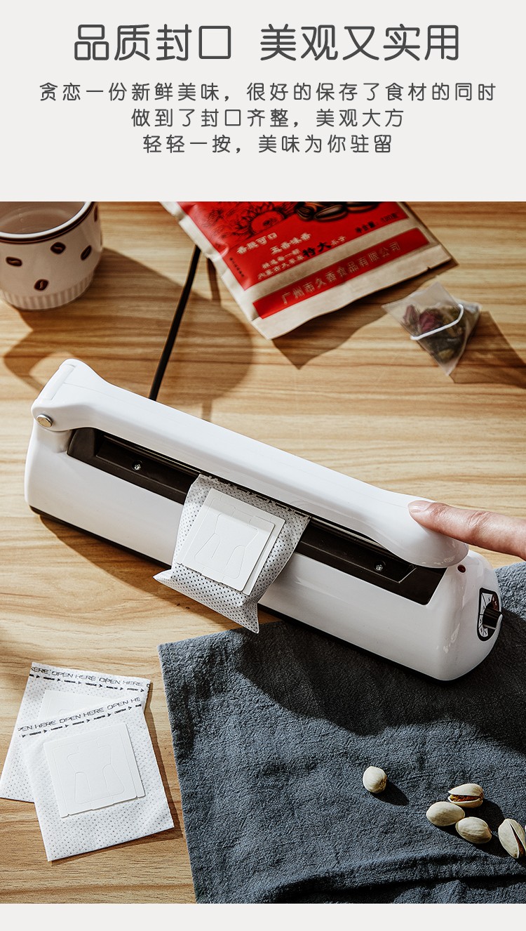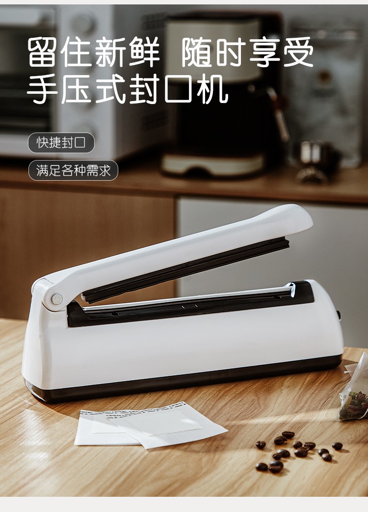 Bincoo hand pressure sealing machine ear filter paper sealer small household plastic sealing machine snack plastic bag packaging machine sealer white - multi-level adjustment