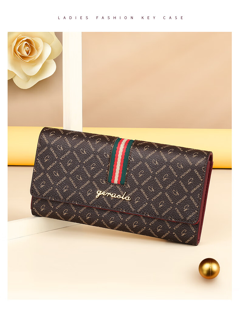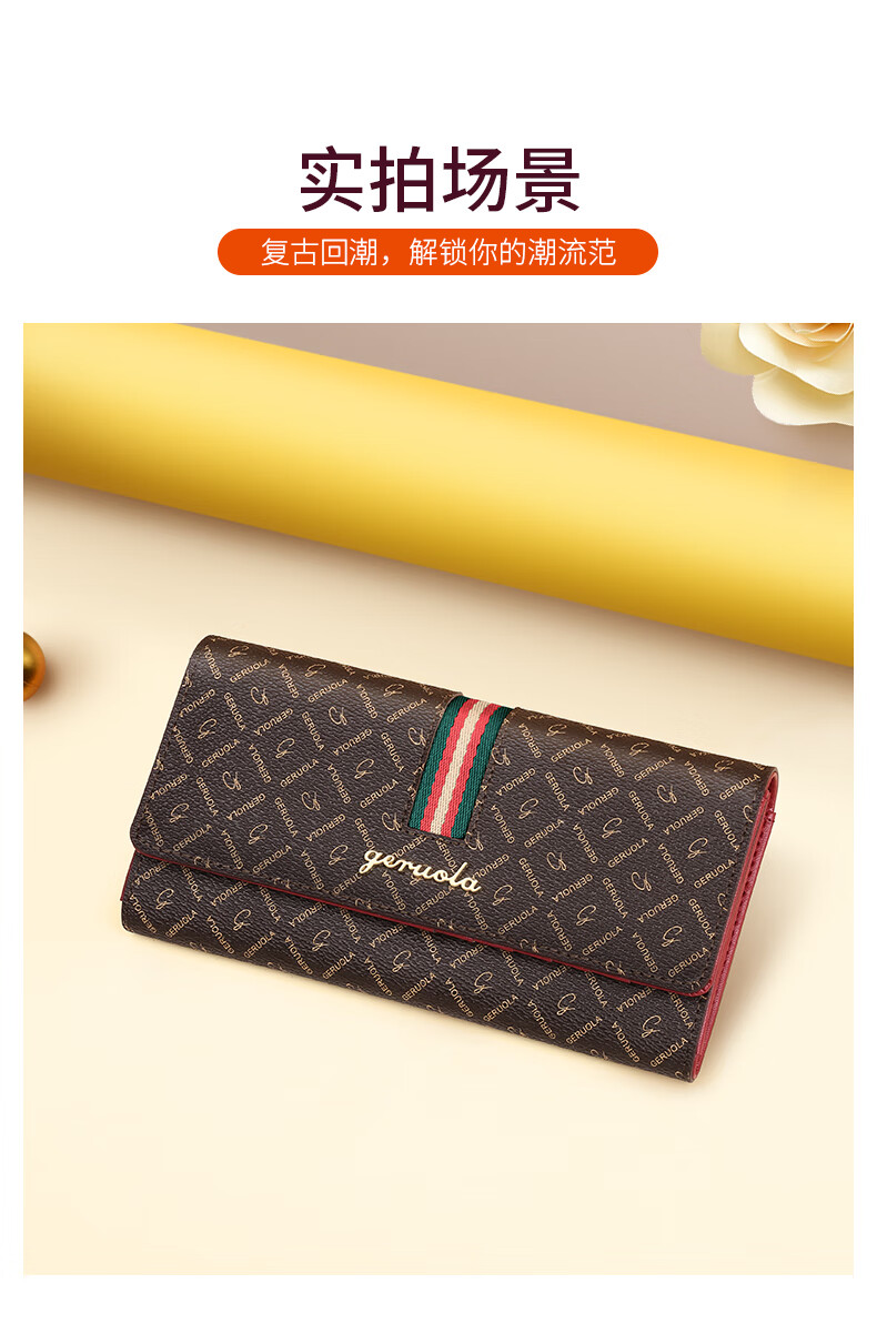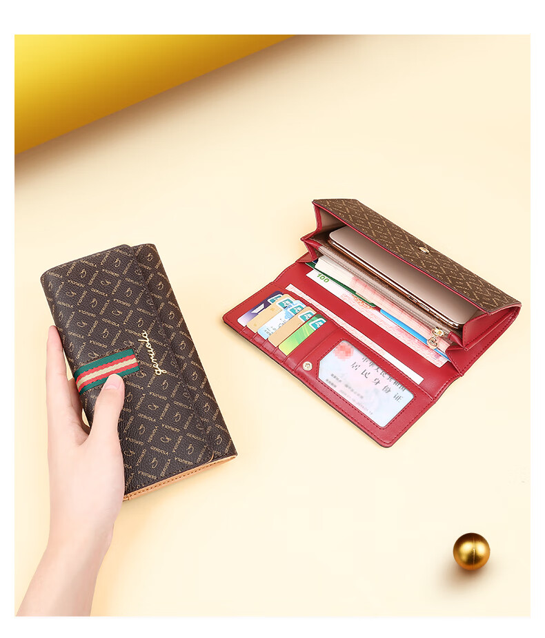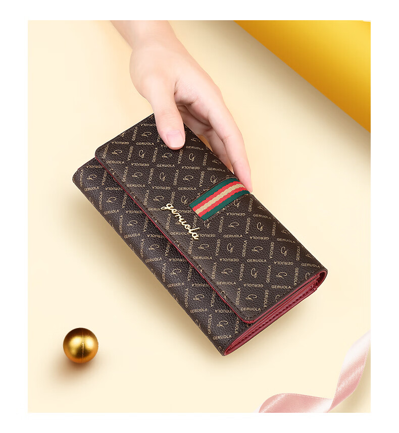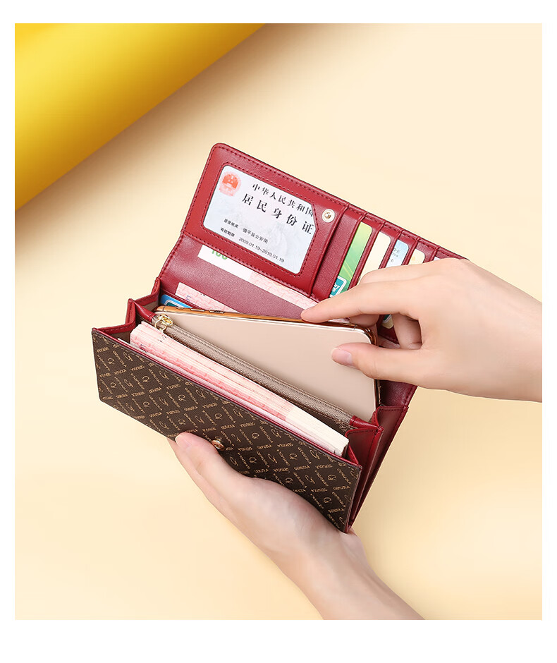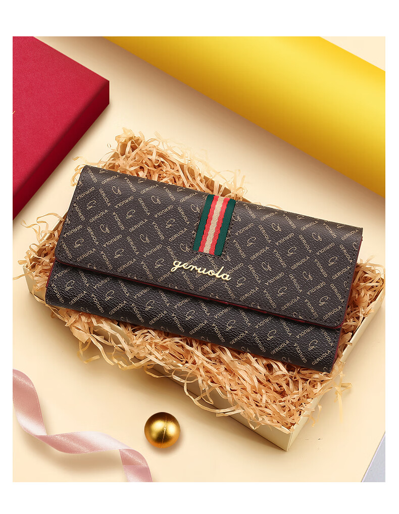 Gorola 2025 New Wallet Women's Long Fashion Printed Clutch European and American Style Ladies' Wallet Clutch Bag Multiple Card Slots Beige