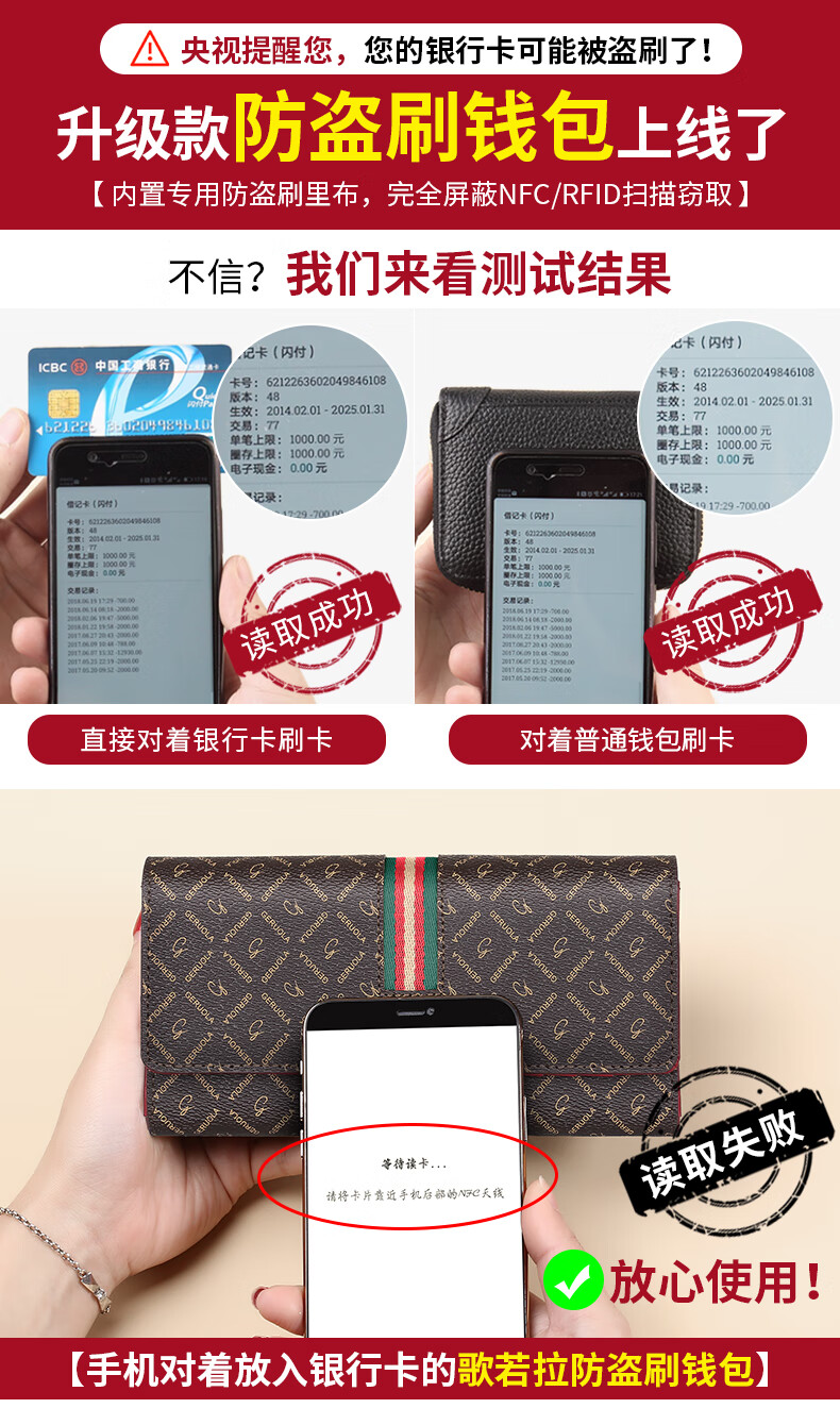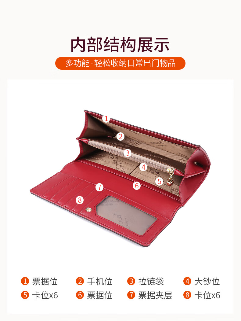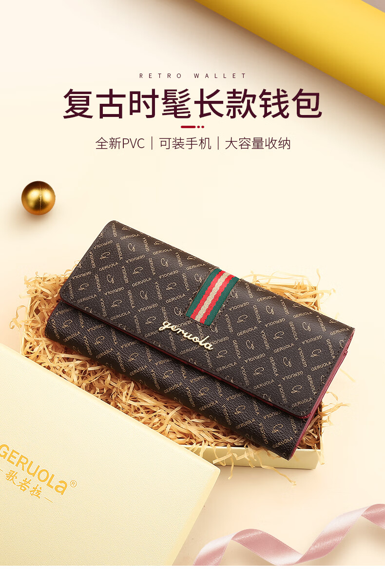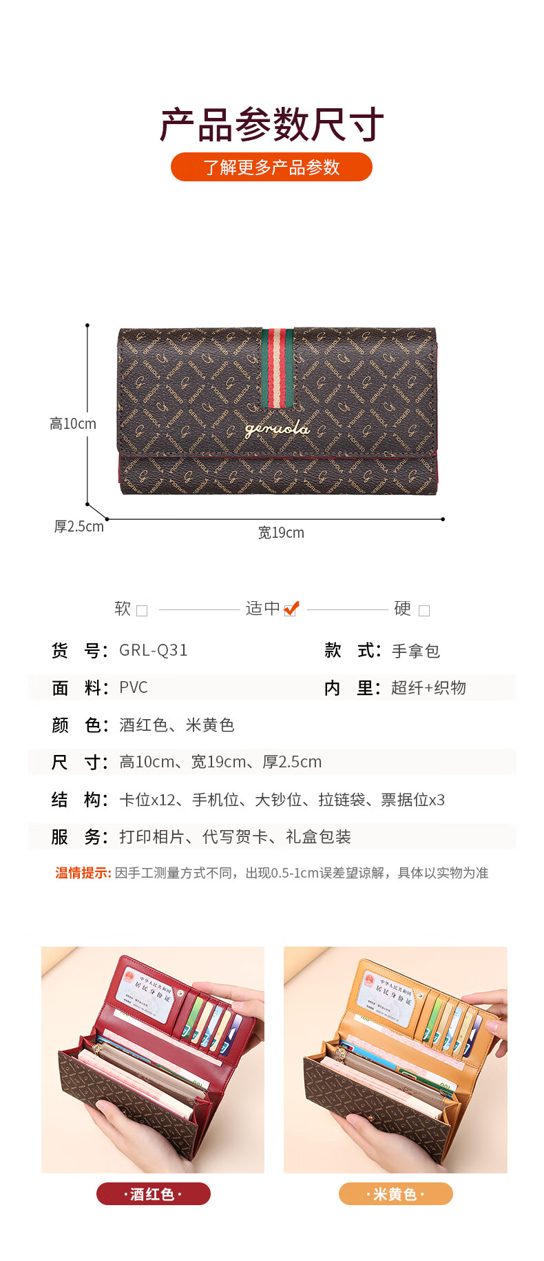 Gorola 2025 New Wallet Women's Long Fashion Printed Clutch European and American Style Ladies' Wallet Clutch Bag Multiple Card Slots Beige