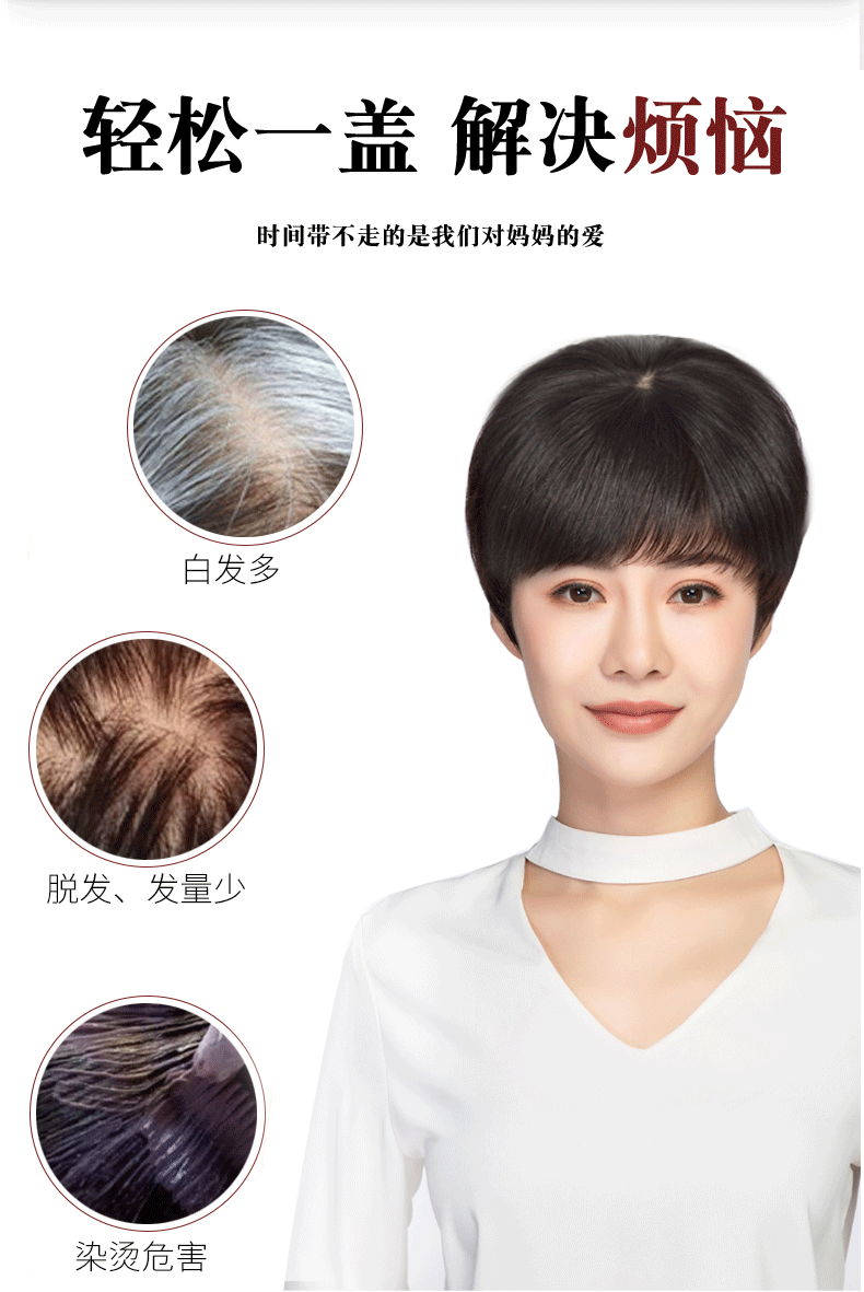 Tangni's wig piece for women's head replacement piece with full real hair for middle-aged and elderly mothers, natural, light and breathable to cover gray hair B033 full real hair delivery needle style - dark brown 20cm