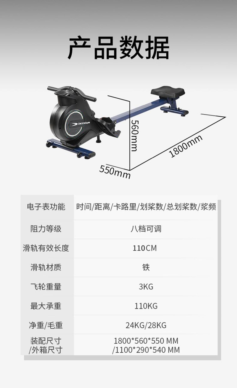 BESSGYM rowing machine foldable magnetically controlled resistance fitness equipment home rowing machine BG-R305 magnetically controlled foldable
