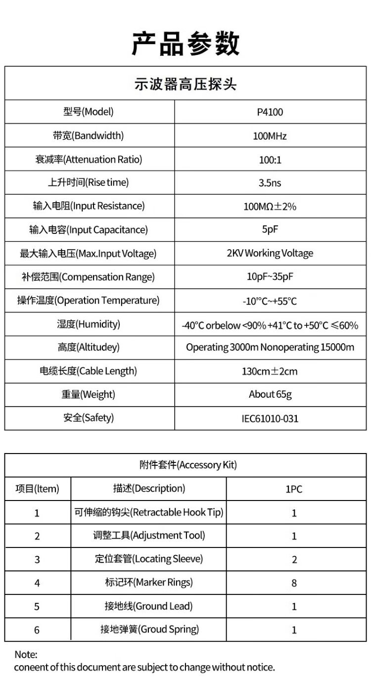 HantekHantekP4100 oscilloscope high voltage probe 100 1 passive high voltage voltage probe bandwidth 100M P4100 bandwidth 100M (input voltage 2KV)