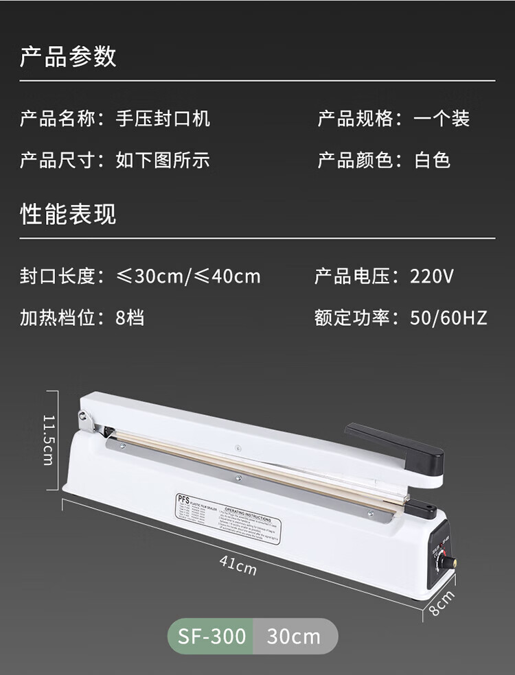 Baijie sealing machine high-end hand-pressed commercial and household plastic film sealing machine plastic bag tea bag native product bag packaging machine sealing machine 300mm# thousands of people buy#