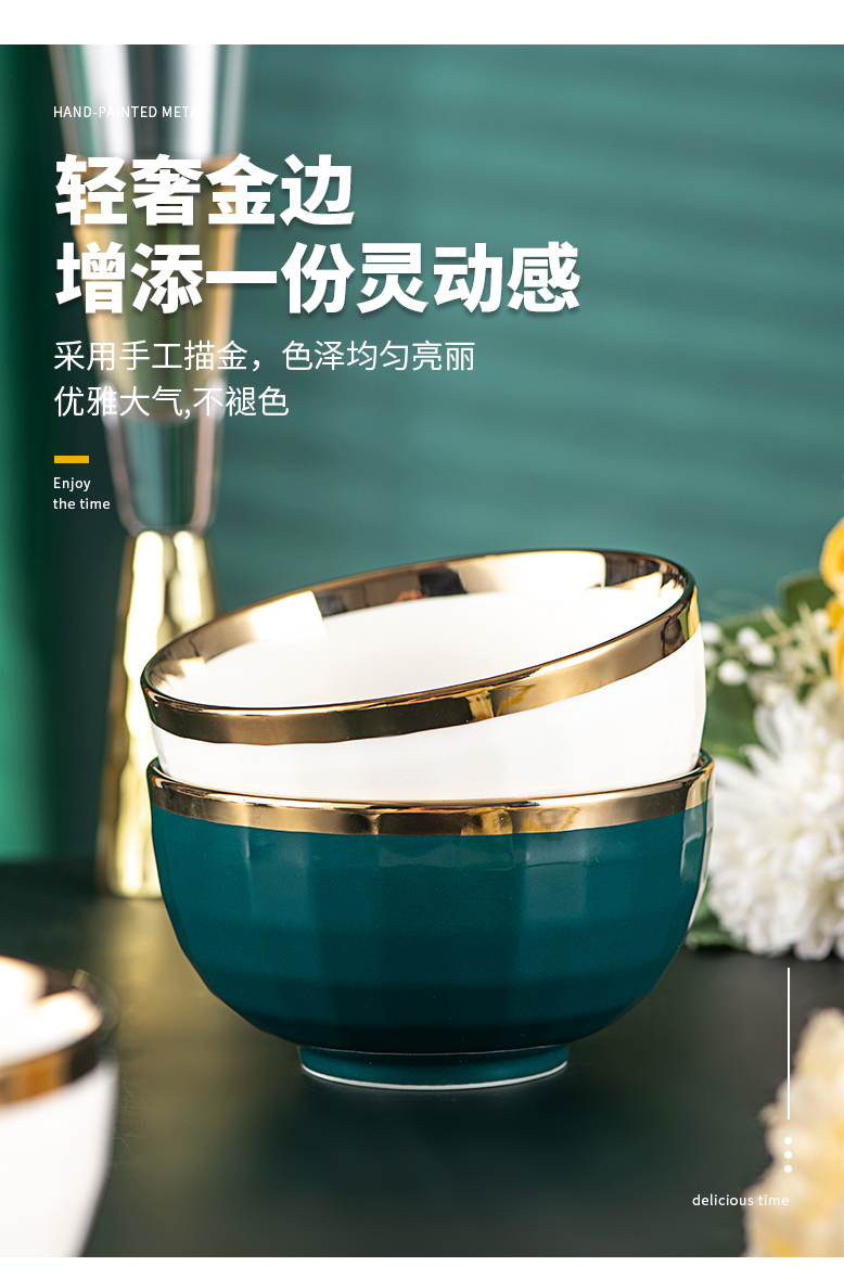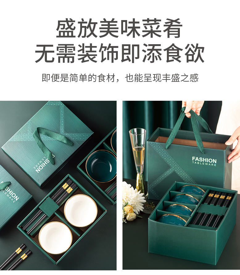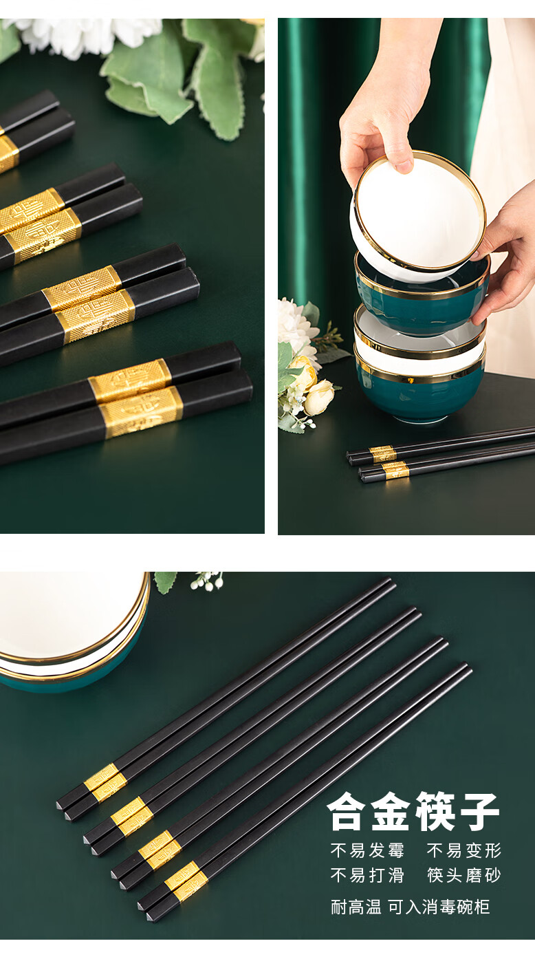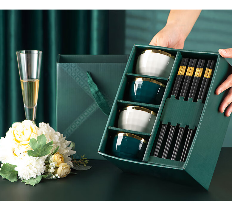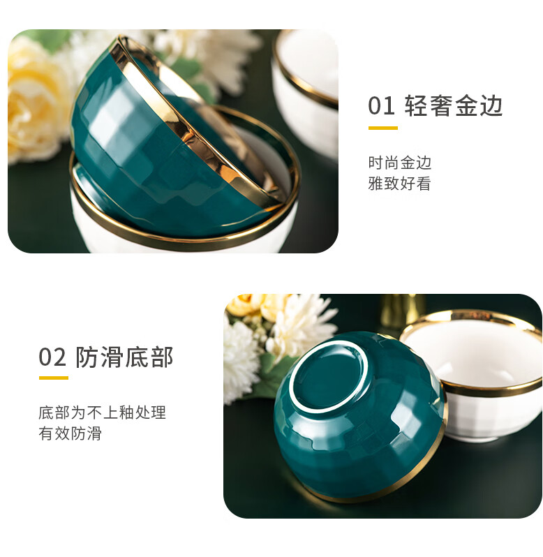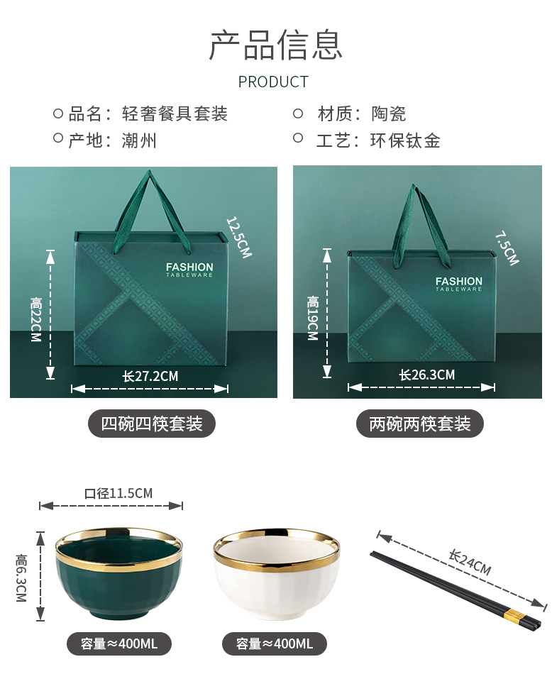 SUMEIJI gift bowl and chopsticks set, ceramic light luxury bowl set, gift to customers for annual meeting, employee benefits, souvenirs, store celebration prizes, gold-plated 4.5-inch bowl, 1 white, 1 green, 2 chopsticks