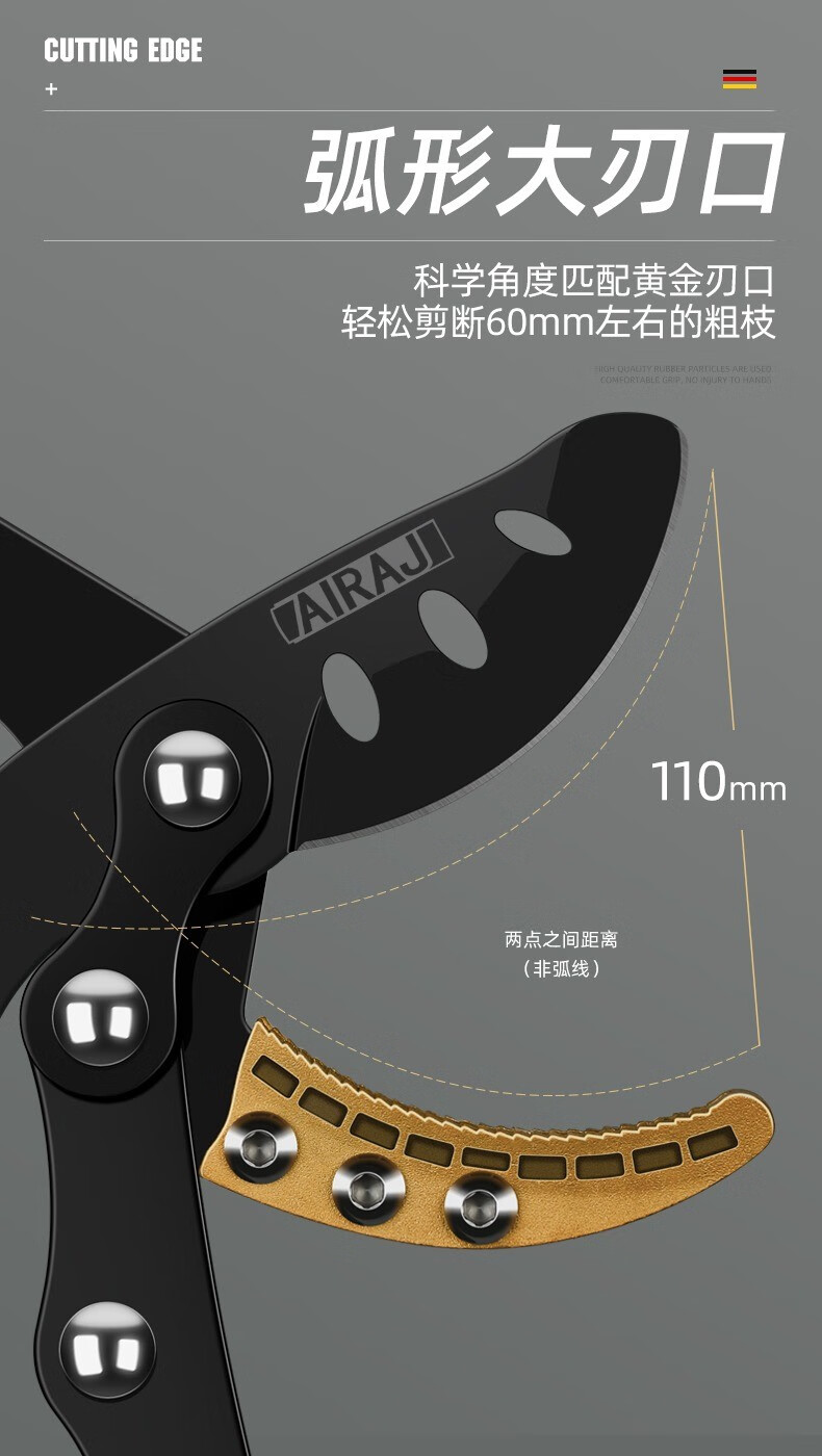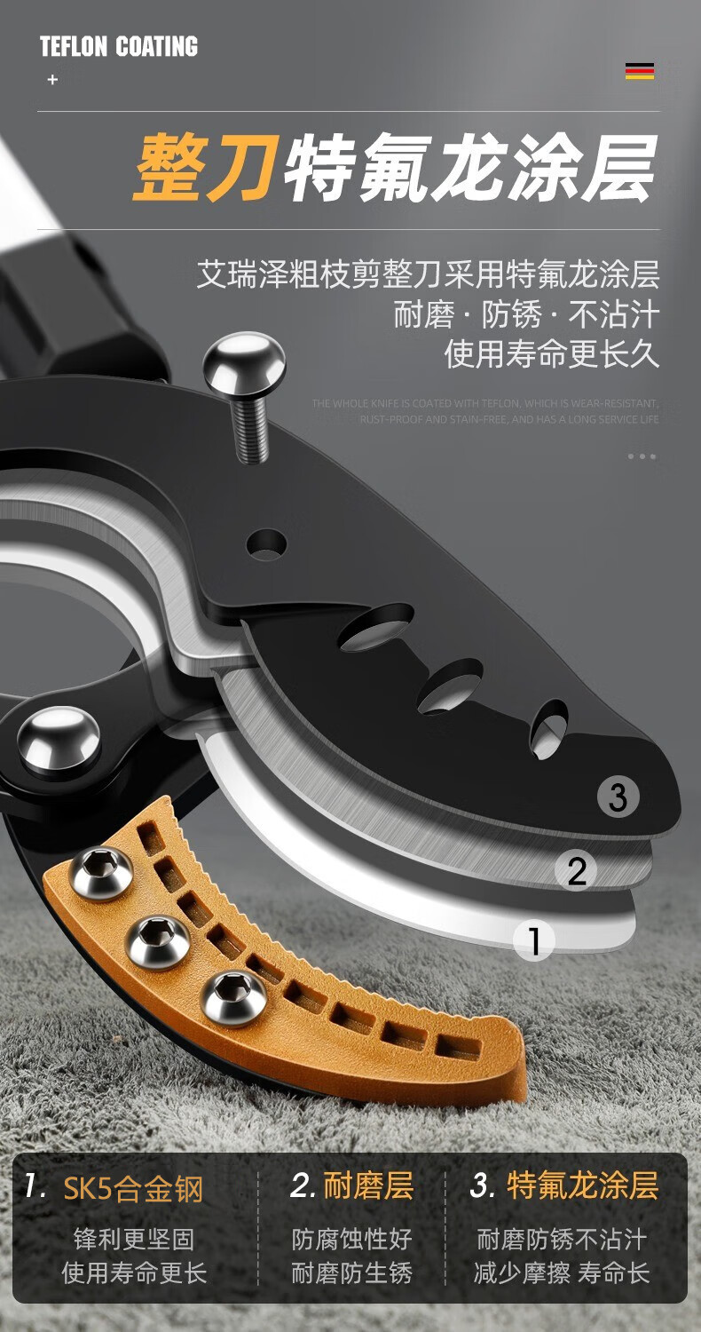 Arrizo Thick Branch Scissors Gardening Fruit Tree Pruning Branch Shears Pruning Shears Garden Powerful Shears Telescopic Manual Farm Tools Black Gold Standard Thick Branch Scissors