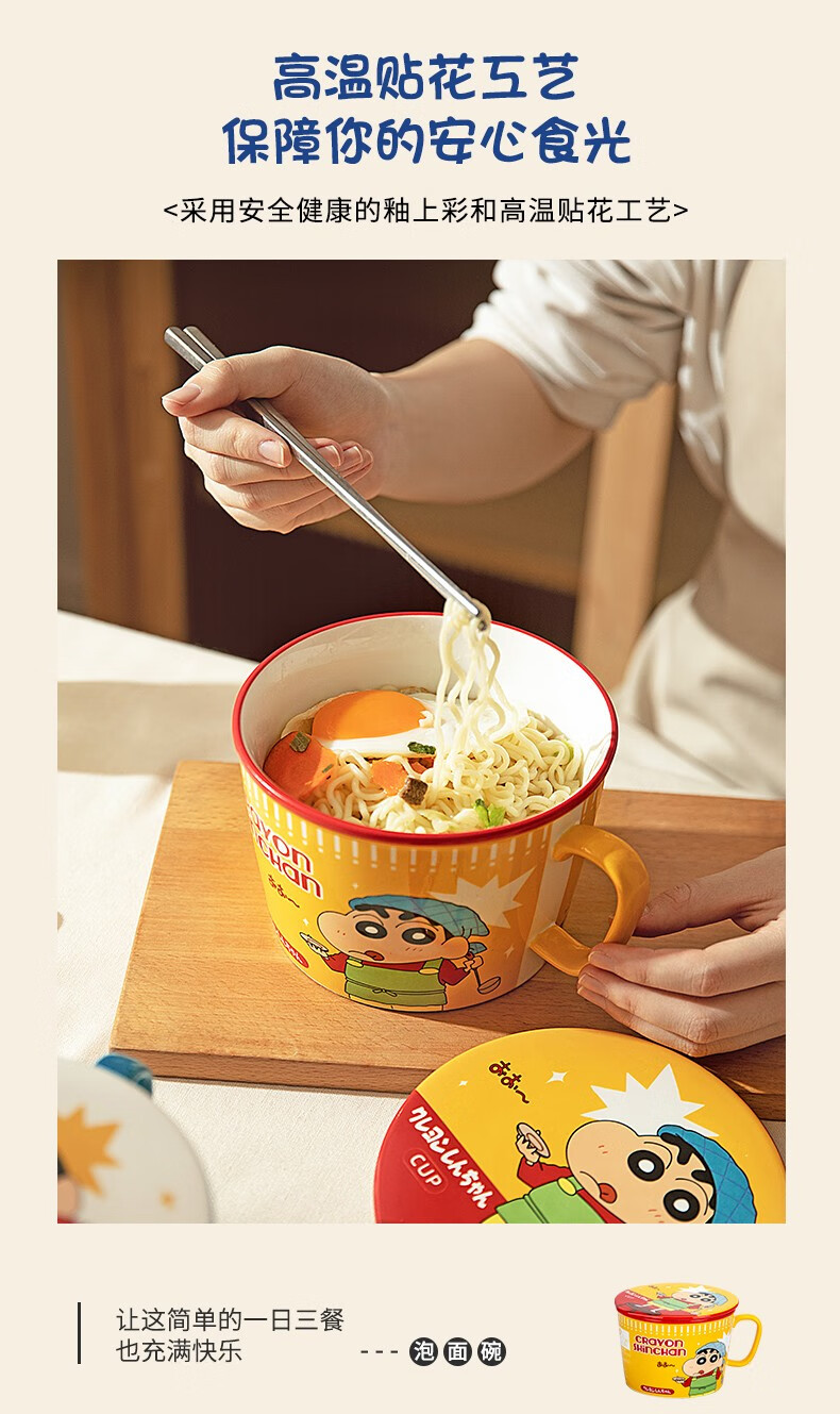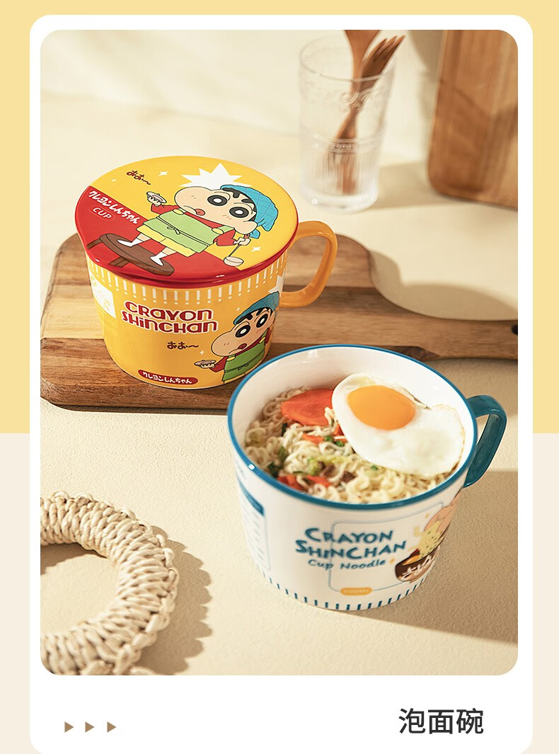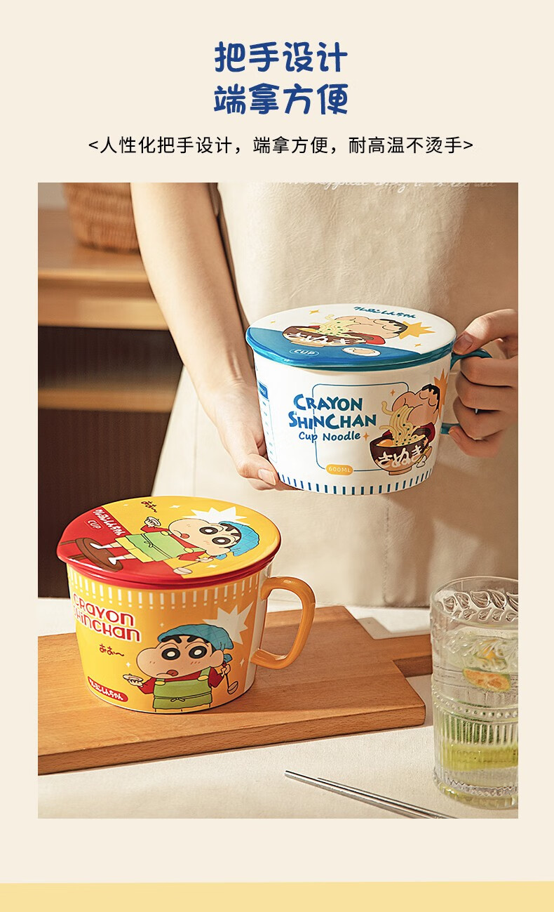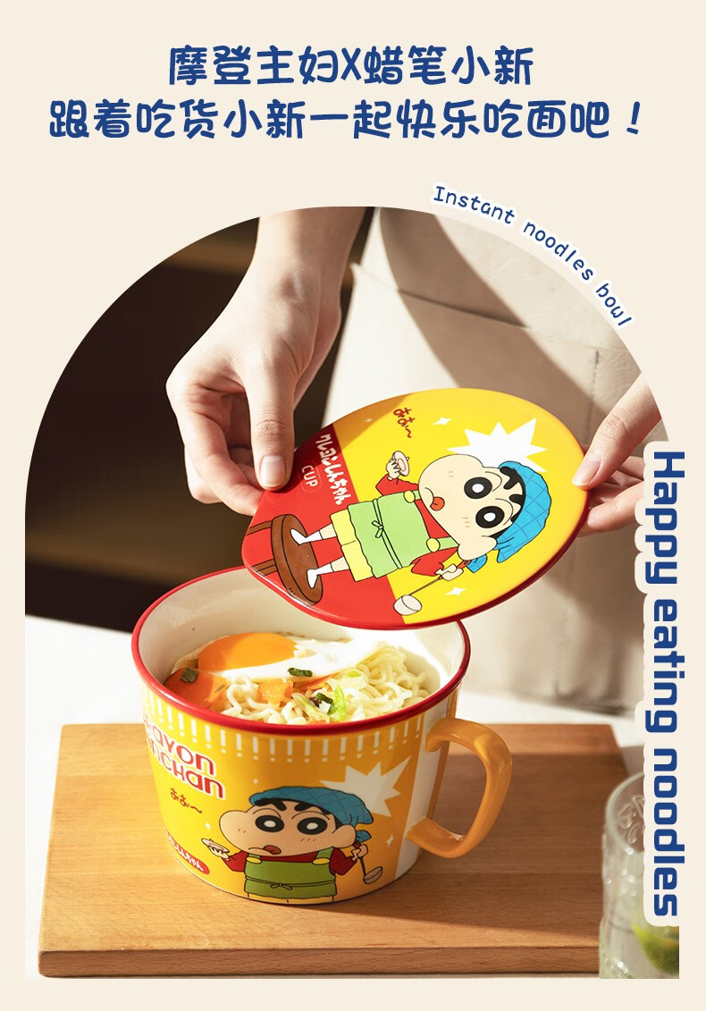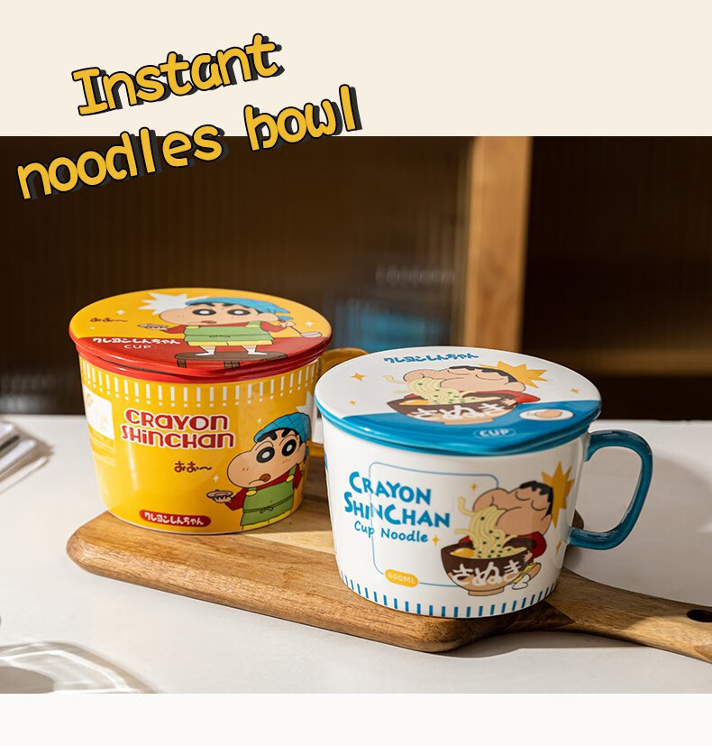 Modern Housewife Crayon Shin-chan co-branded Japanese instant noodle bowl with lid for dormitory students large instant noodle cup noodle bowl Crayon Shin-chan instant noodle bowl yellow