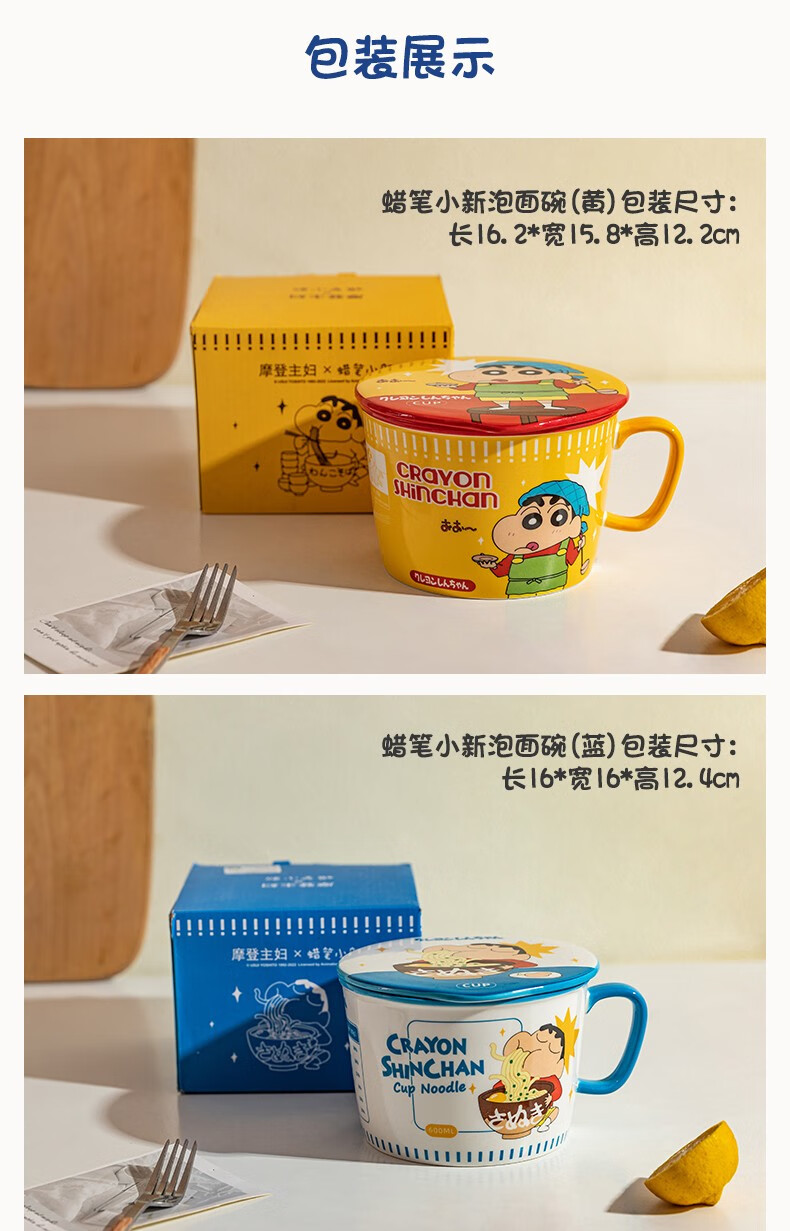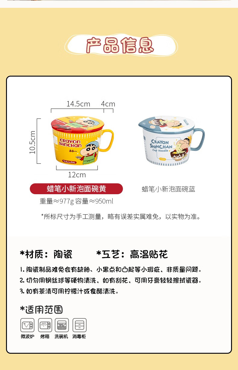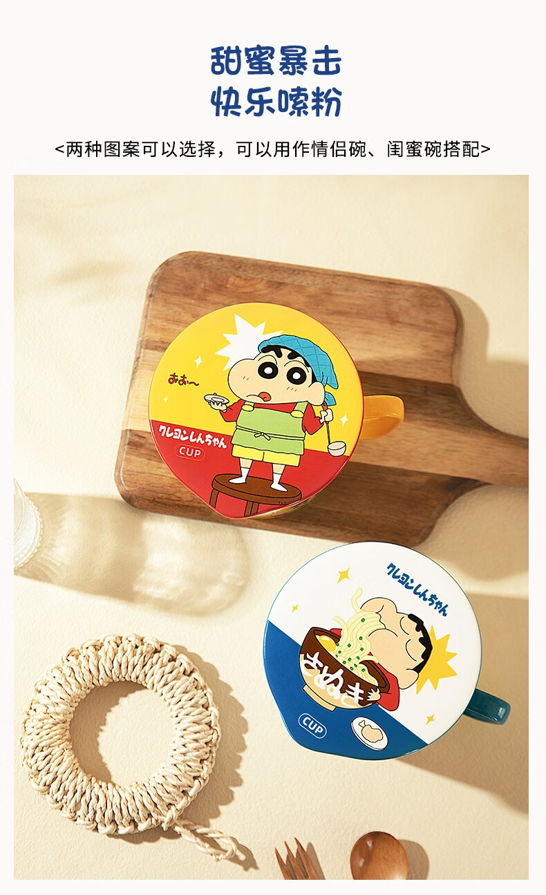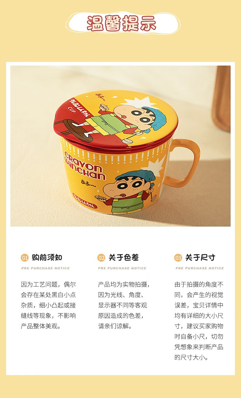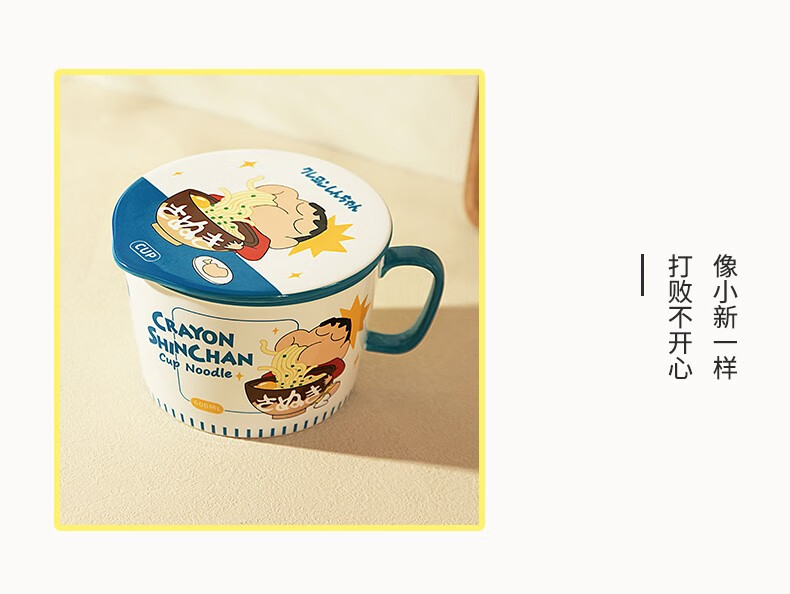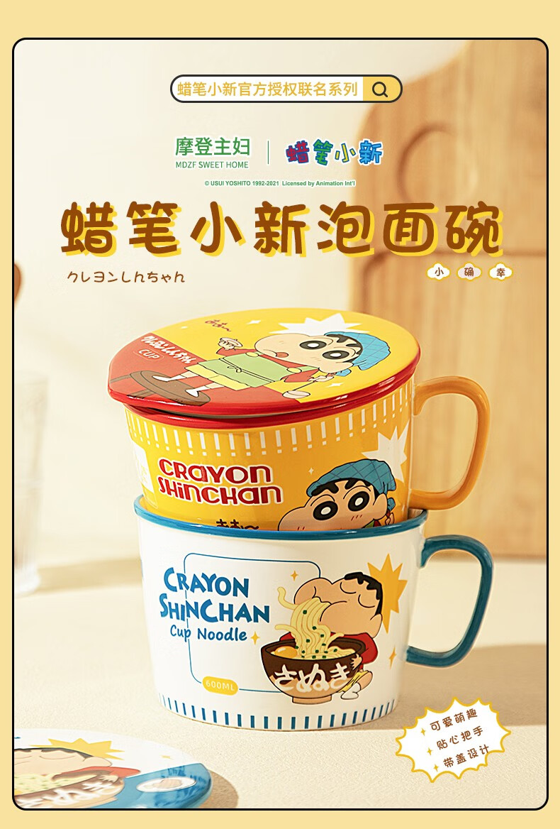 Modern Housewife Crayon Shin-chan co-branded Japanese instant noodle bowl with lid for dormitory students large instant noodle cup noodle bowl Crayon Shin-chan instant noodle bowl yellow
