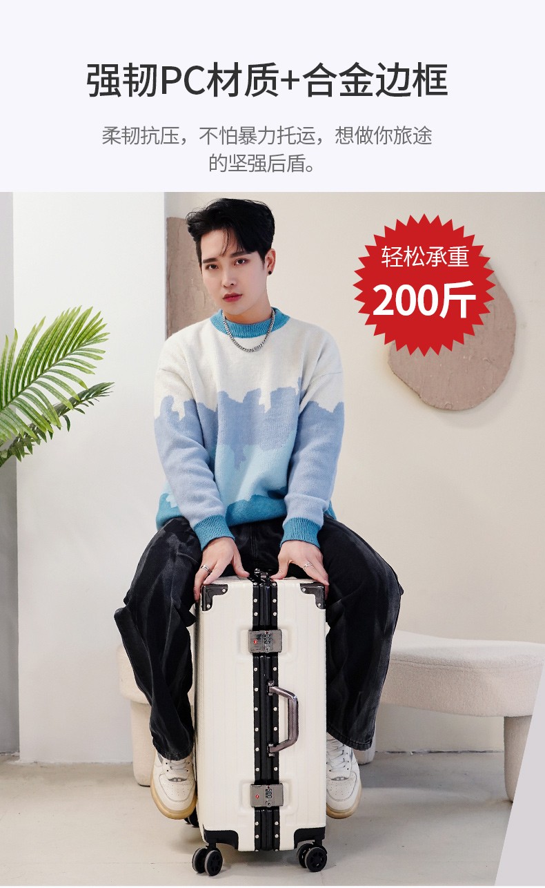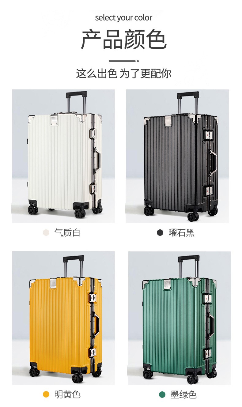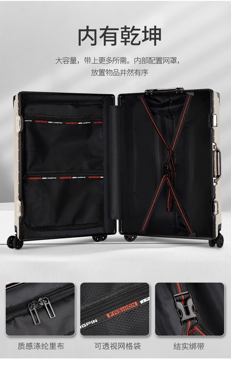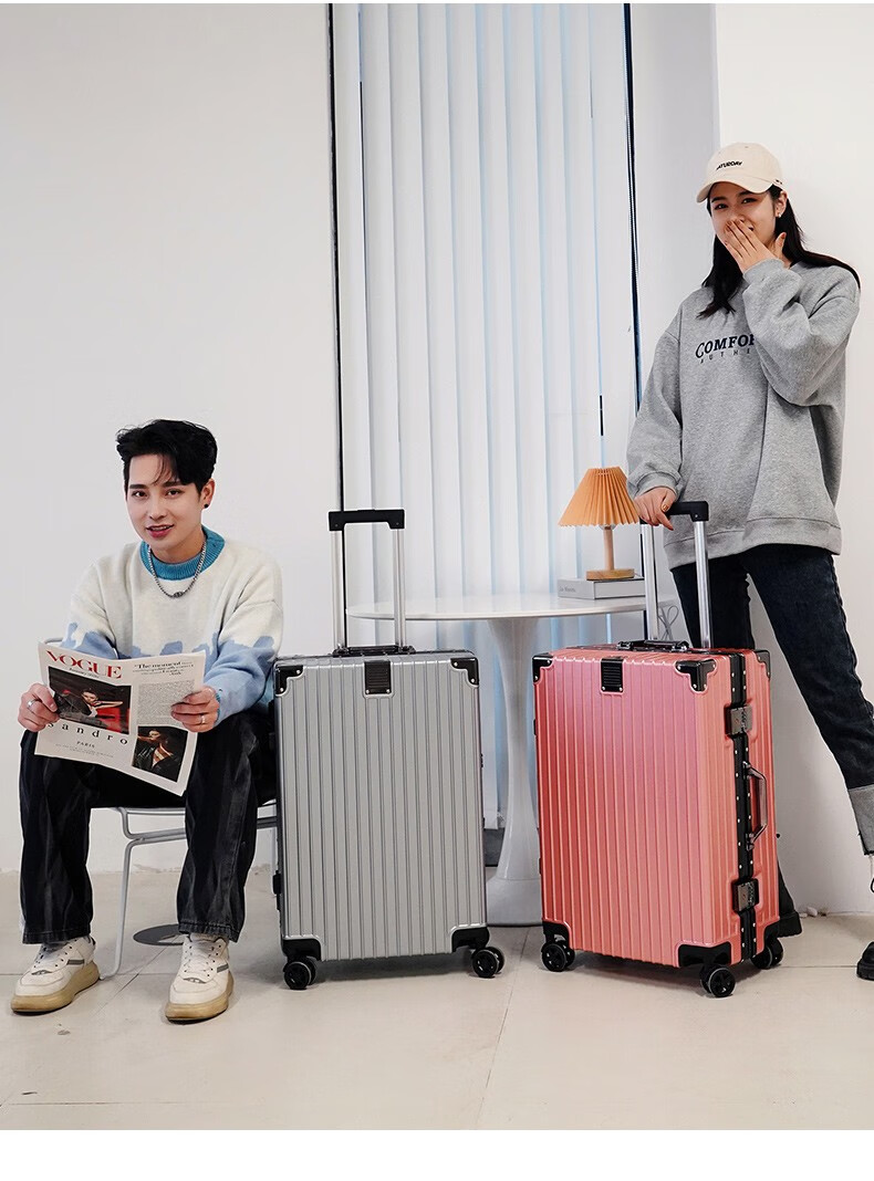Yixuan Trolley Case Men's Aluminum Frame Suitcase Women's Aluminum Alloy Password Box Large Capacity Suitcase Strong and Durable Student Suitcase Black Thickened PC Case - Seat 24 Inches - Gold Size - Student Back-to-School Check-in Box