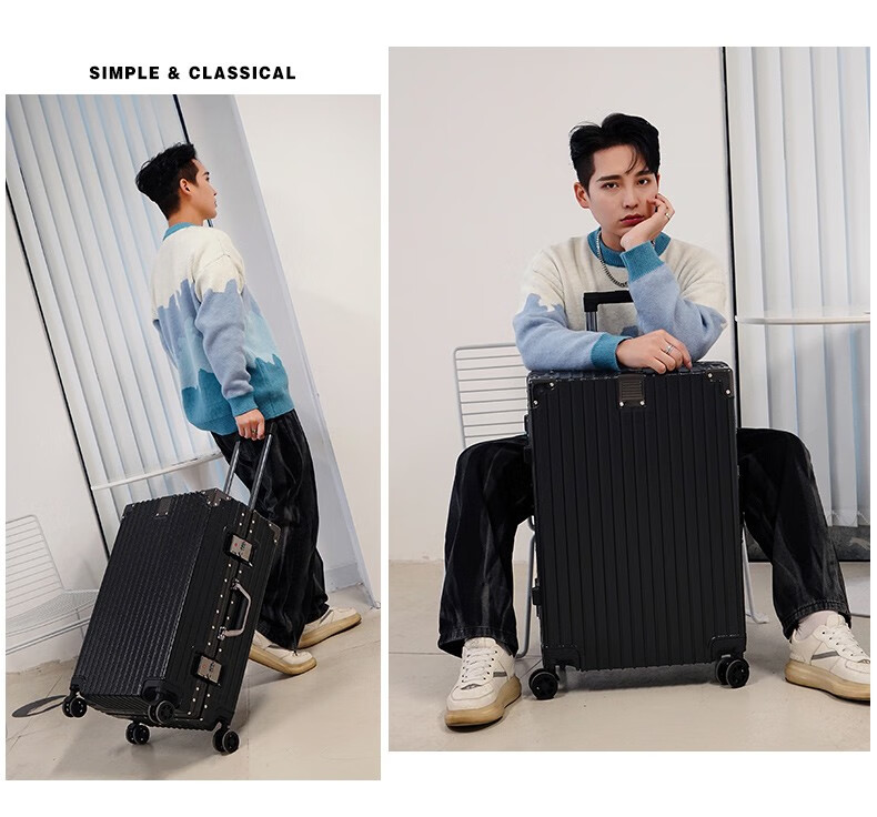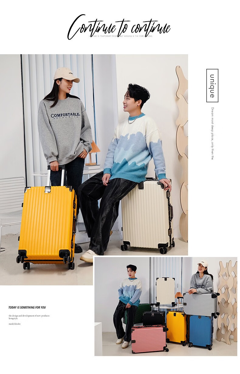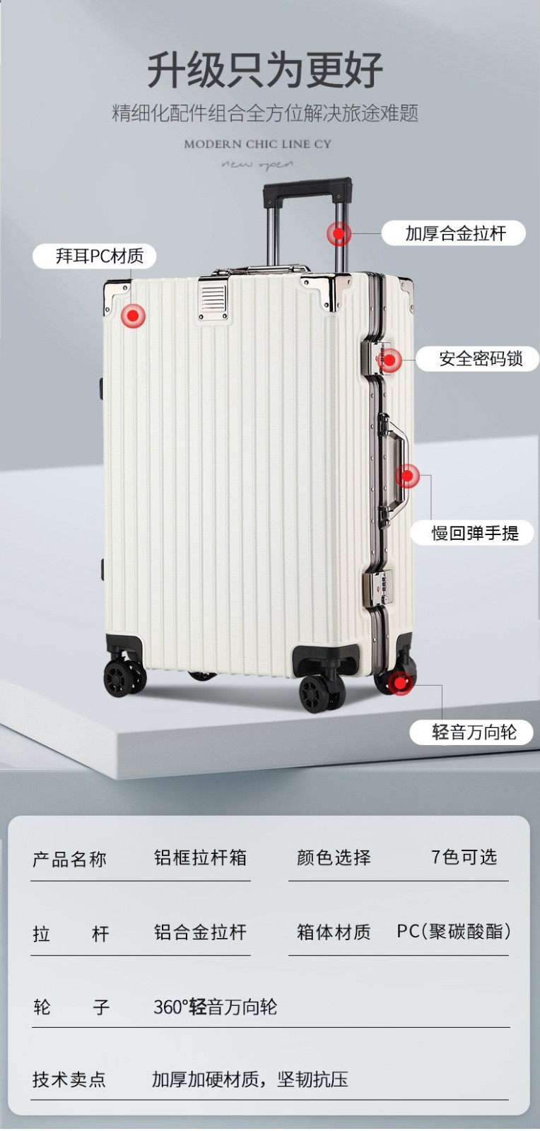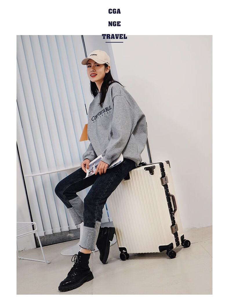 Yixuan Trolley Case Men's Aluminum Frame Suitcase Women's Aluminum Alloy Password Box Large Capacity Suitcase Strong and Durable Student Suitcase Black Thickened PC Case - Seat 24 Inches - Gold Size - Student Back-to-School Check-in Box