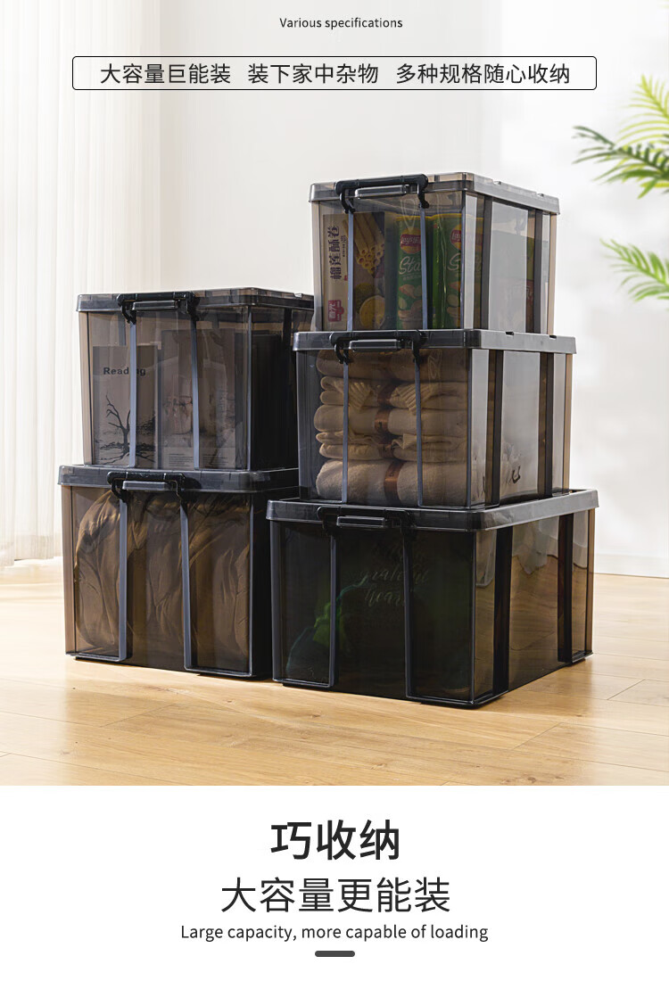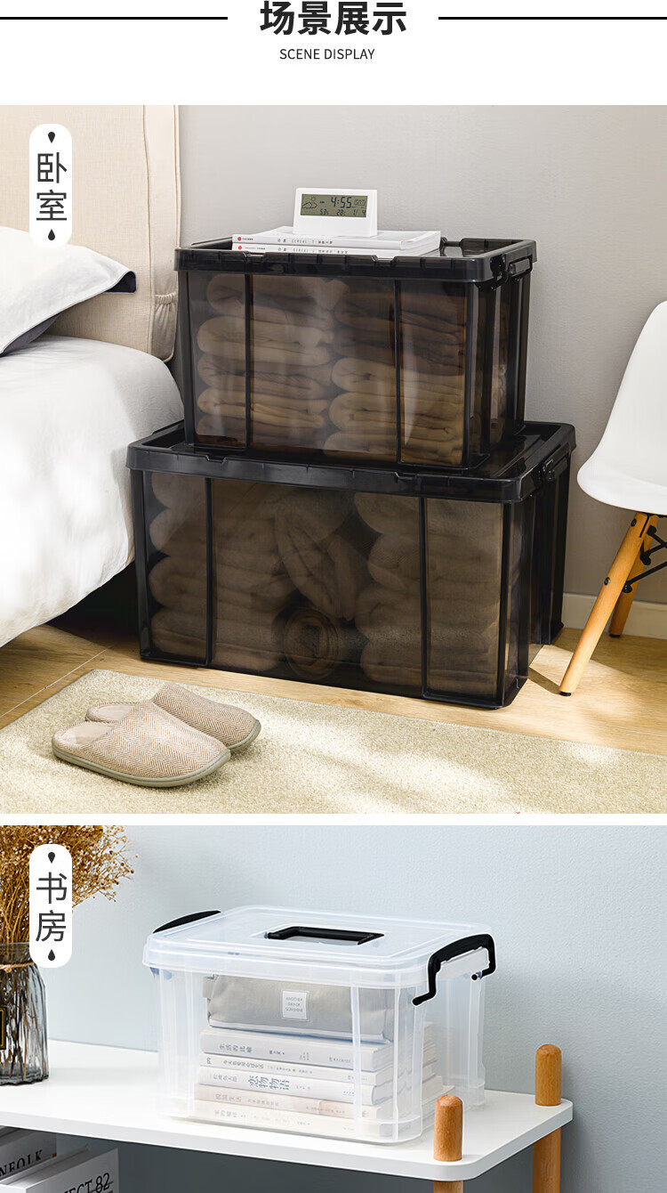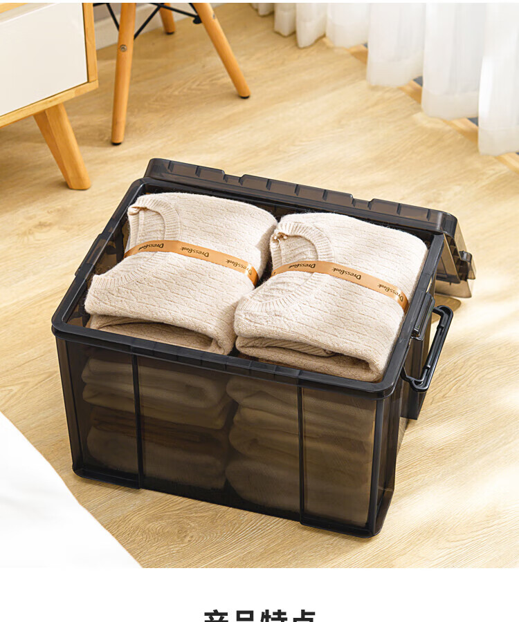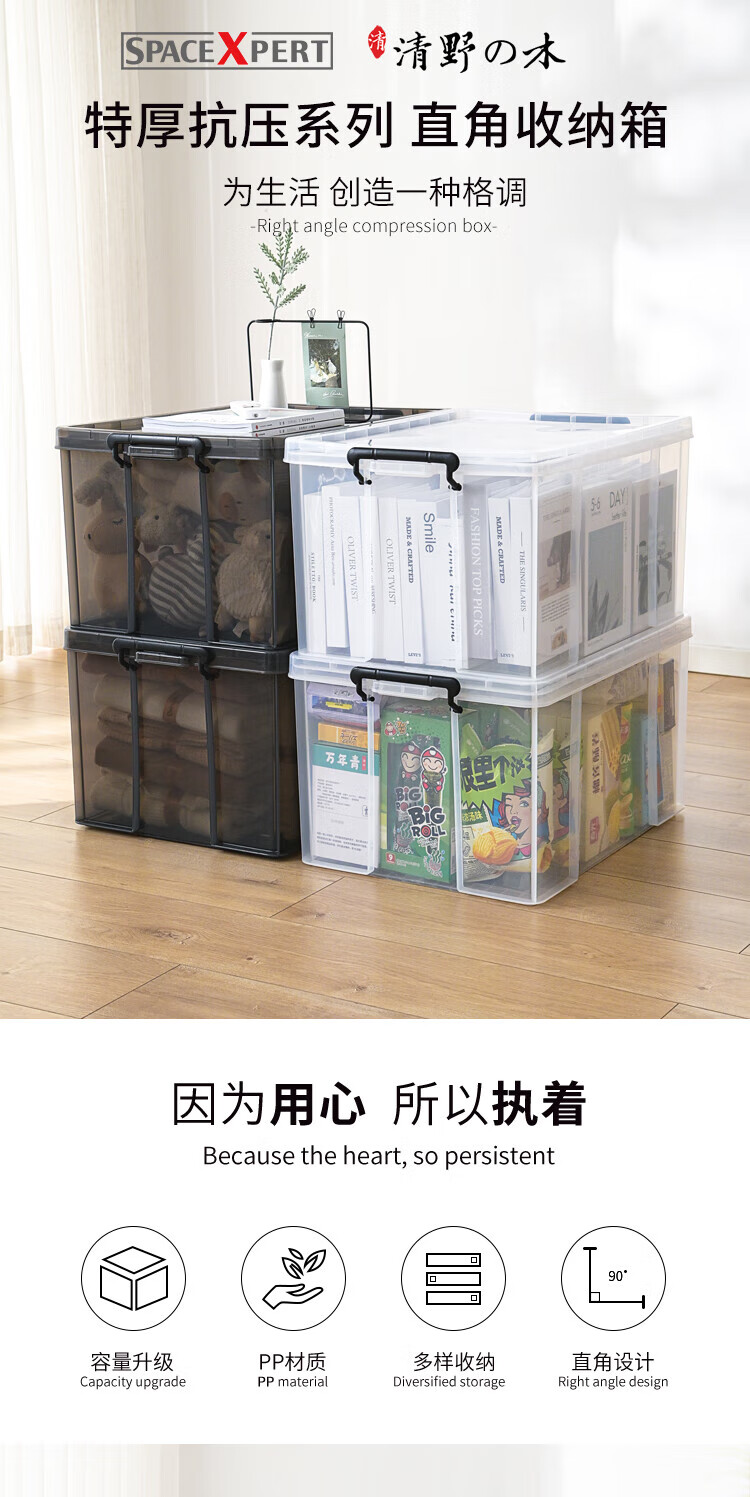 SPACEXPERT right-angle compression storage box toys clothing snack storage box desktop storage box plastic transparent book box fish box transparent color right-angle compression box 45L three pack