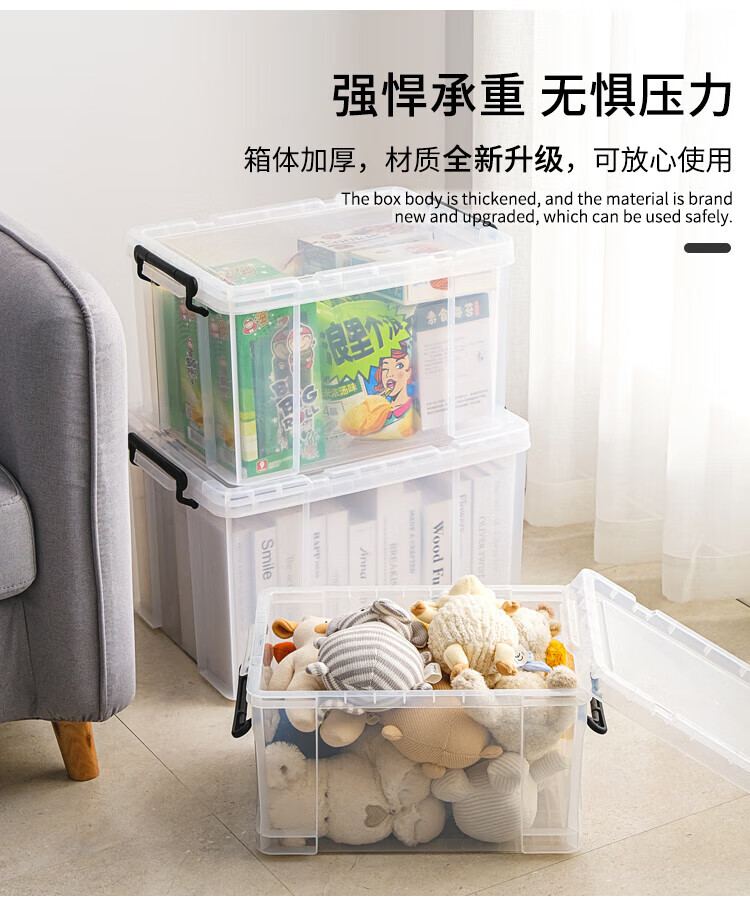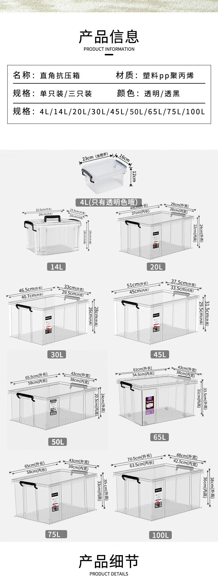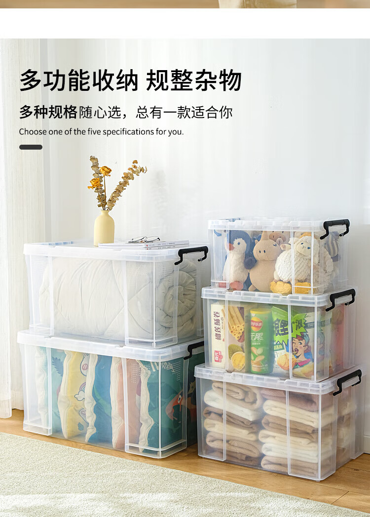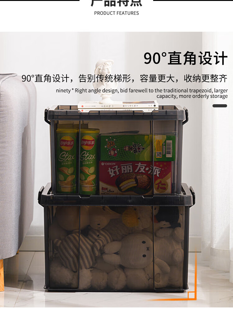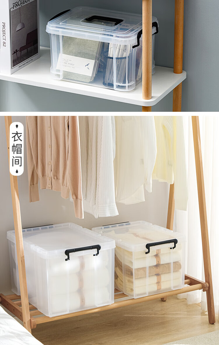 SPACEXPERT right-angle compression storage box toys clothing snack storage box desktop storage box plastic transparent book box fish box transparent color right-angle compression box 45L three pack