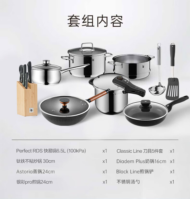 WMF Futenbao stainless steel honeycomb wok non-stick frying pan soup pot steamer milk pot pressure cooker knife set combination Shiquanshimei pot 11-piece set and above