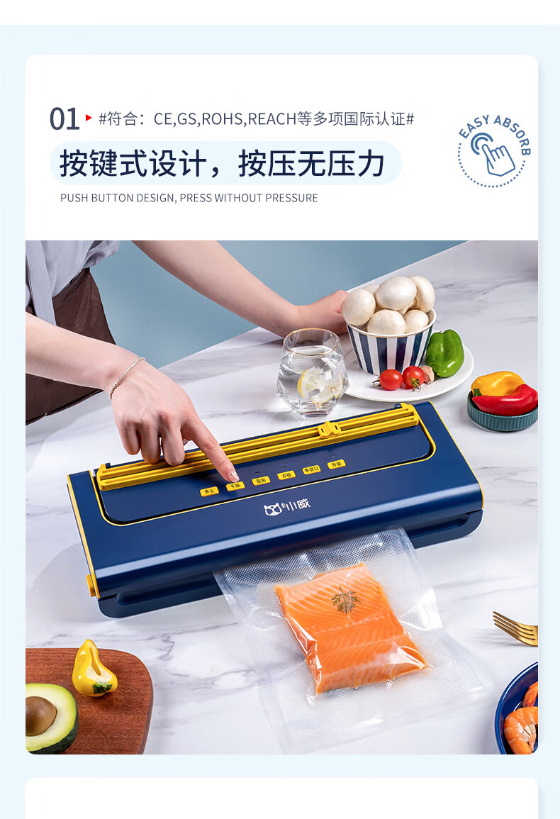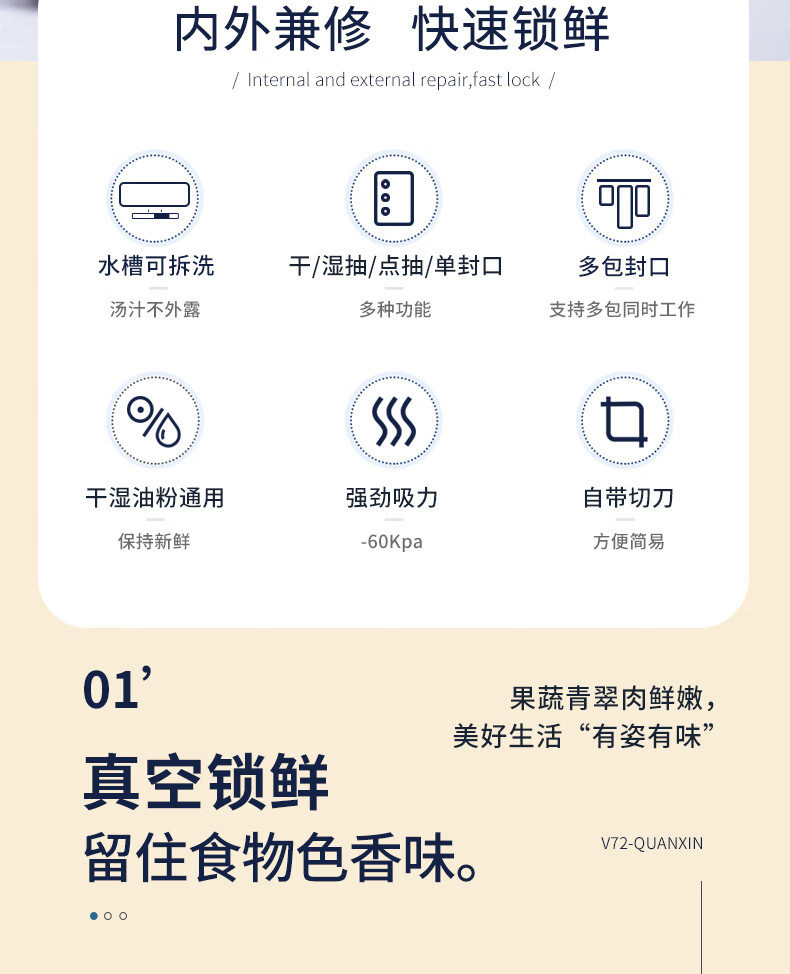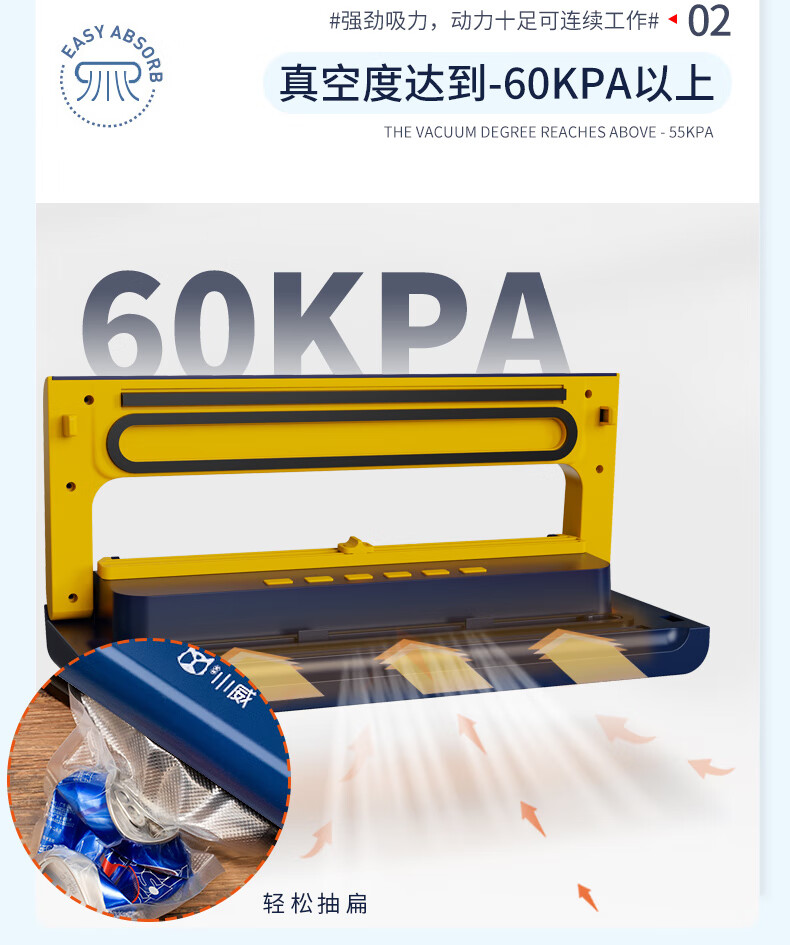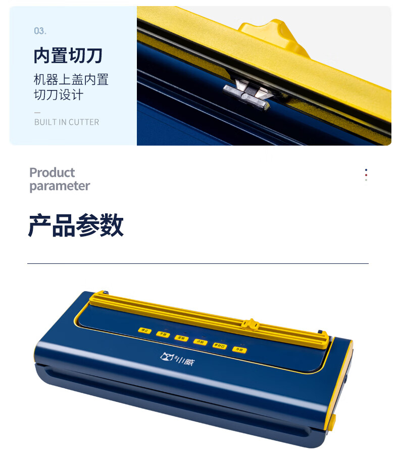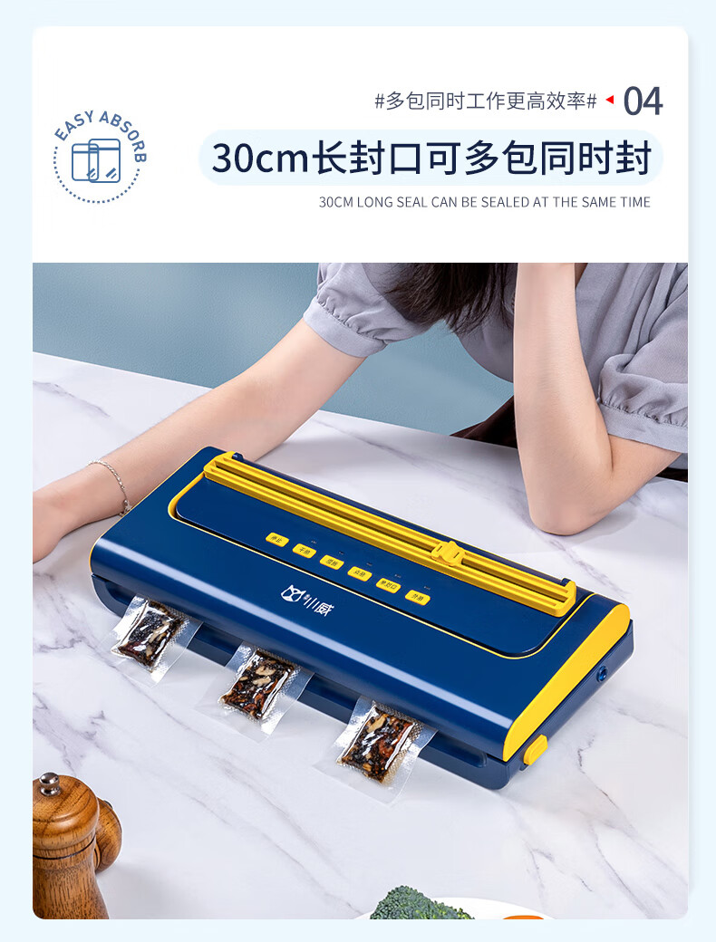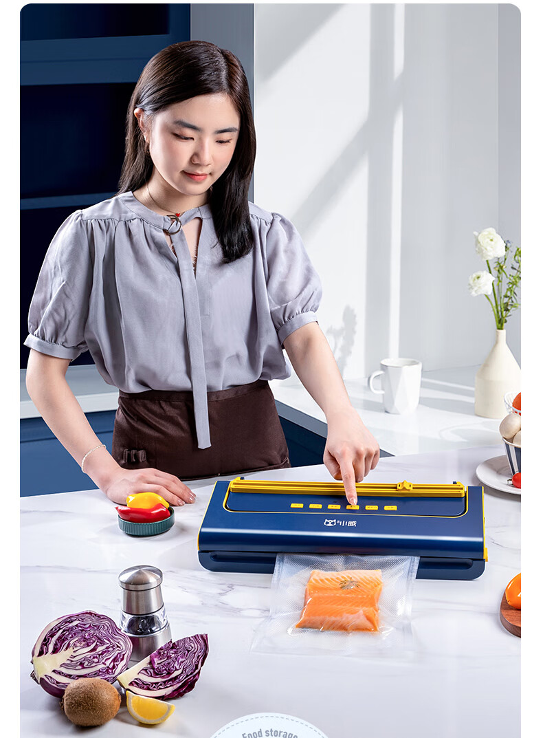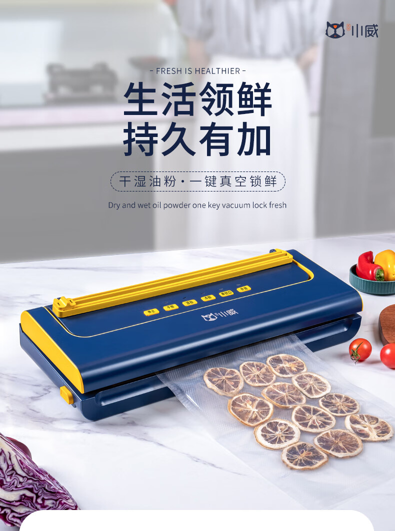 Willin Xiaowei vacuum sealing machine household food plastic sealing machine dry and wet oil powder universal large suction fast evacuation packaging fresh-keeping belt cutter V72A standard package 50 free vacuum bags