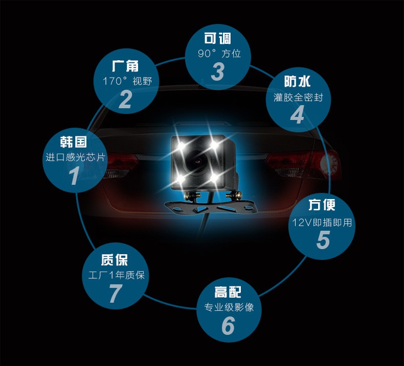 Changzhi car rear camera universal 12V car rear view reversing image HD night vision rear camera probe ccd 4 light rear camera