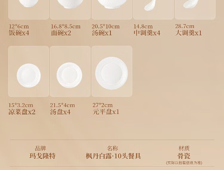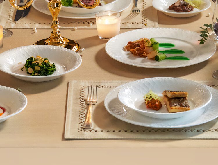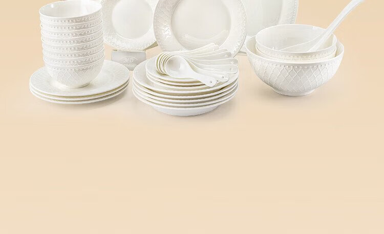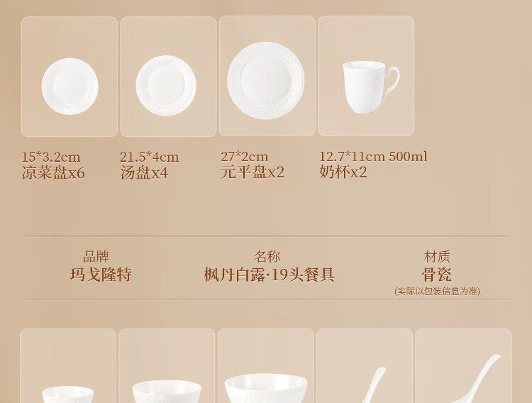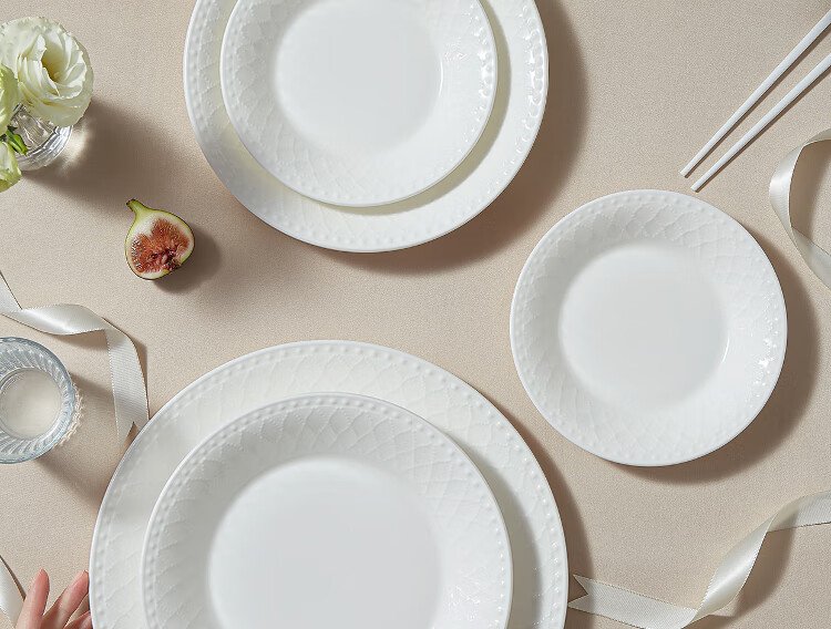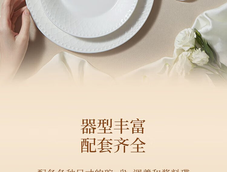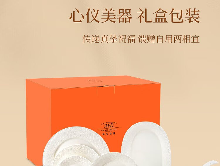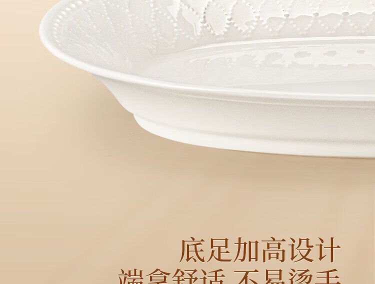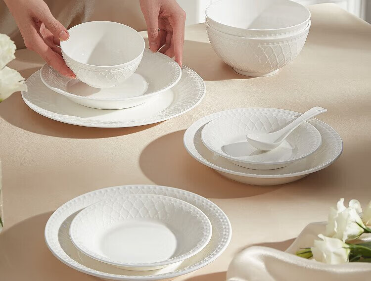 Margot annual party gift Fontainebleau high-end porcelain tableware complete set of pure white relief tableware bowls and plates housewarming gift tableware gift box set for 4 people 19 pieces