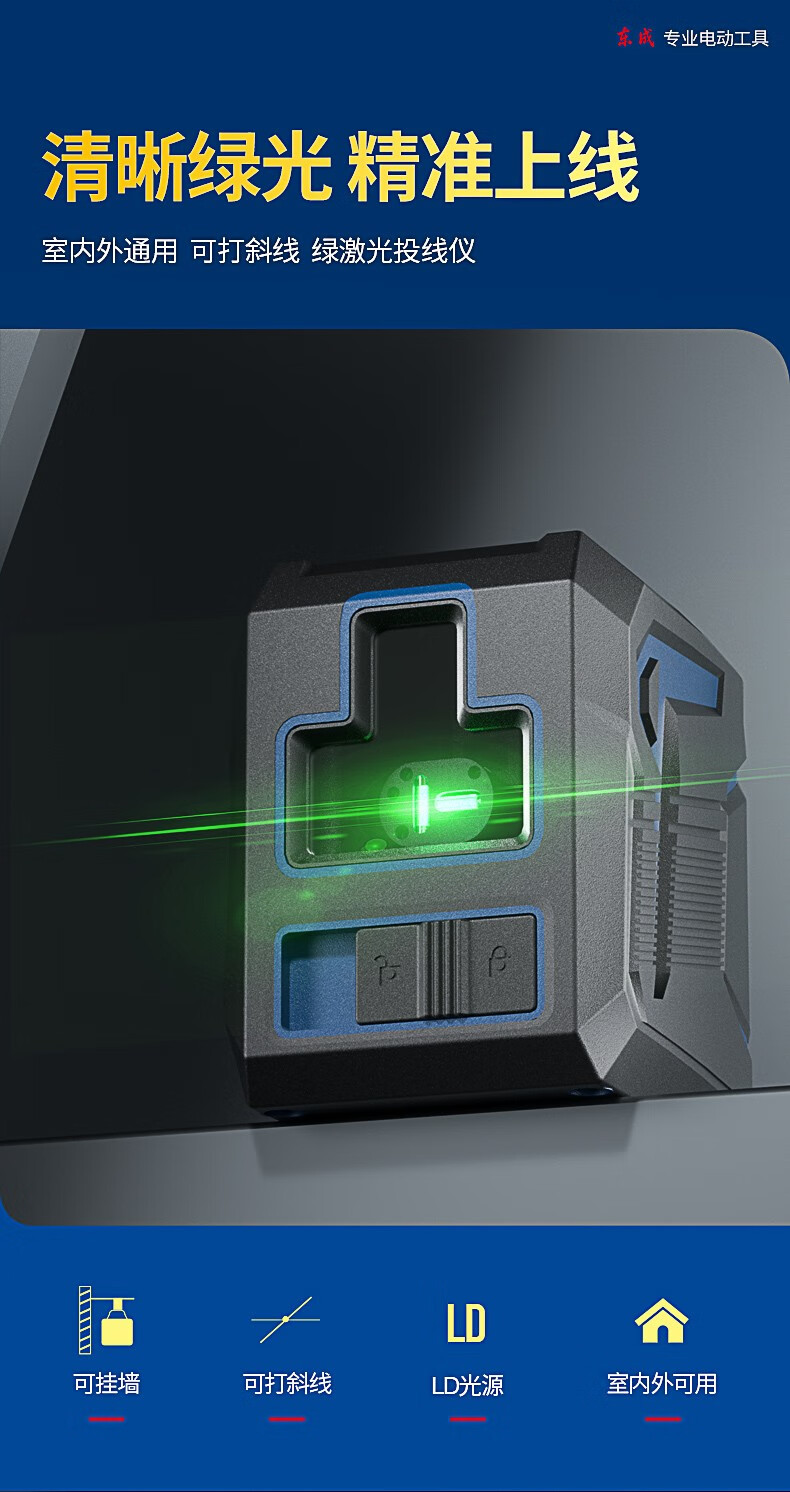 Dongcheng Green Laser Line Projection Level Meter High-Precision Strong Light Thin Line Outdoor Mini Leveling Meter FF10-11B Two-Line Level Meter