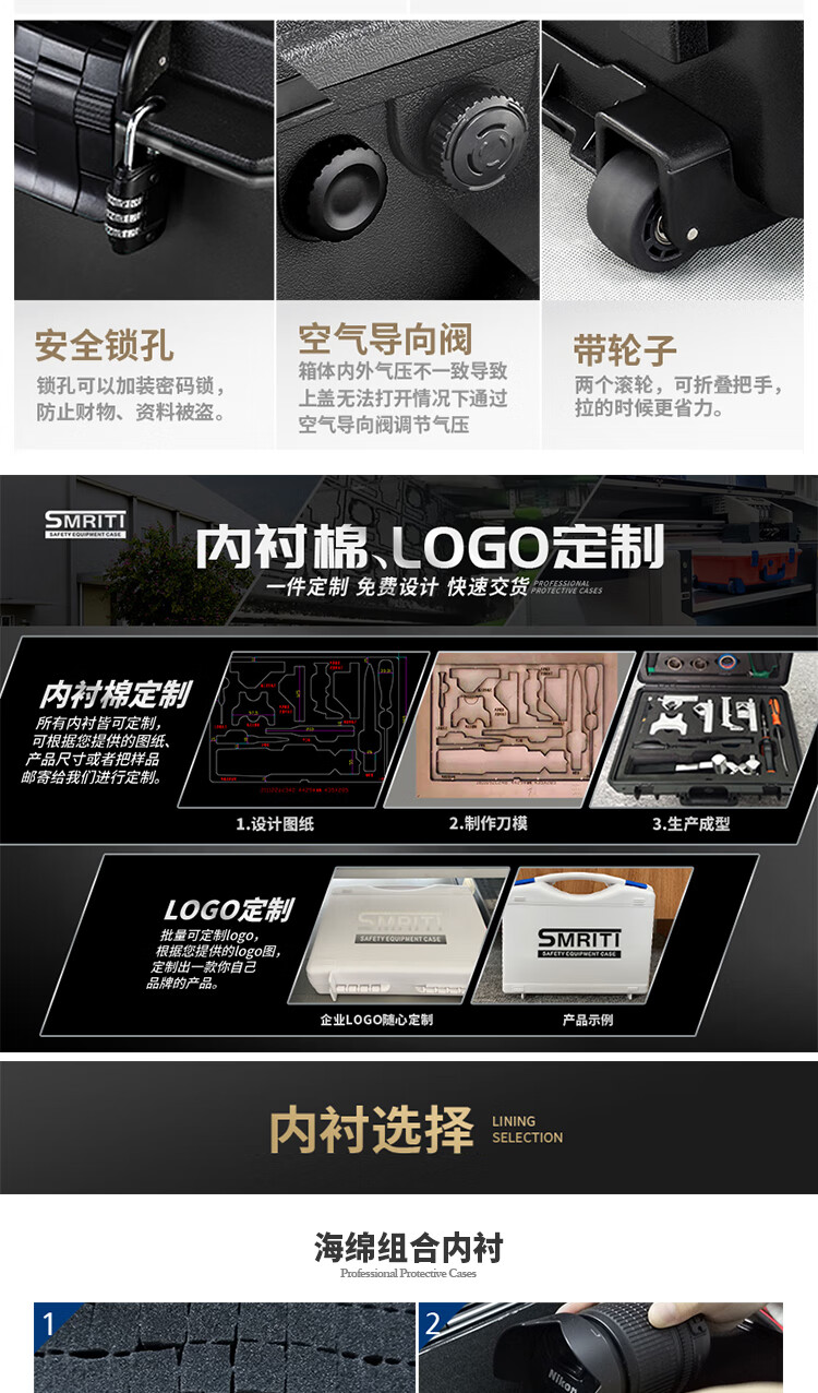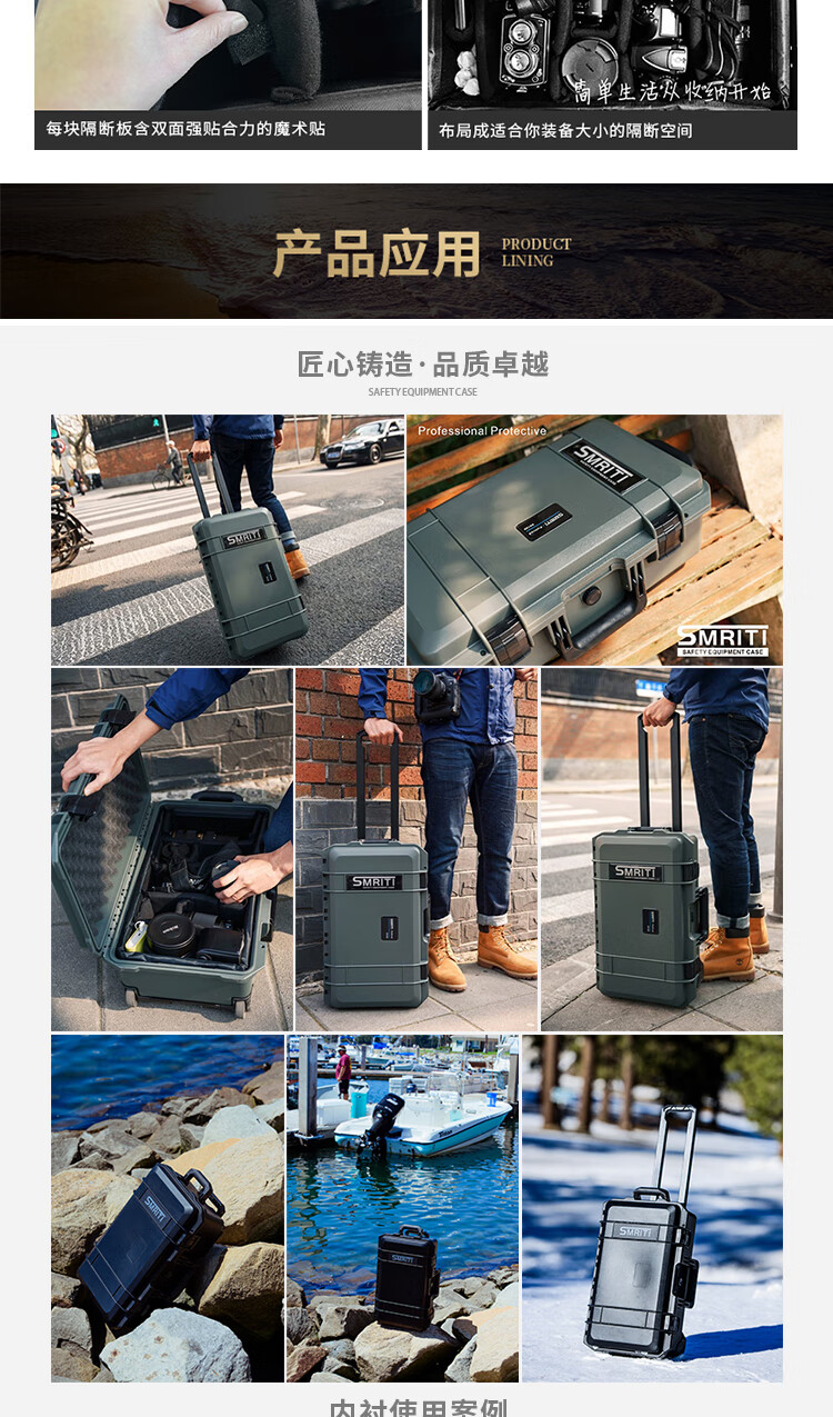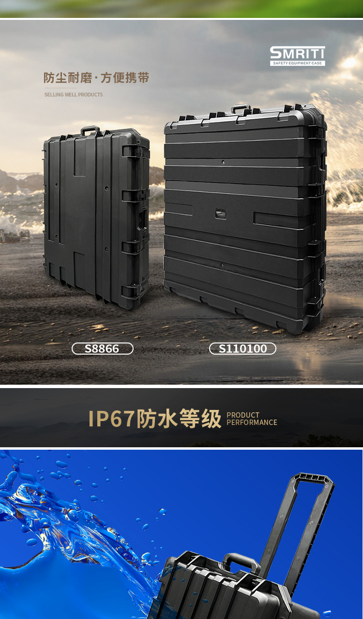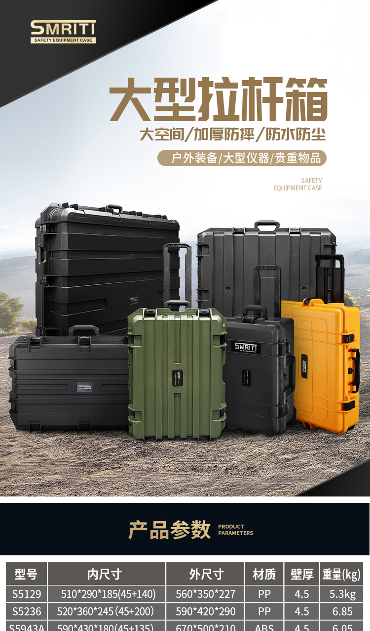 SMRITI heritage protective box black large trolley box thickened waterproof and dustproof multi-functional equipment tool box S5236 black empty box