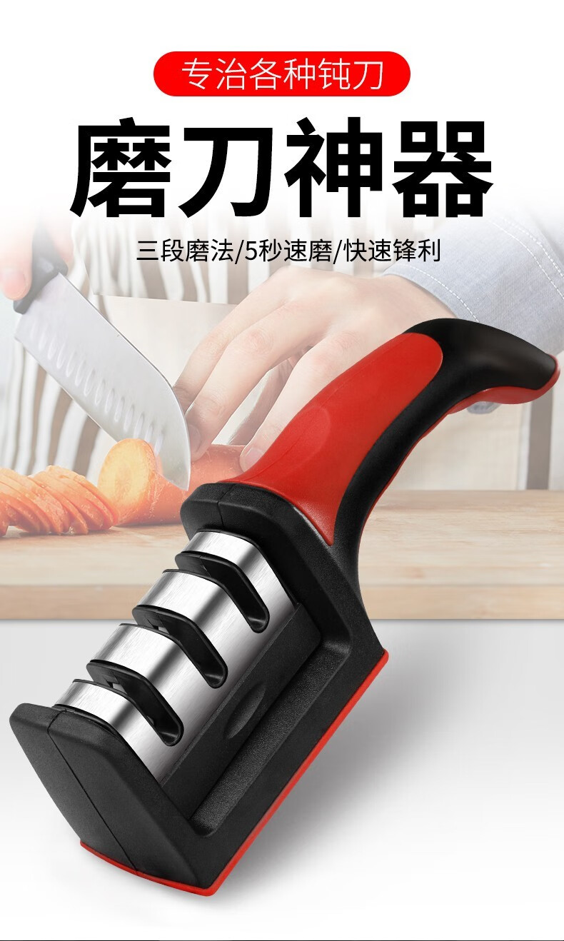 Yuan Xie Knife Sharpener Household Knife Sharpening Stone Kitchen Knife Sharpening Artifact Tool Multi-function Scissors Sharpening Multi-purpose Knife Sharpening Stick Knife Sharpener Black and Red