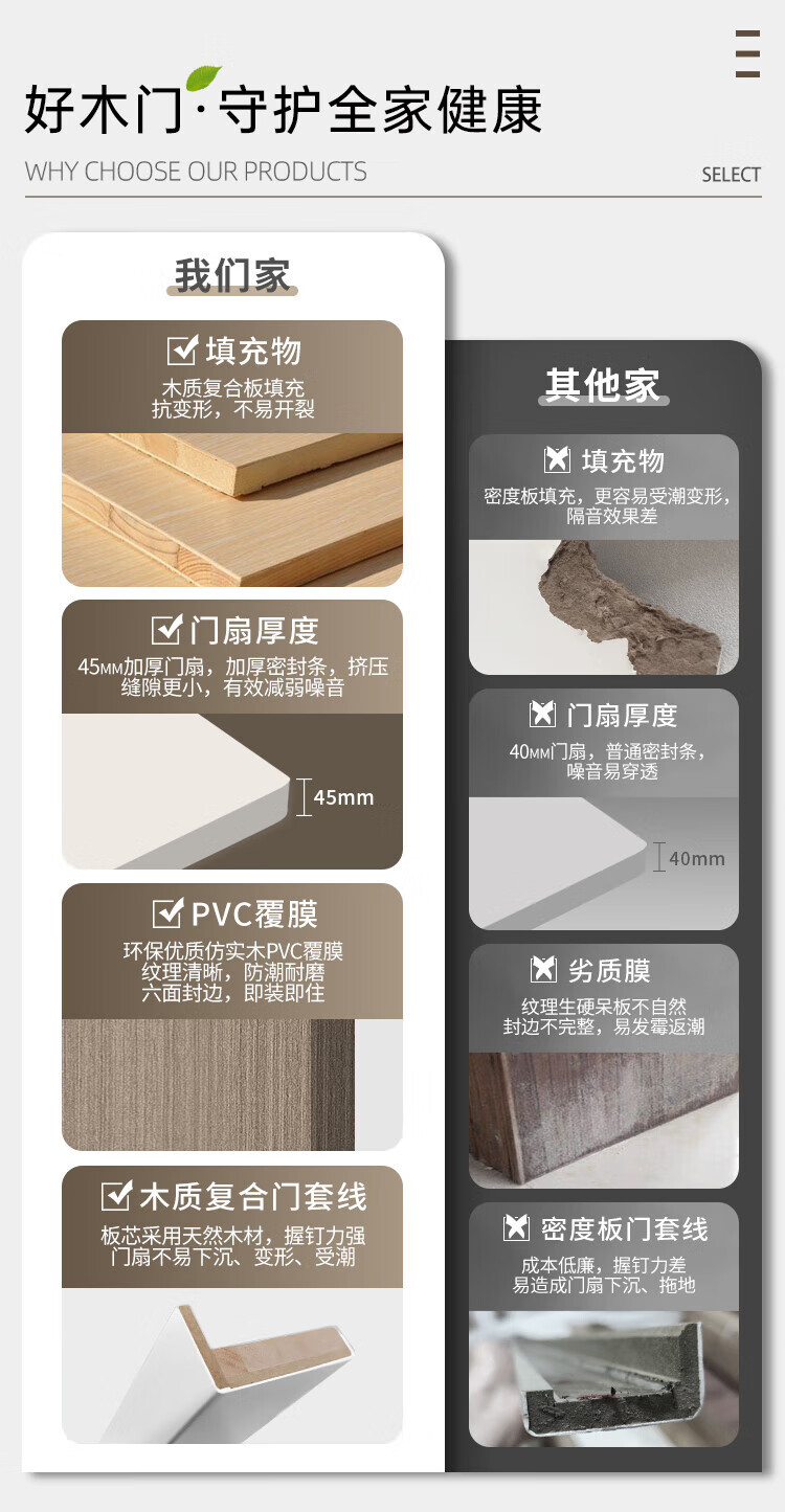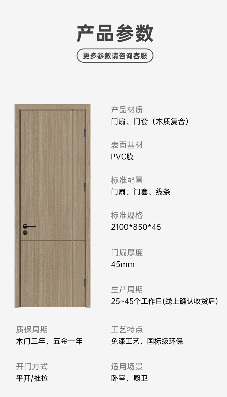 Mexin wooden door bedroom concierge door interior door wooden composite low carbon paint-free simple modern N553 custom door door leaf + door cover + solid wood filling + magnetic hardware