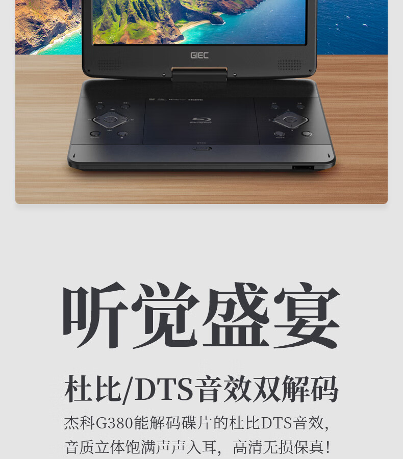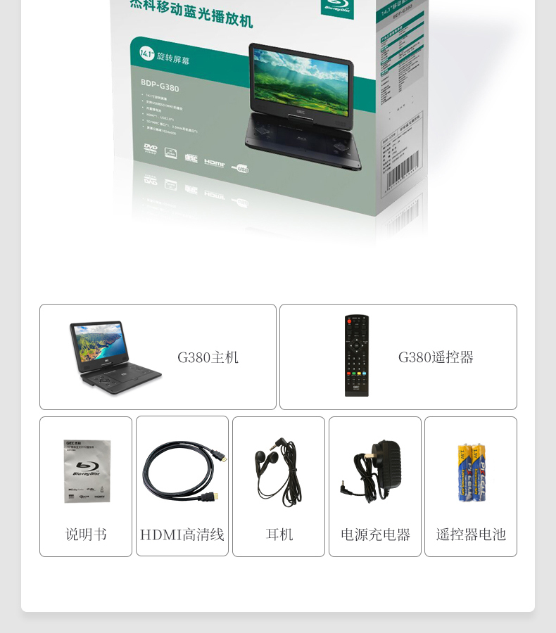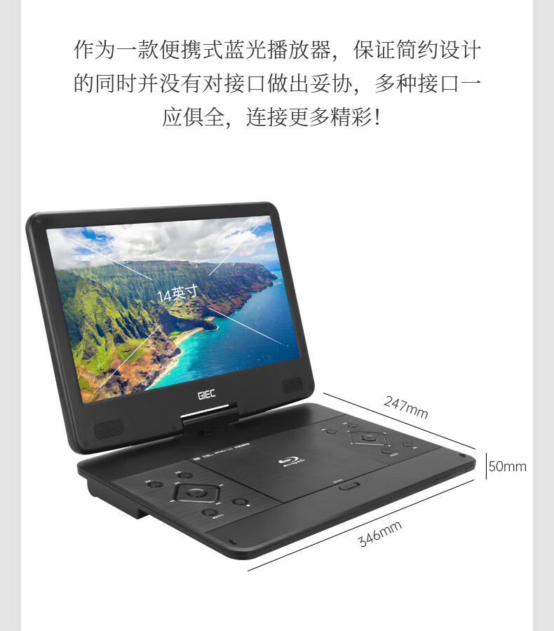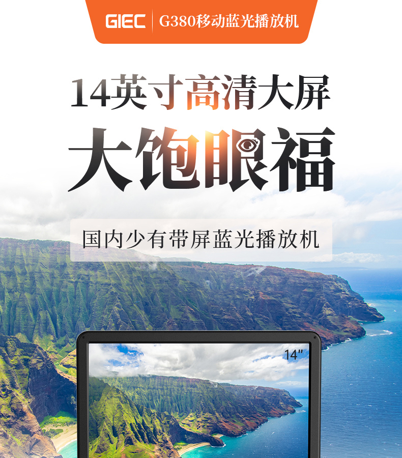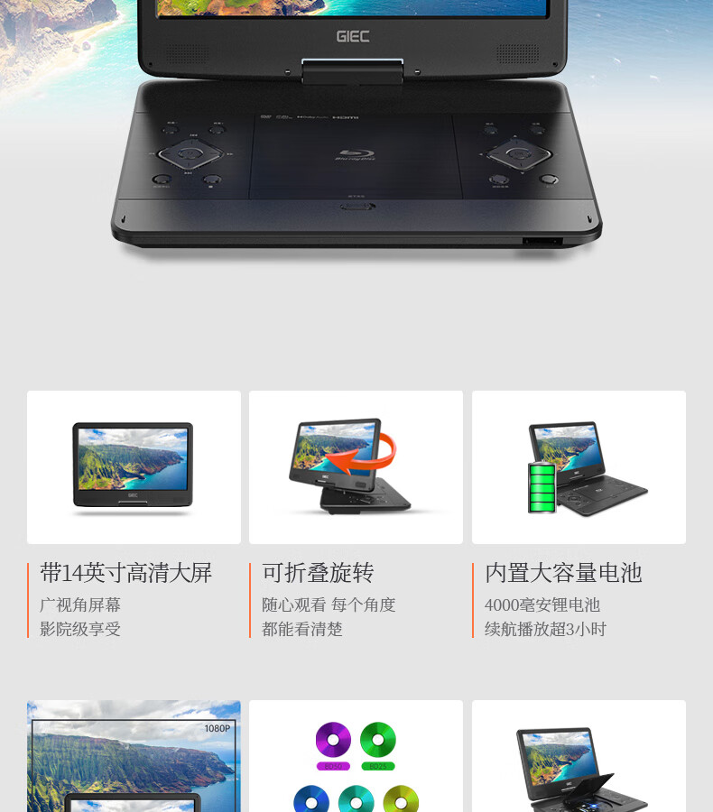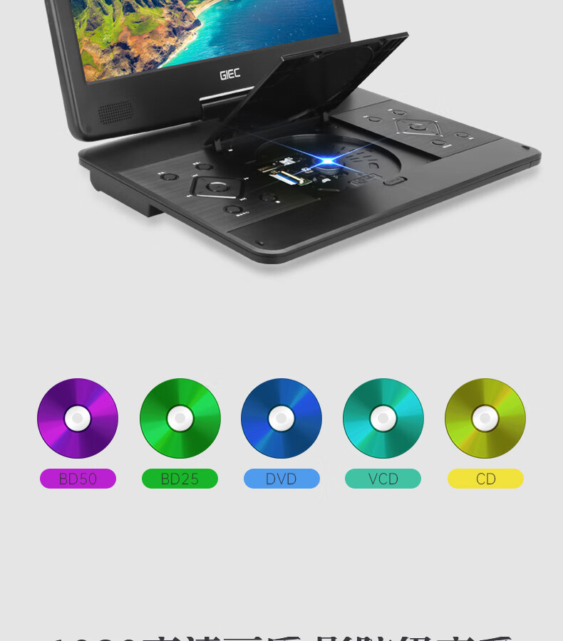 GIEC BDP-G380 14-inch Blu-ray mobile DVD player portable vcd player HD home hard drive U disk HD DVD player Blu-ray player with screen 14-inch G380 mobile Blu-ray player