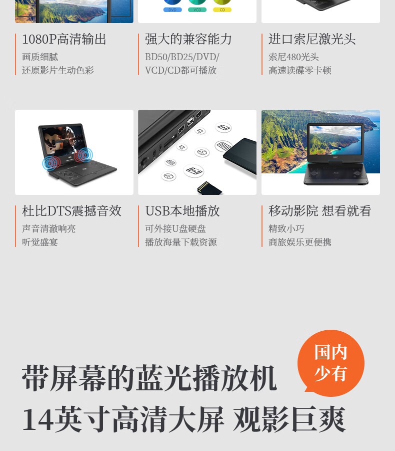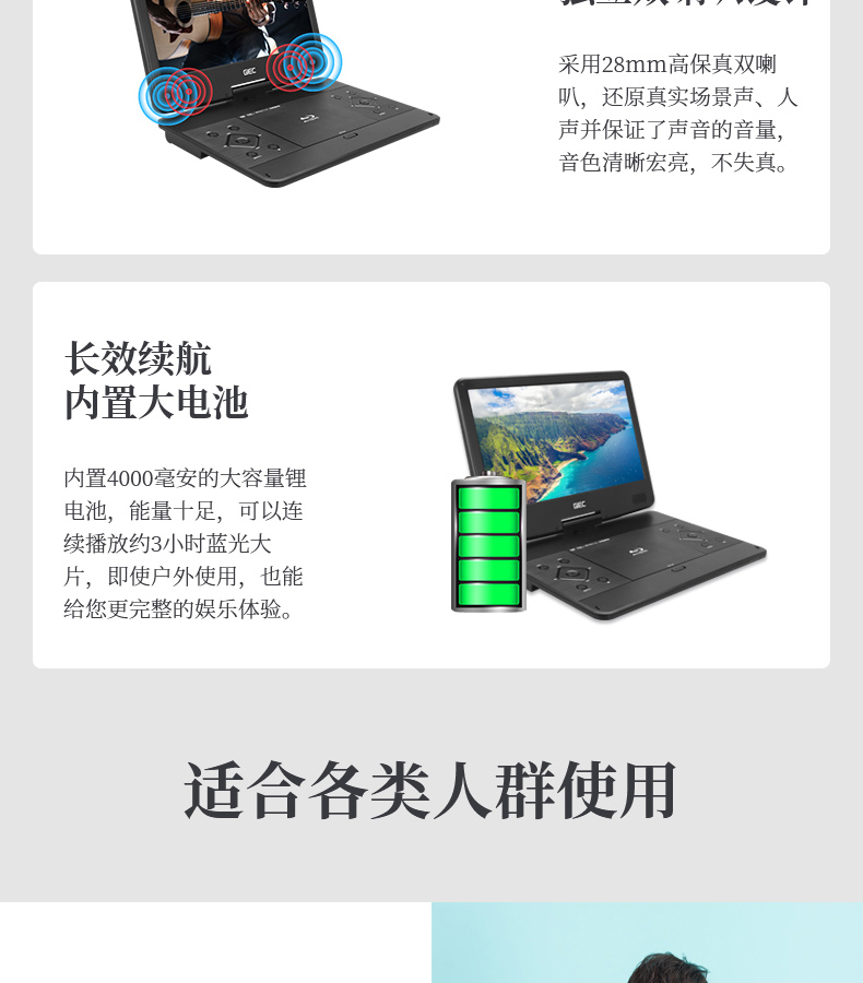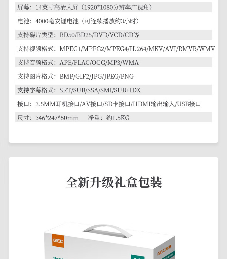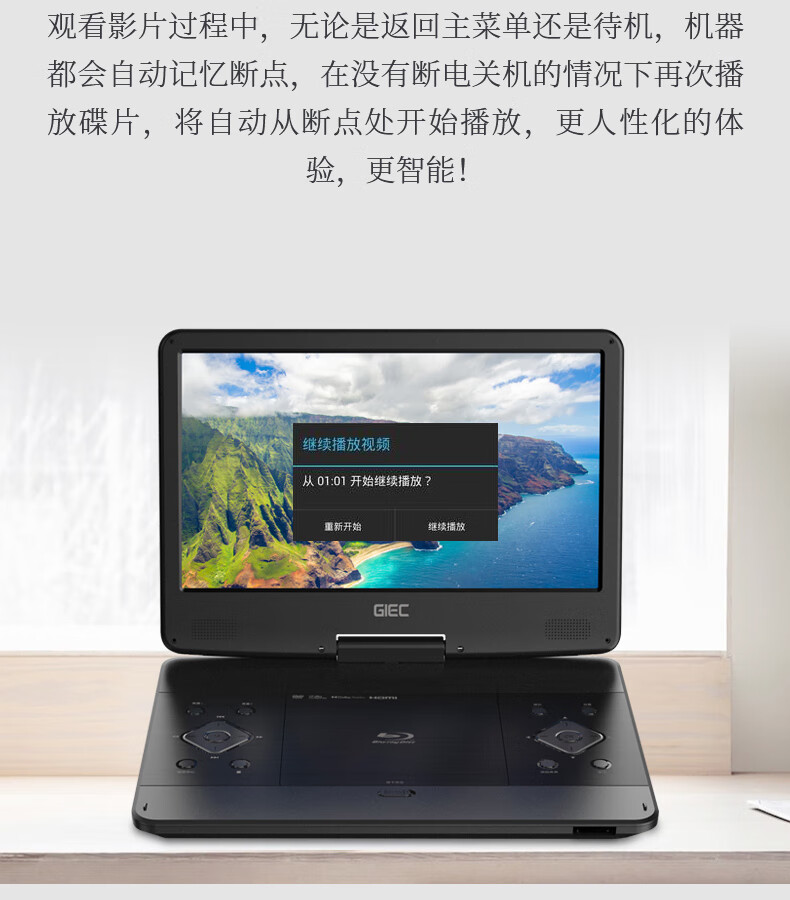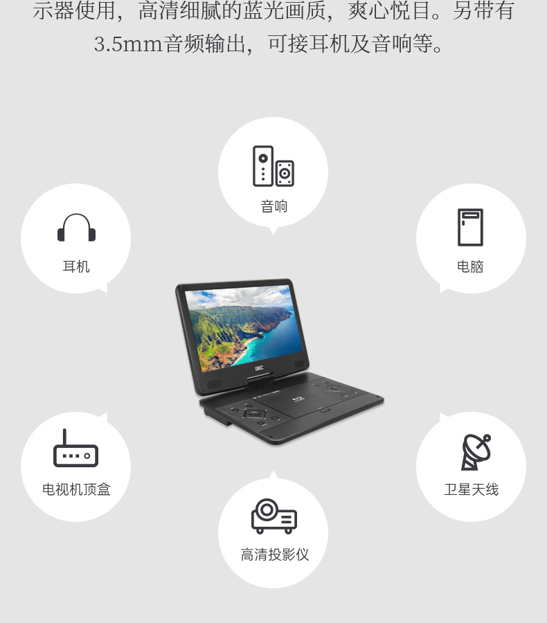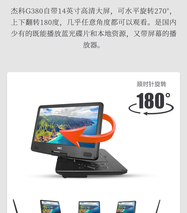 GIEC BDP-G380 14-inch Blu-ray mobile DVD player portable vcd player HD home hard drive U disk HD DVD player Blu-ray player with screen 14-inch G380 mobile Blu-ray player
