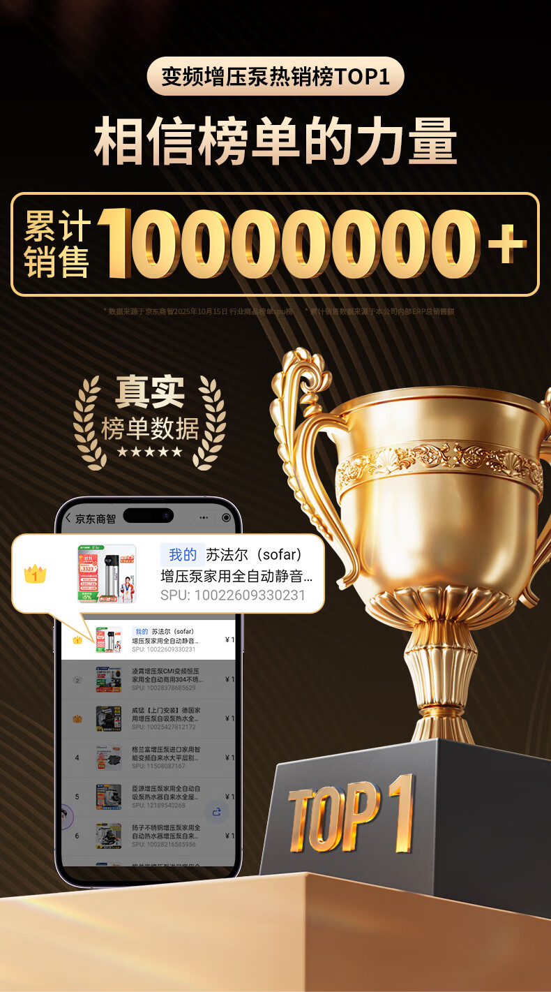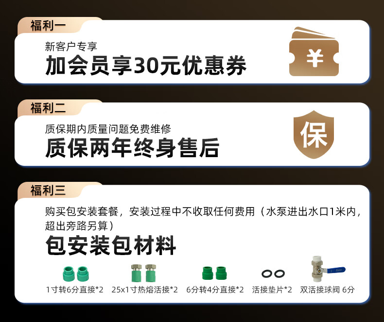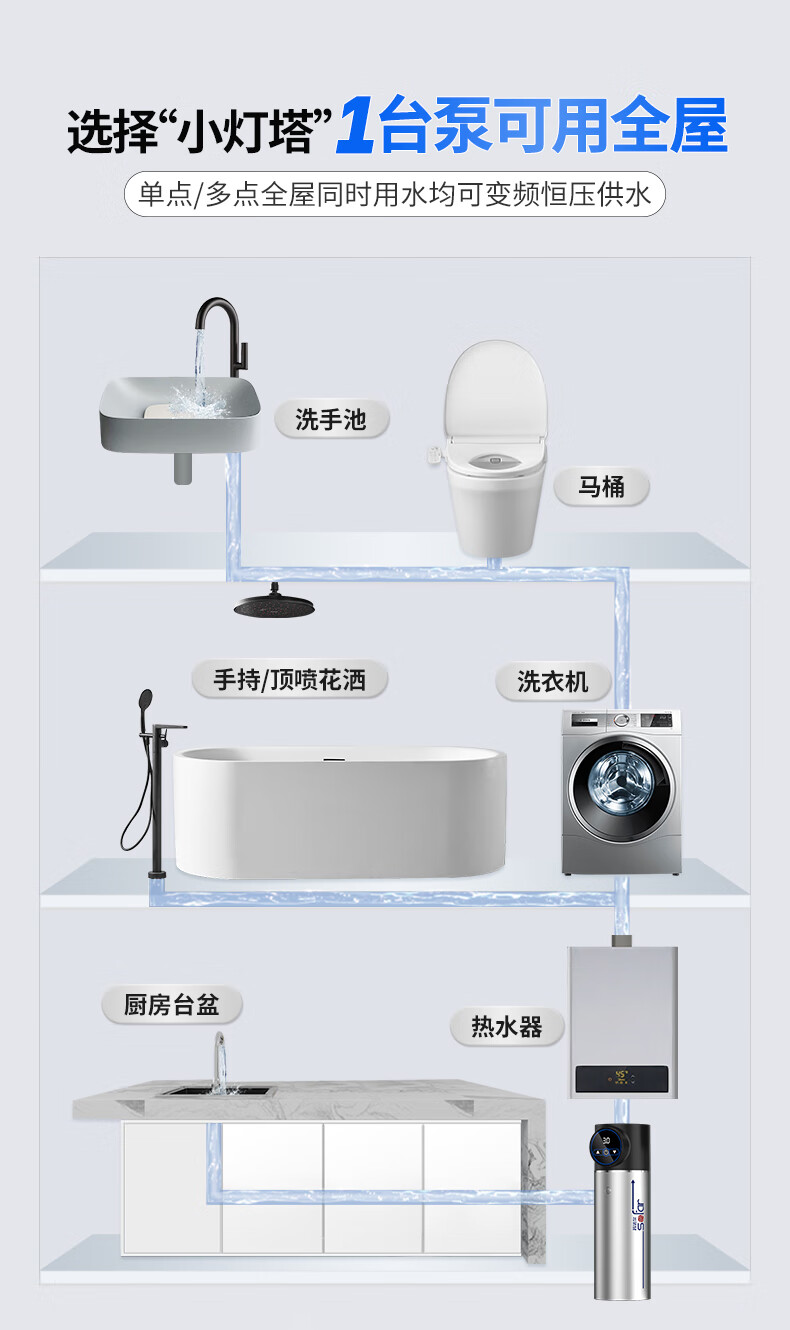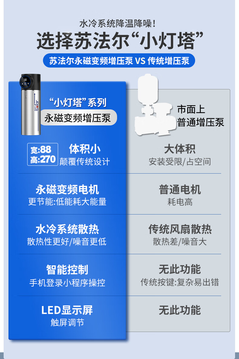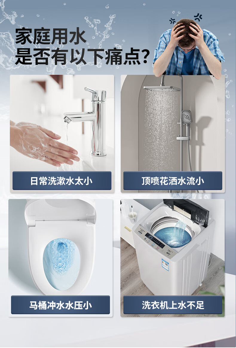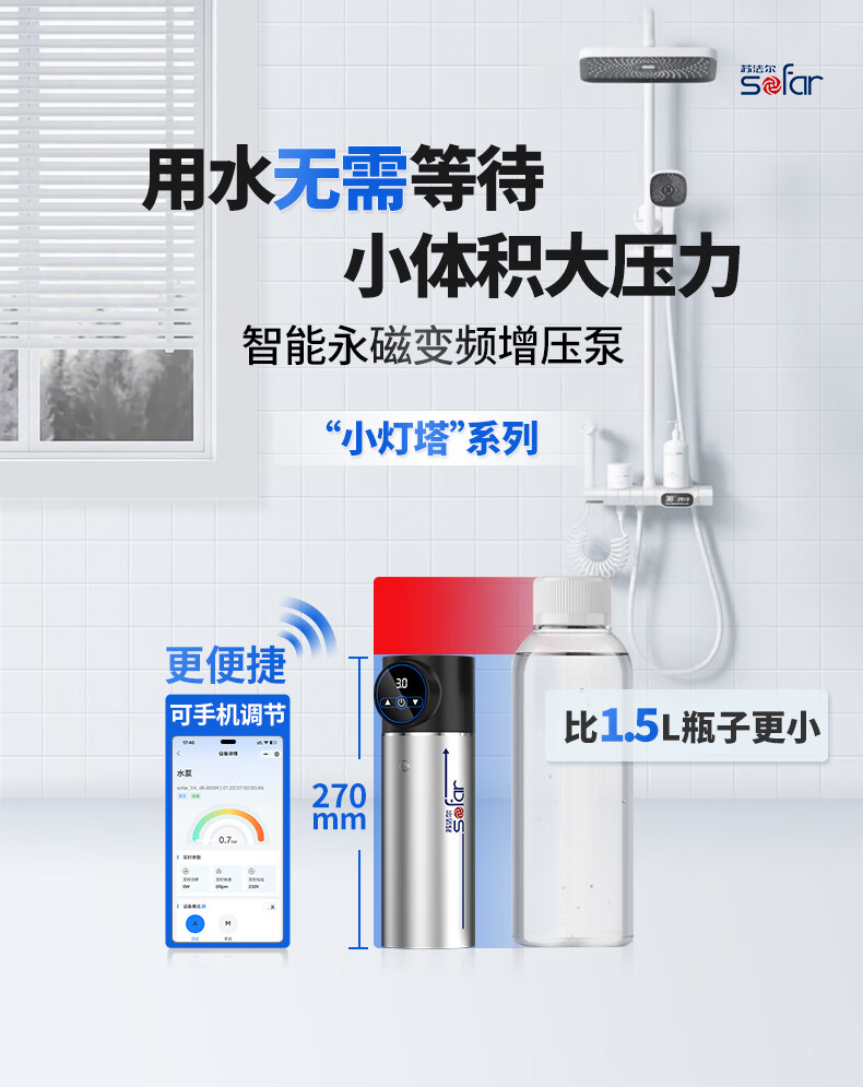 Sofar booster pump household fully automatic soft sound booster permanent magnet variable frequency pump tap water smart toilet pressurized water pump V3-45+pressure tank+package installation package auxiliary materials