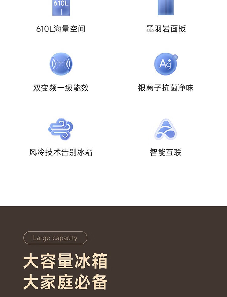 Mijia Xiaomi 610 liter refrigerator double door double door large capacity air-cooled frost-free silver ion sterilization first-level energy efficiency BCD-610WMSA