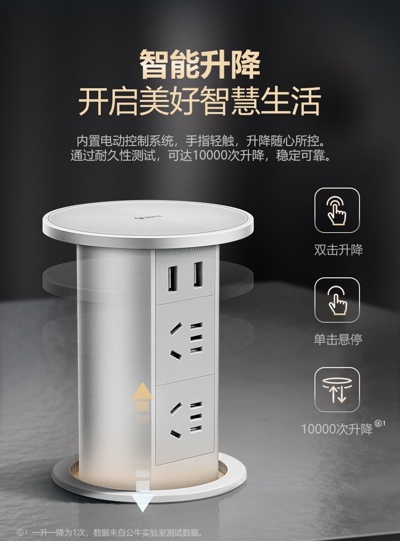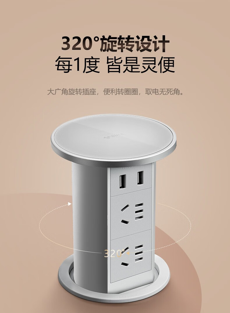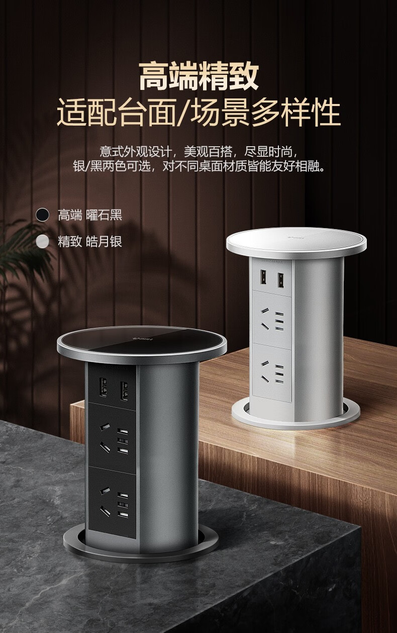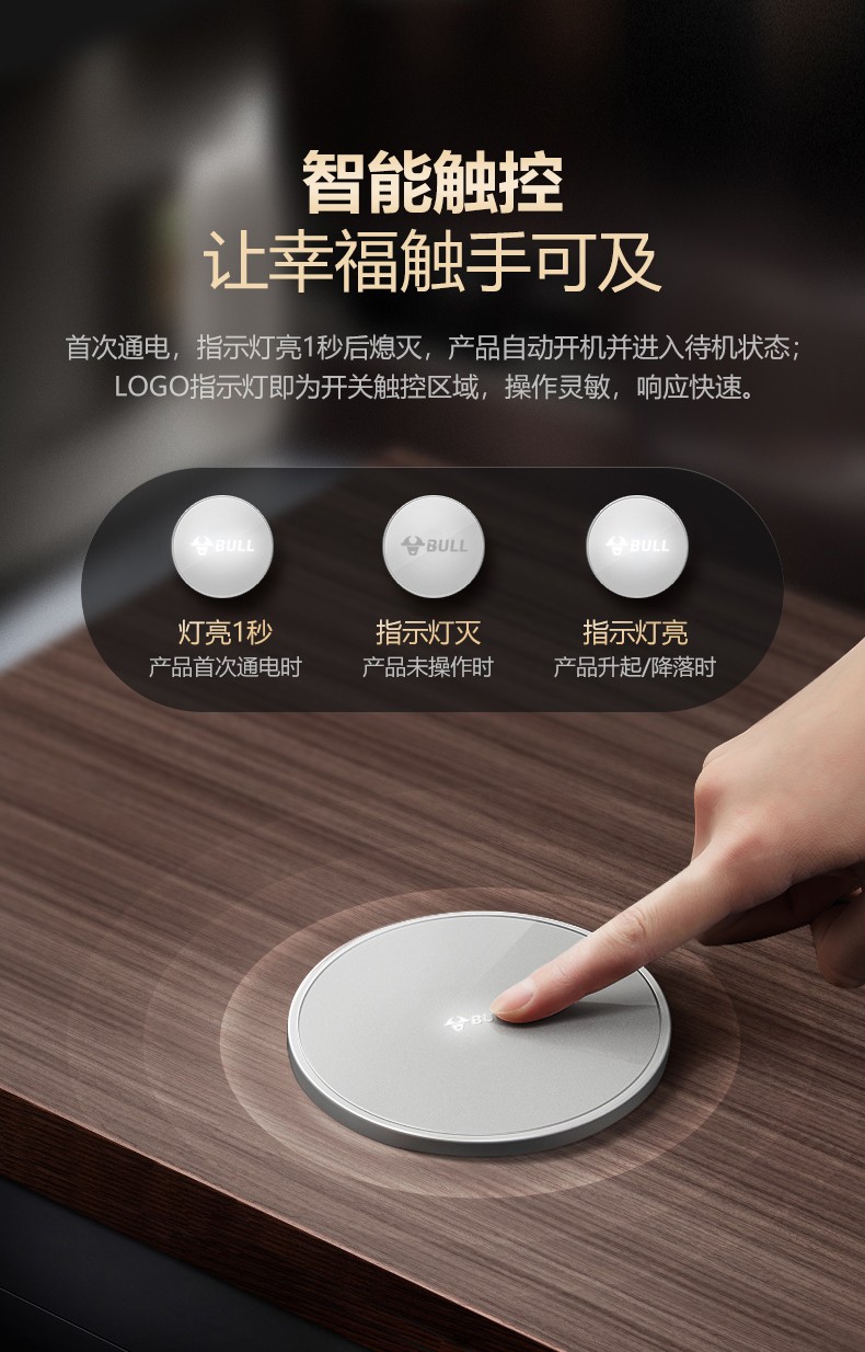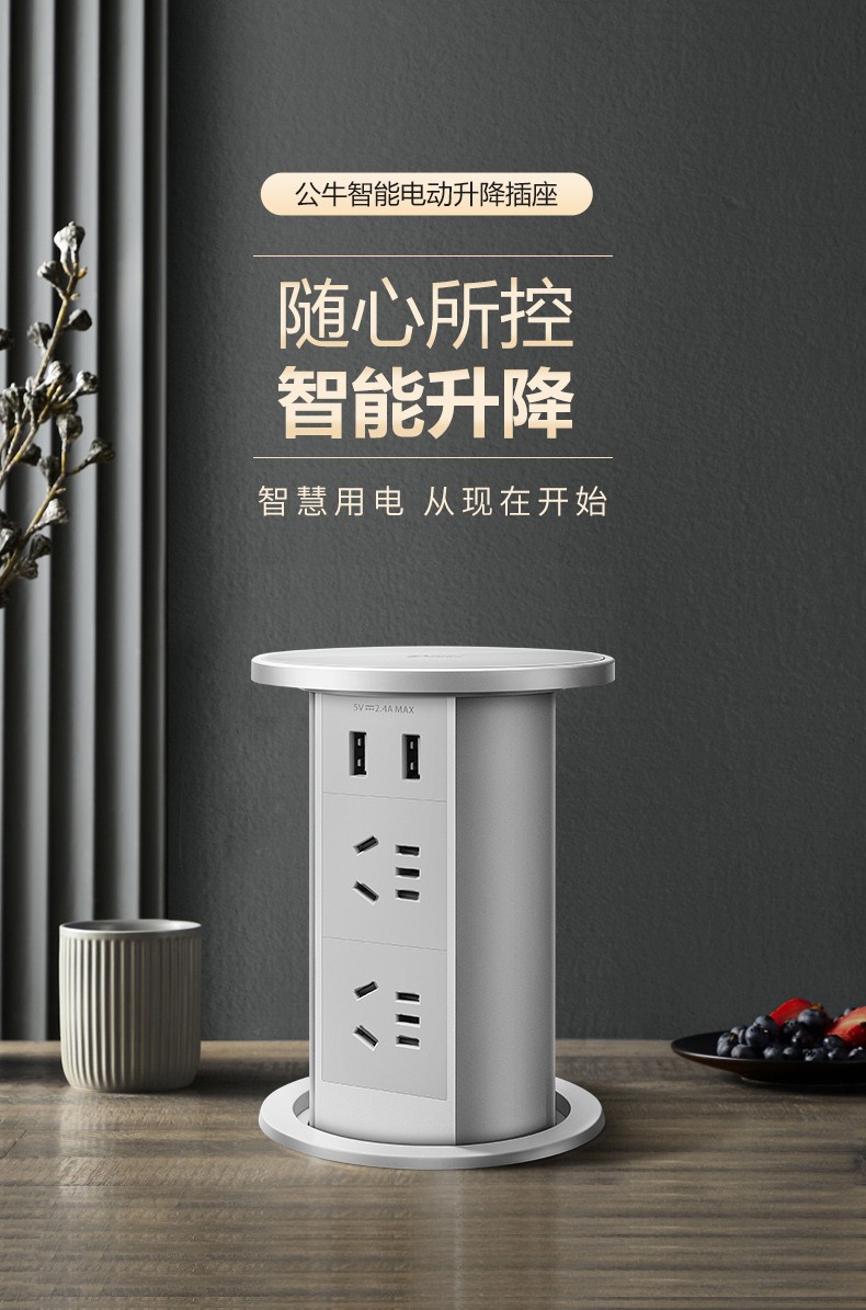BULL Lift Socket Embedded Island Table Wireless Charging Electric Multi-Function Switch Socket Kitchen Conference Table Hidden Socket Obsidian Black Smart Lift Socket