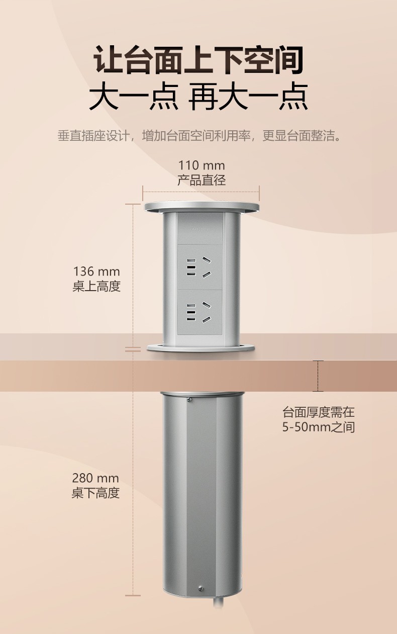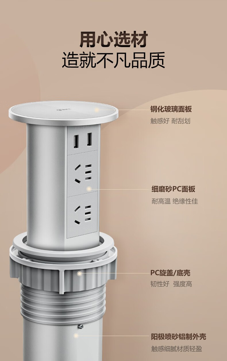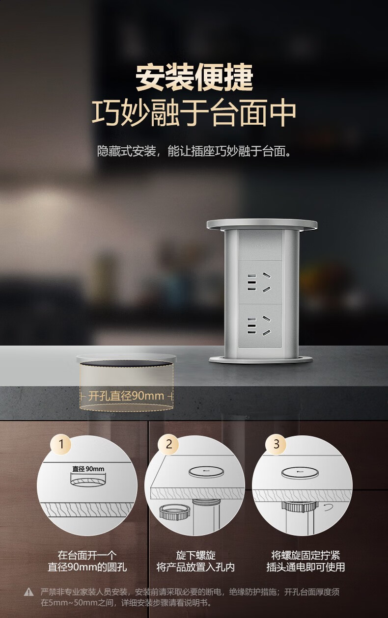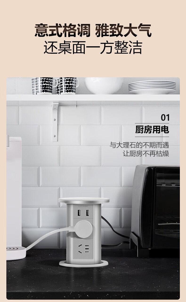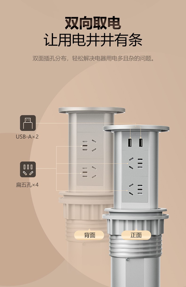 BULL Lift Socket Embedded Island Table Wireless Charging Electric Multi-Function Switch Socket Kitchen Conference Table Hidden Socket Obsidian Black Smart Lift Socket
