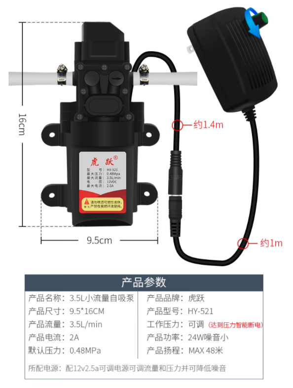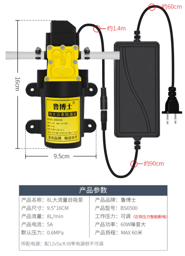 Morning Ax automatic start and stop water pump booster pump/self-priming pump water purifier pure water machine motor water pump self-priming booster pump 12v5a power supply + 60w pump + 3 branch pipe 5 meters