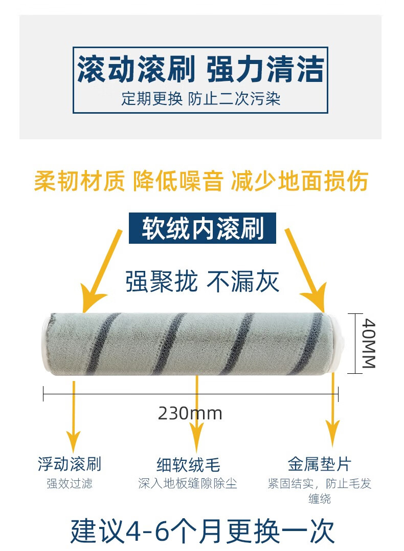 Langshi suitable for Mijia 1C wireless vacuum cleaner roller brush main brush Mijia K10 Chui Mi V9V10 battery electric floor brush soft velvet roller electric mop head suction head accessories Chui Mi large wool floor brush 1 (wide spacing)