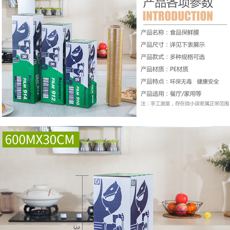 Reluoz cling film 914/912/910 Huimei Reynolds cling film food packaging film Reynolds cling film comes with cutter Reynolds English 910 (30cm*600 meters 4 pounds 1