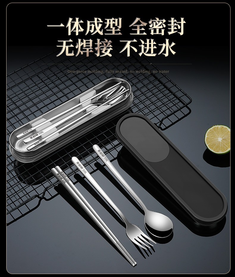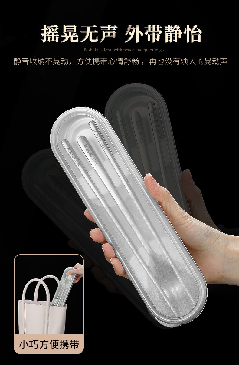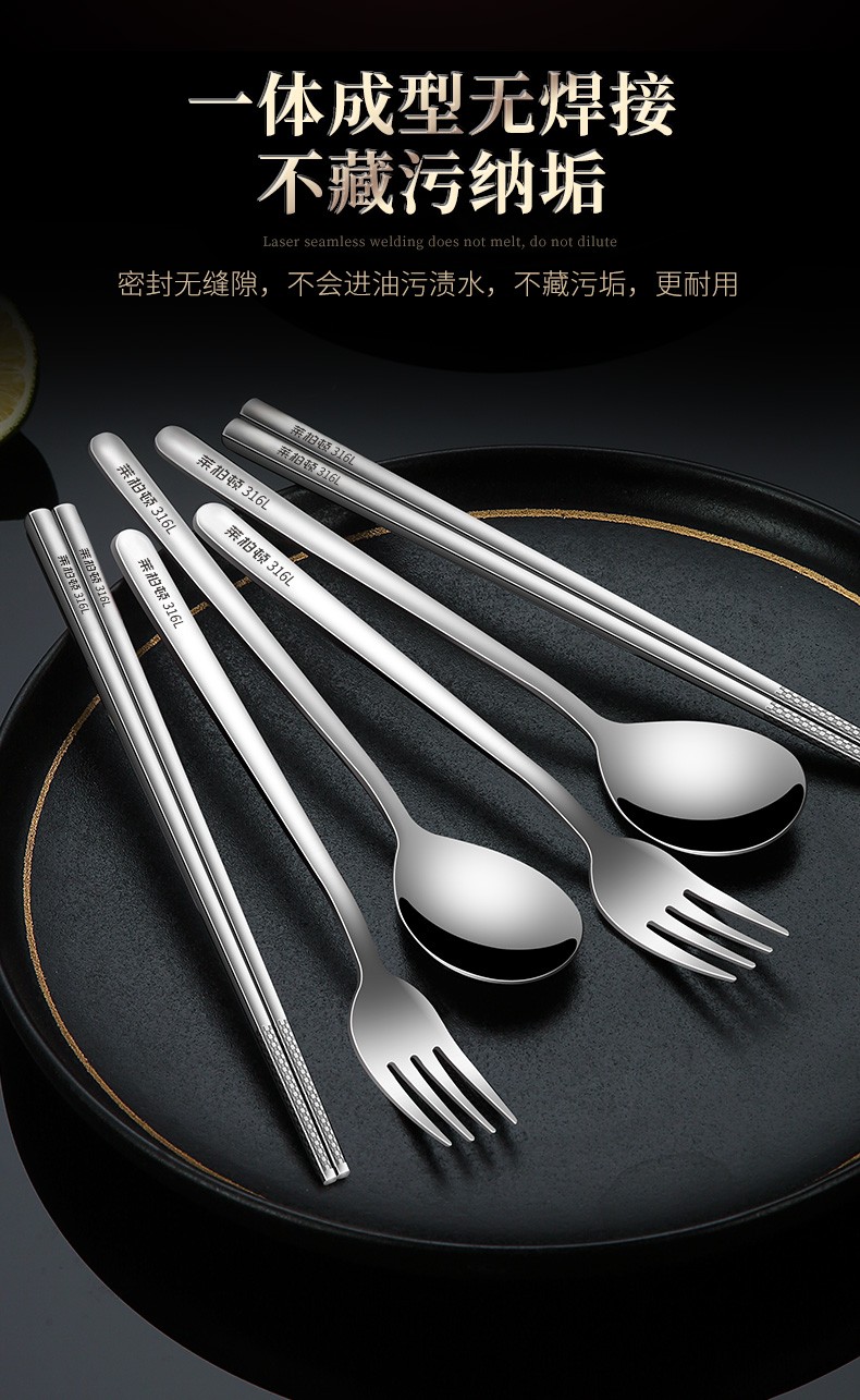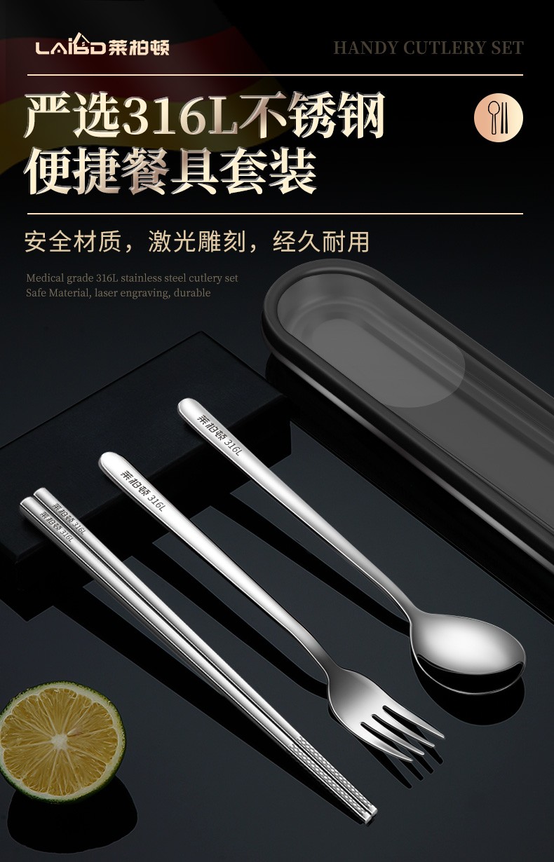 Laberton 316L stainless steel chopsticks, spoons, tableware set, portable tableware, three-piece set for adults, office workers and students, two-piece set, white pc cover + 316L steel box