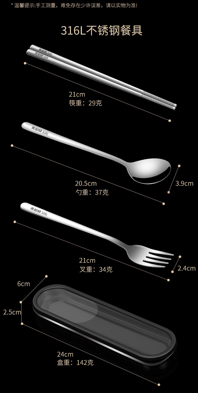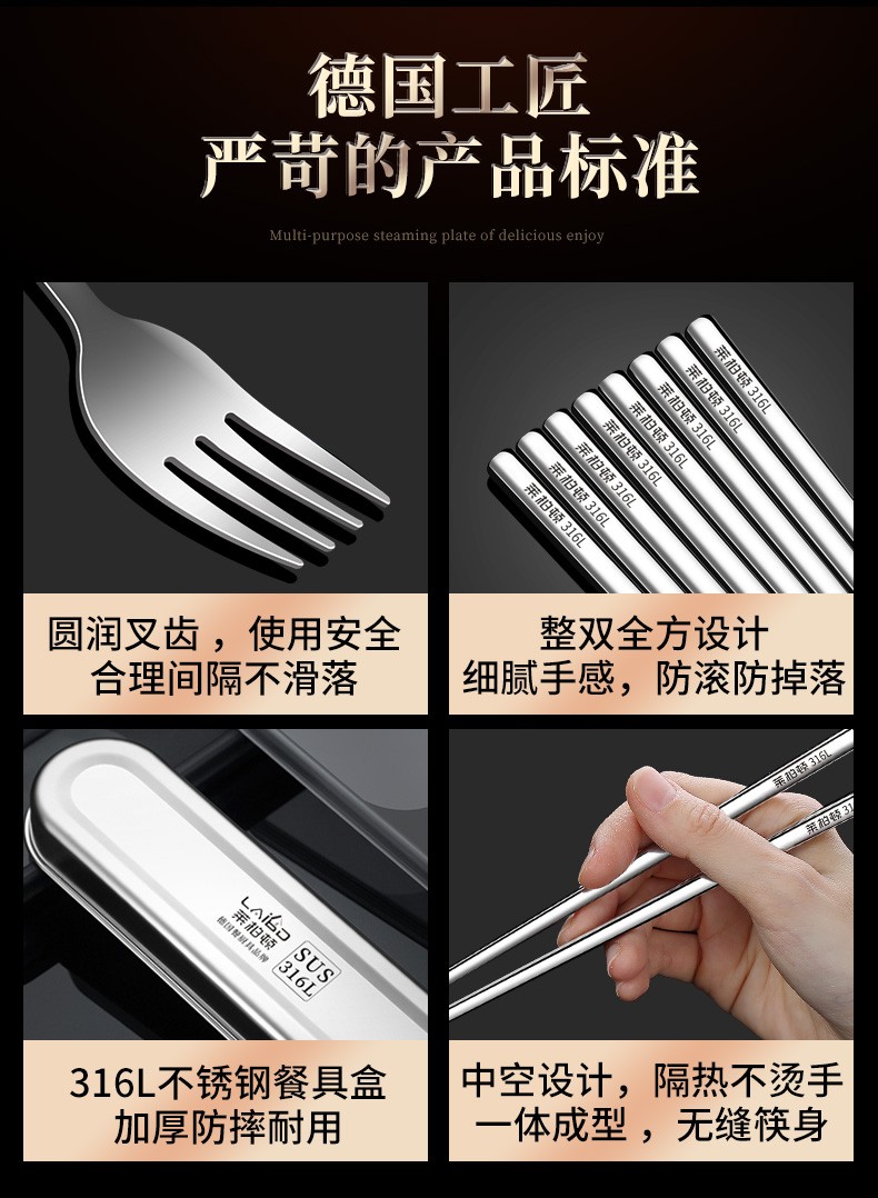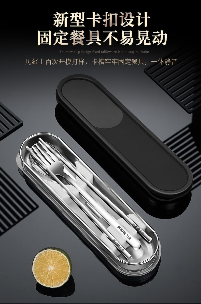 Laberton 316L stainless steel chopsticks, spoons, tableware set, portable tableware, three-piece set for adults, office workers and students, two-piece set, white pc cover + 316L steel box