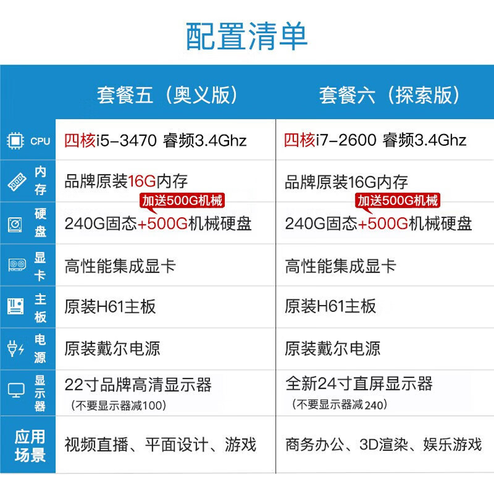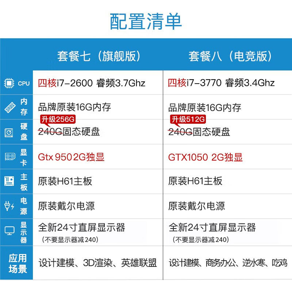 Dell second-hand computer desktop i7/i5/i3 independent graphics gaming online course learning business office design chicken home use complete set 8 i7/16G/512G solid state/2G independent graphics/24 inch complete set 90% new
