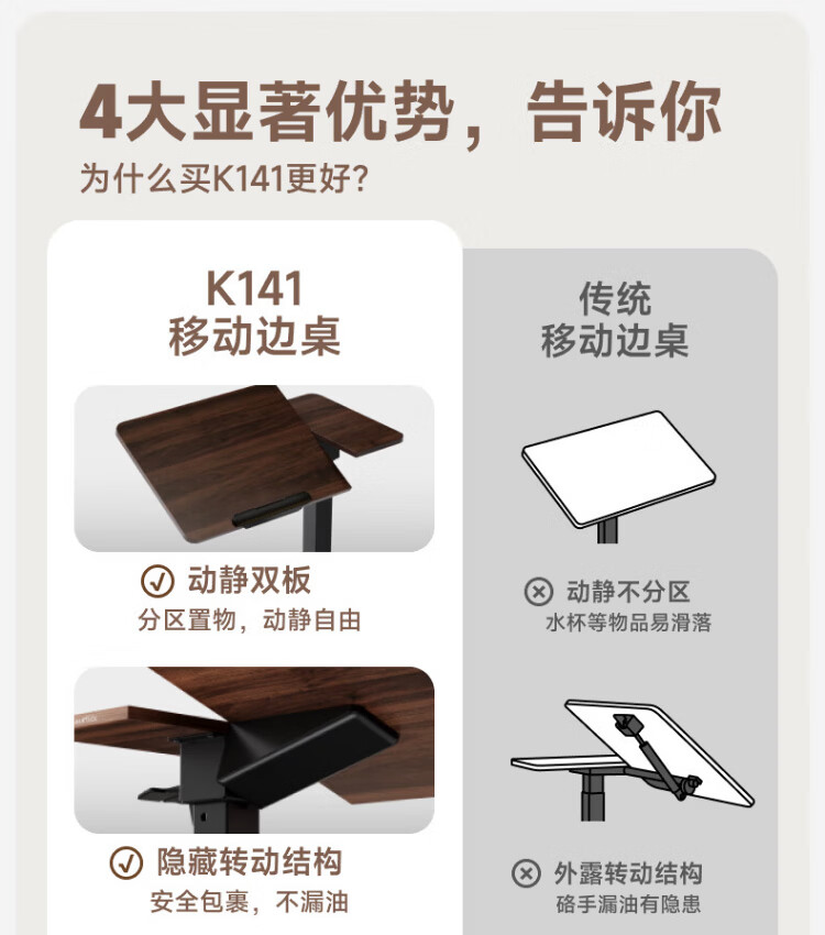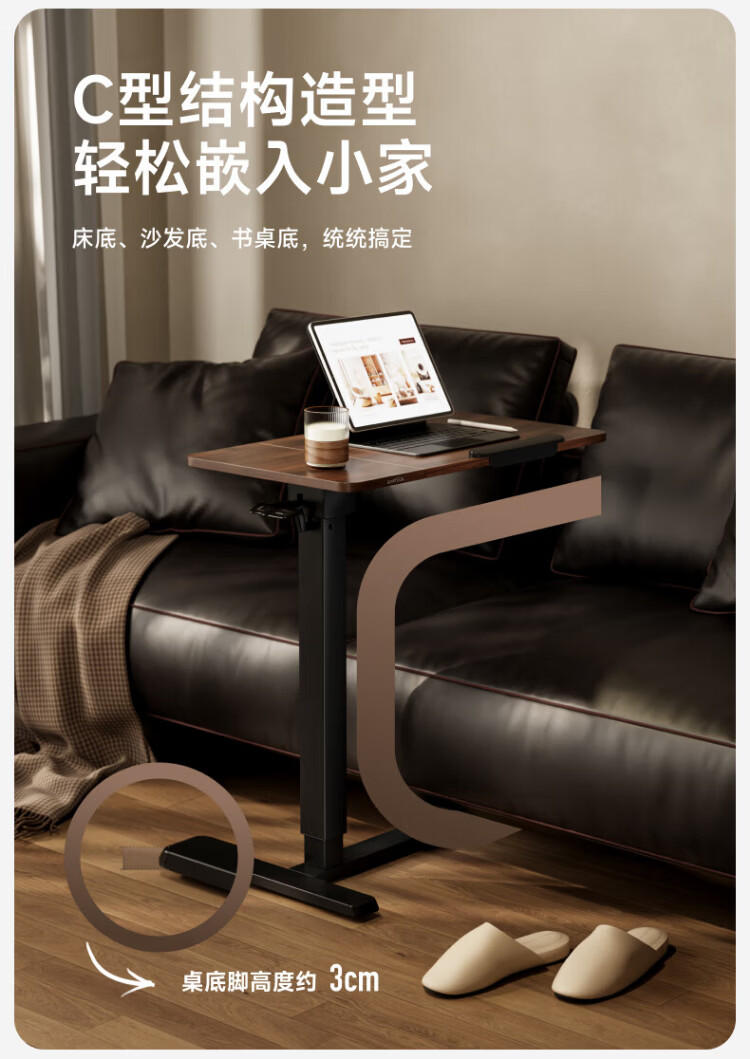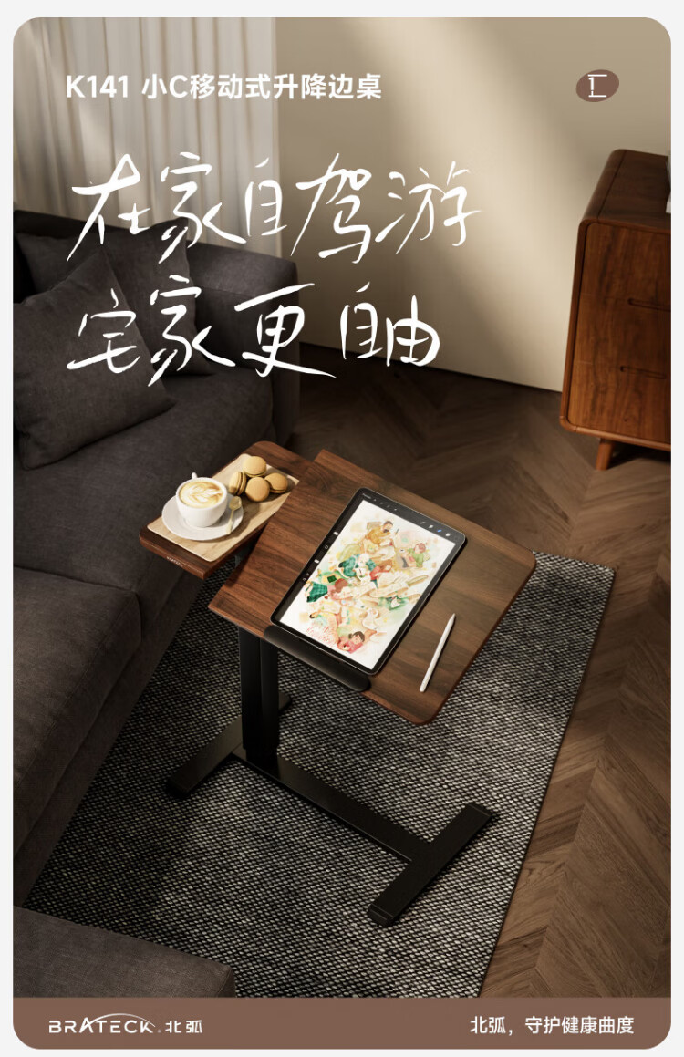 Brateck North Arc Bedside Table Pneumatic Lift Table Mobile Computer Table Desk Sofa Coffee Table Side Table Storage Rack K141 Upgraded Model丨Adjustable Table Board丨K151 White