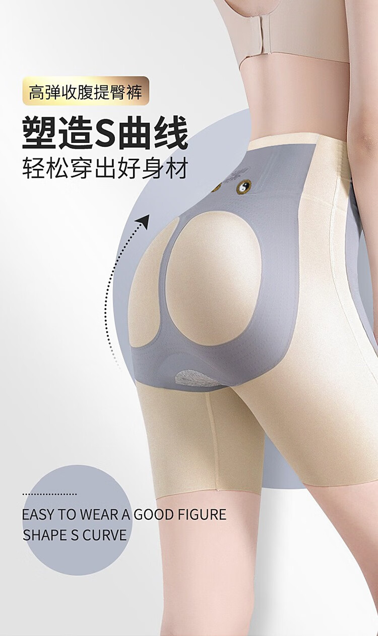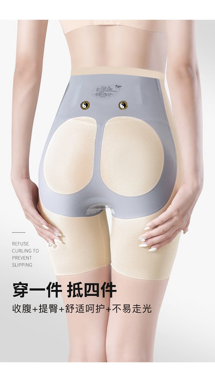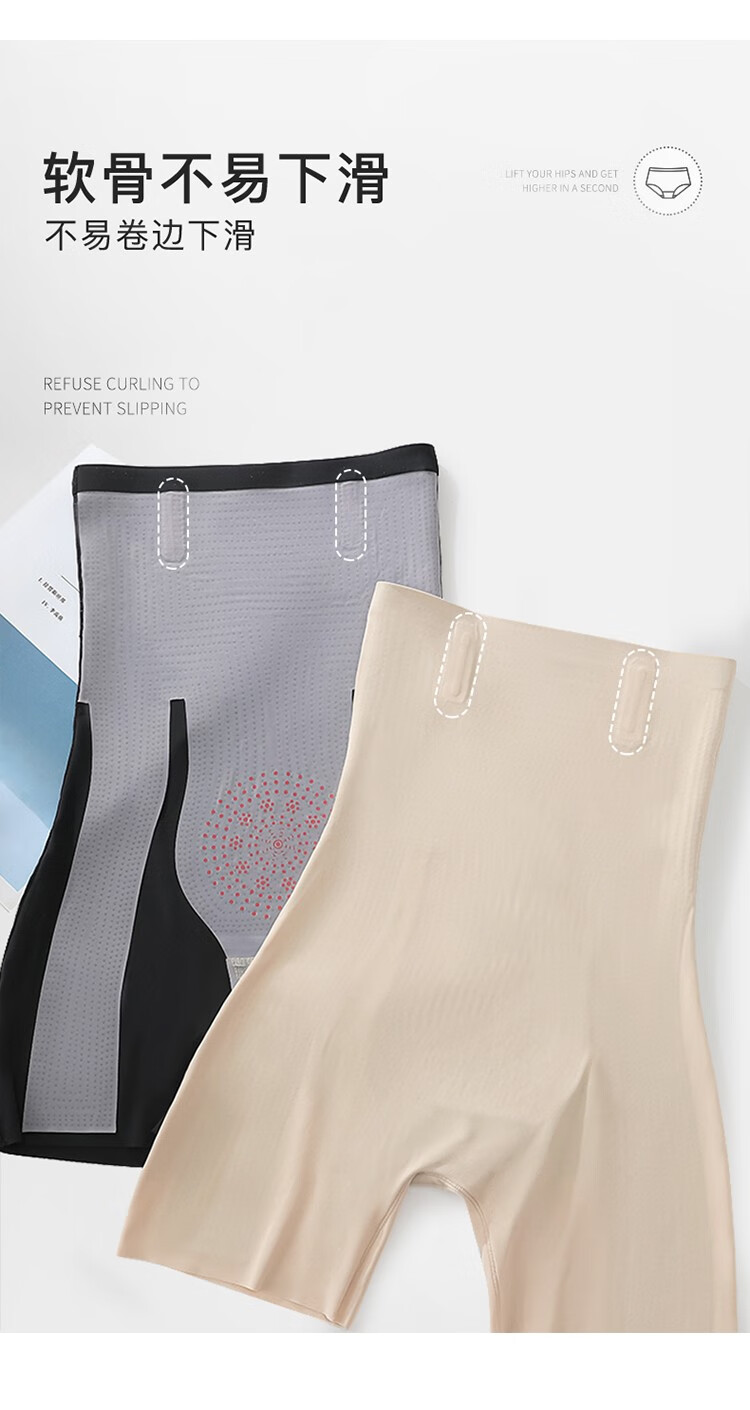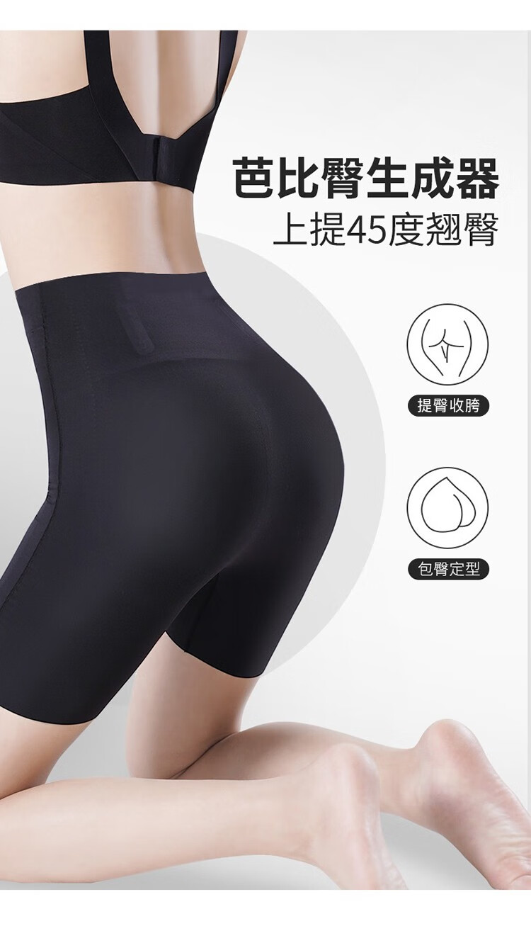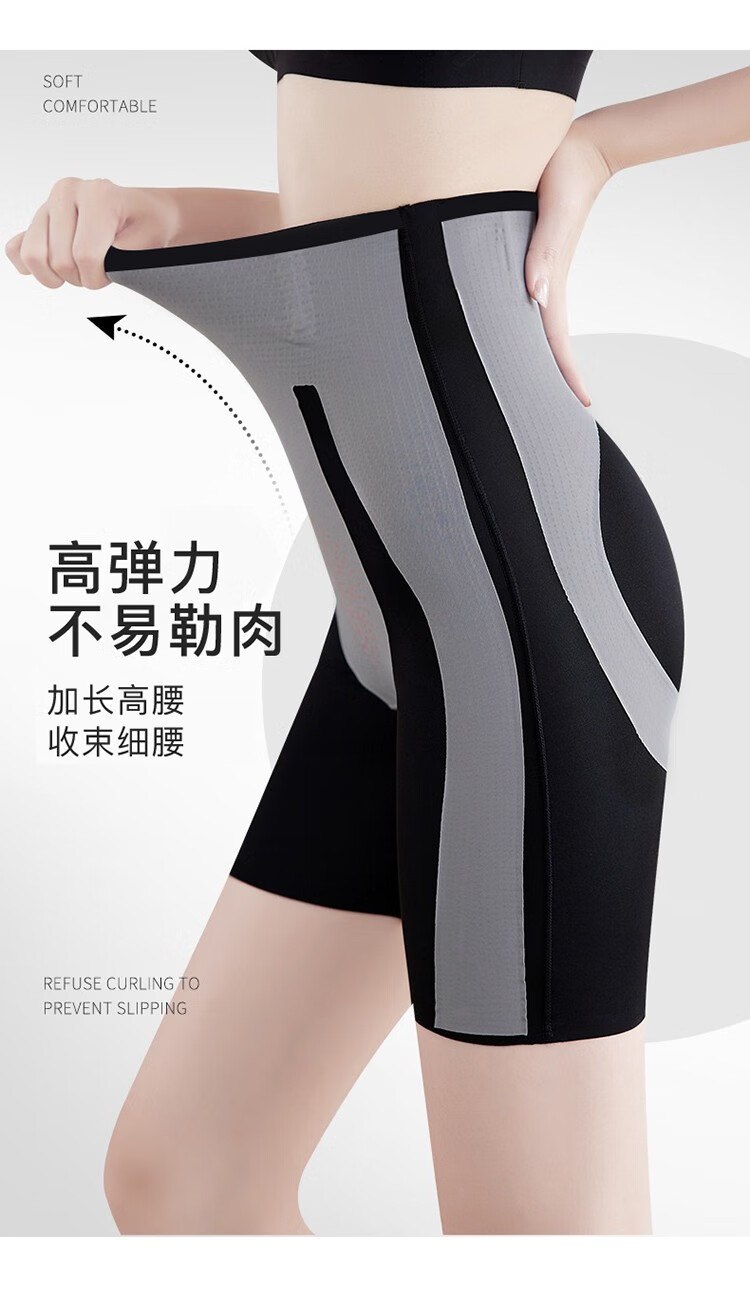 Langsha tummy-tightening butt-lifting pants, summer thin high-waisted waistband, belly-shrinking, seamless elastic fitness cycling five-point safety pants, no need to wear underwear, black L (recommended 96-115 pounds)