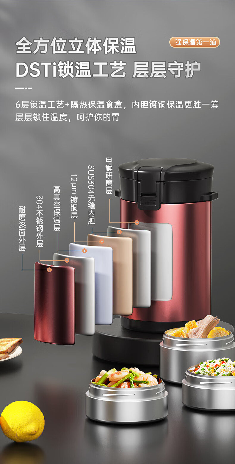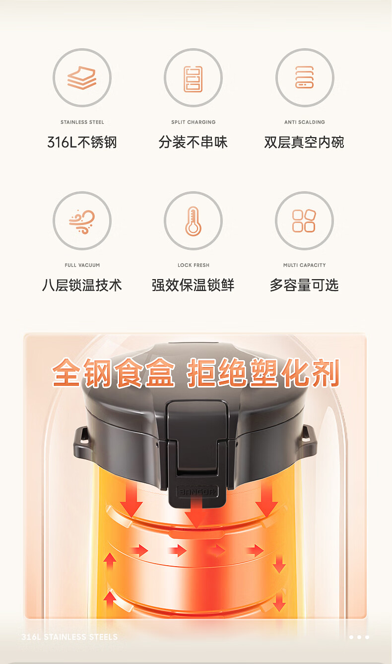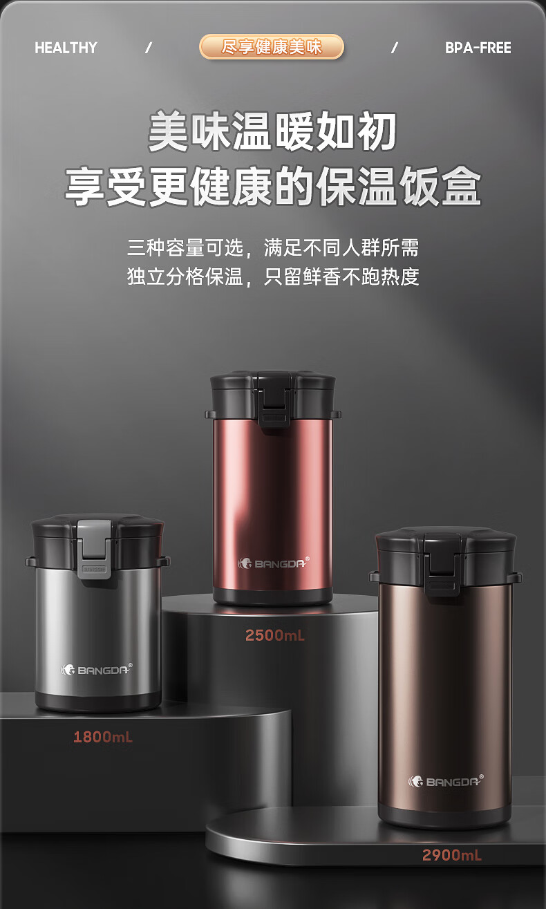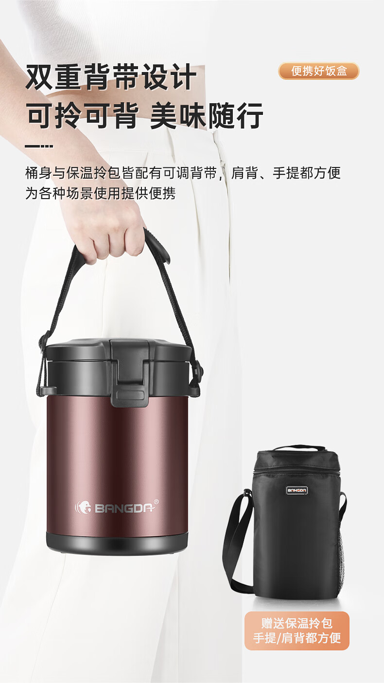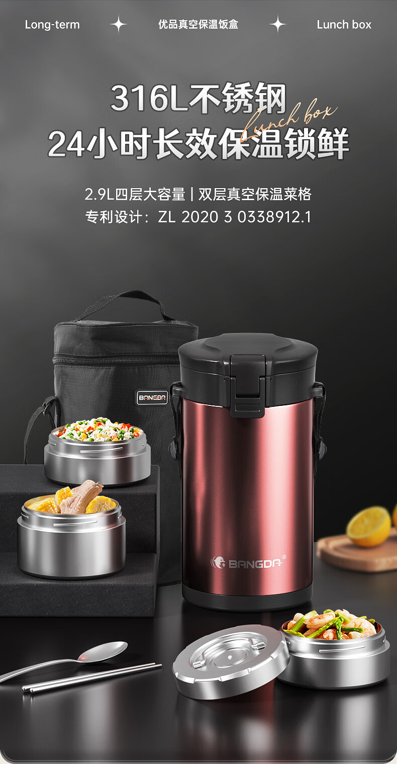 Bangda (BDFH33) stainless steel 316 insulated lunch box 24-hour insulated student office worker portable multi-layer lunch box Noble Purple 2900Ml 4 layers 304 styles