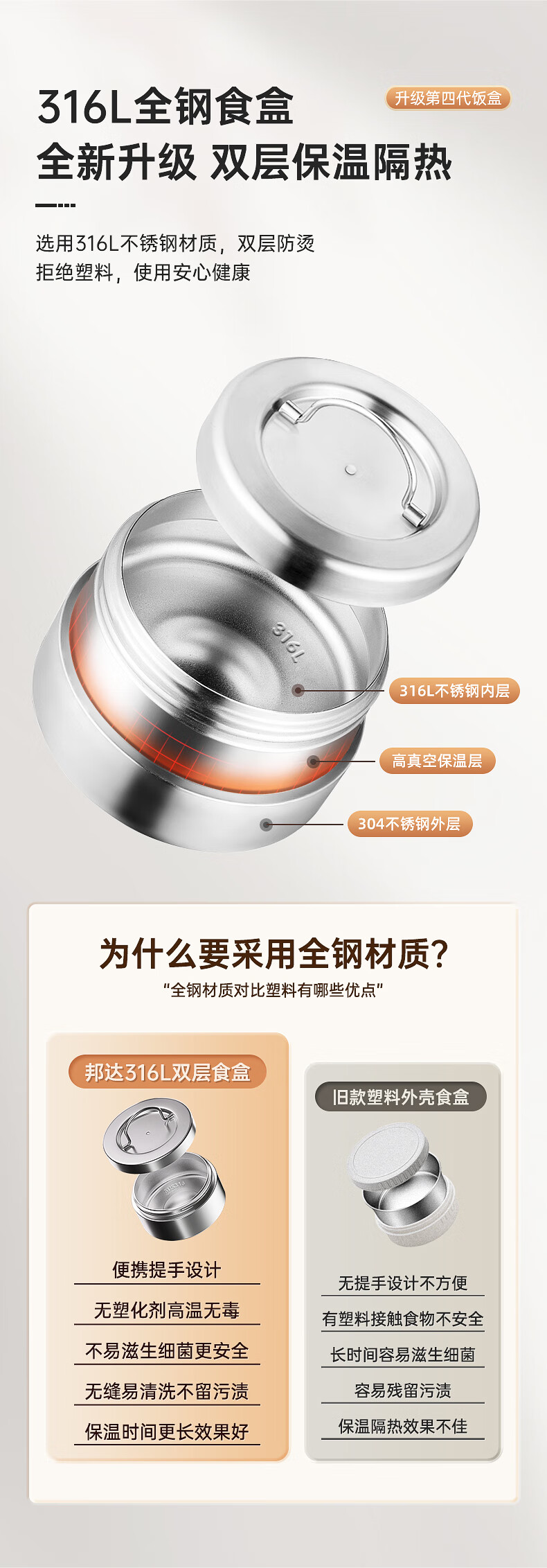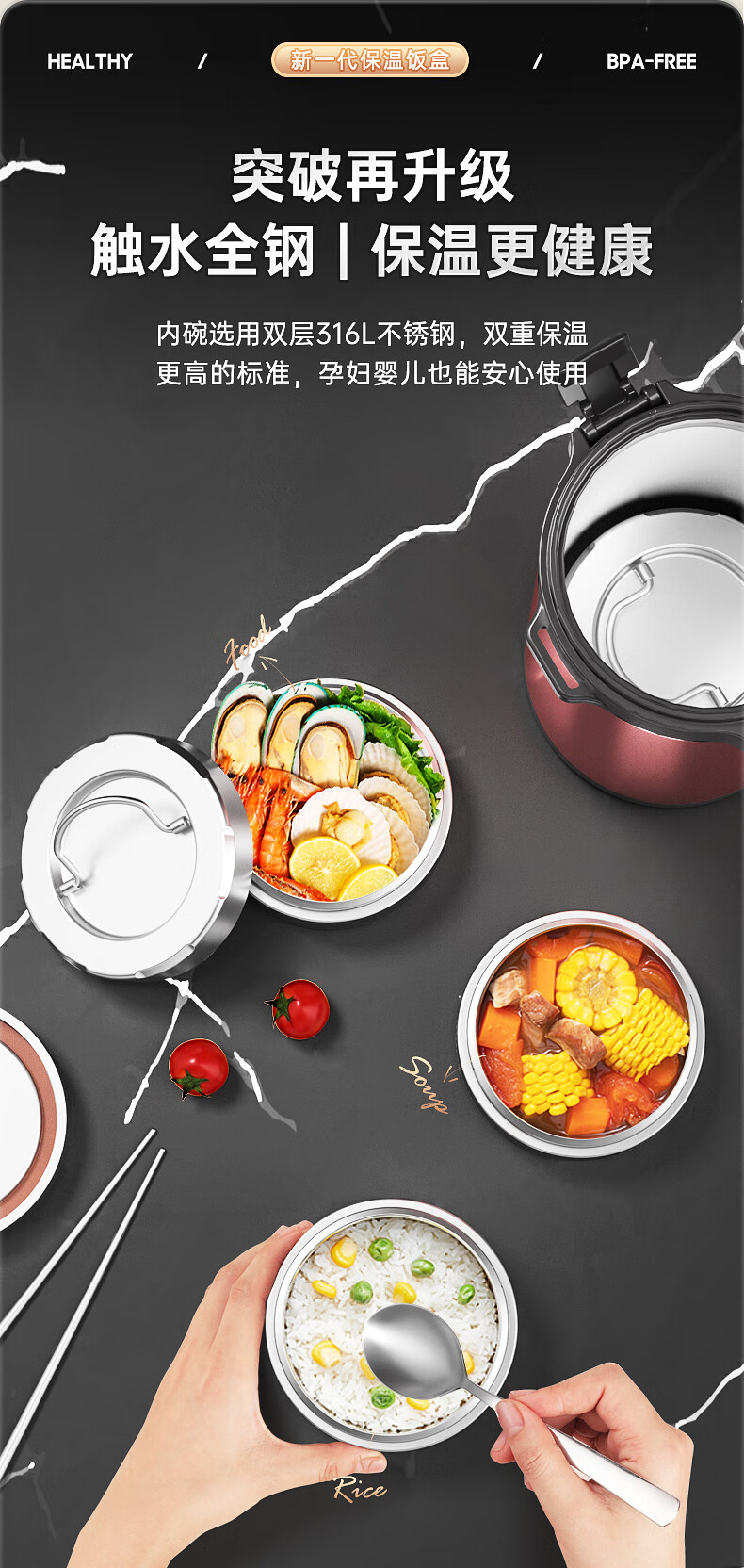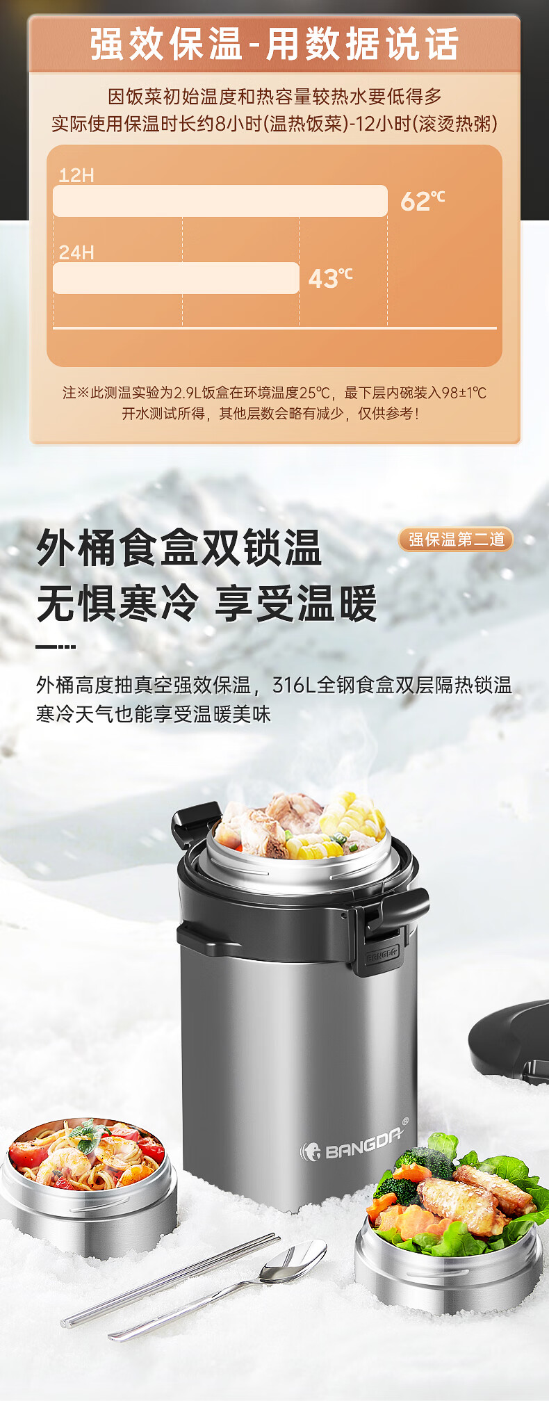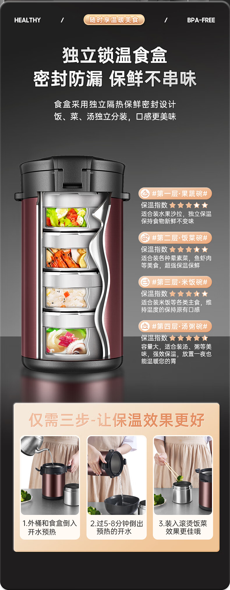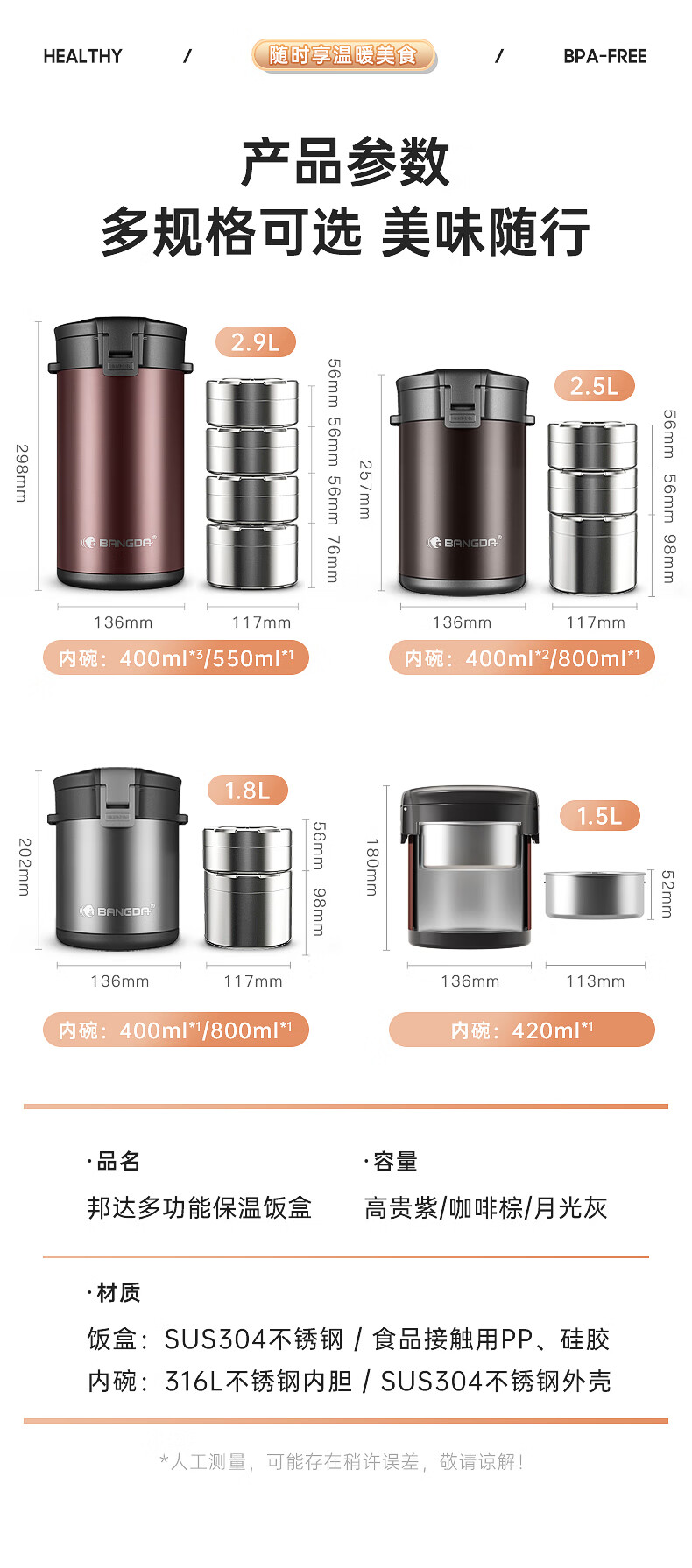 Bangda (BDFH33) stainless steel 316 insulated lunch box 24-hour insulated student office worker portable multi-layer lunch box Noble Purple 2900Ml 4 layers 304 styles