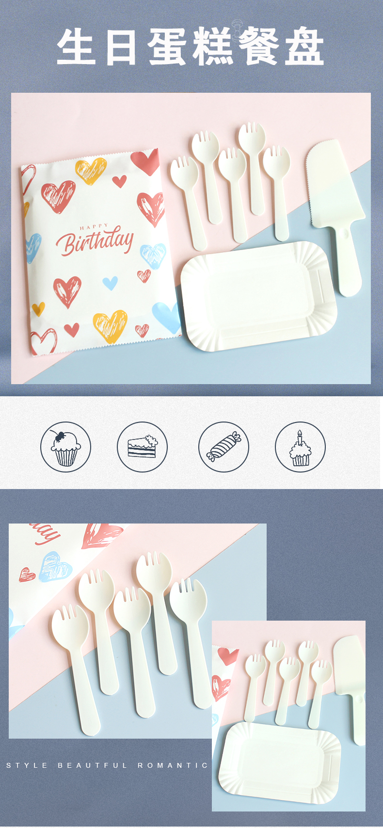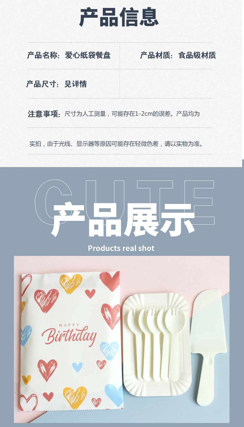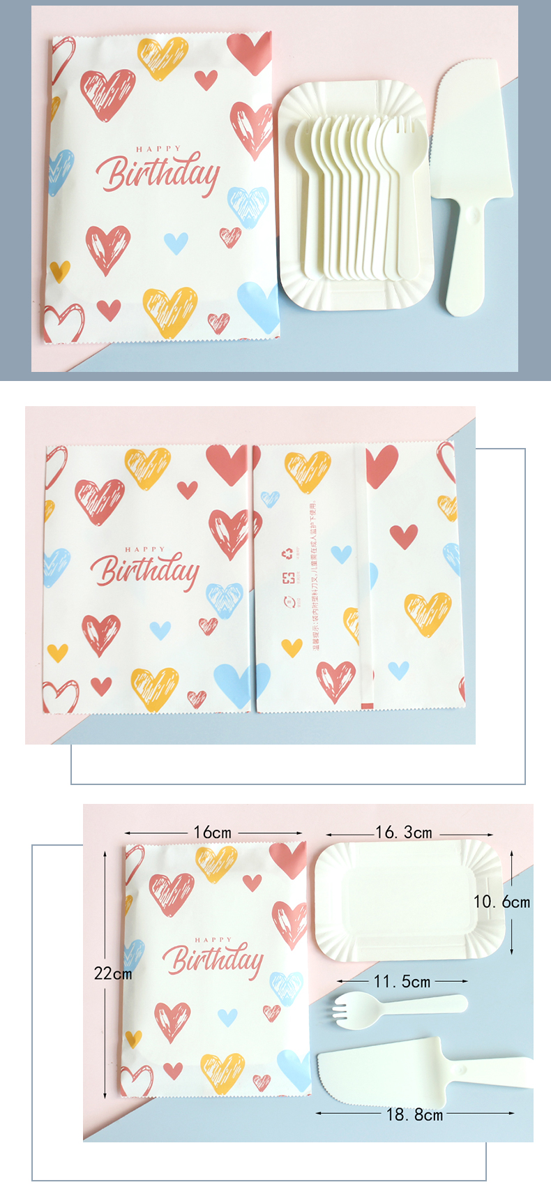 Chuanye disposable knife and fork plate combination cake plate birthday party party tableware rectangular paper plate plate fork 5 plates 5 forks plus knife 100 sets