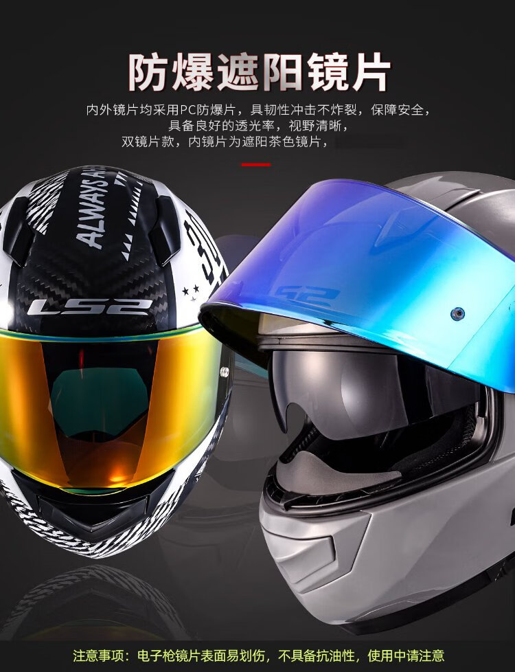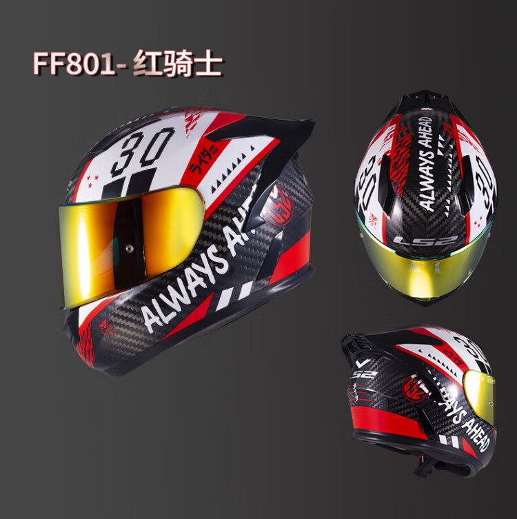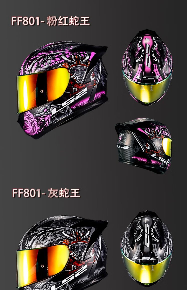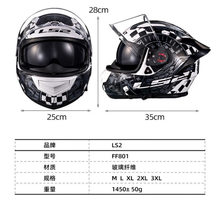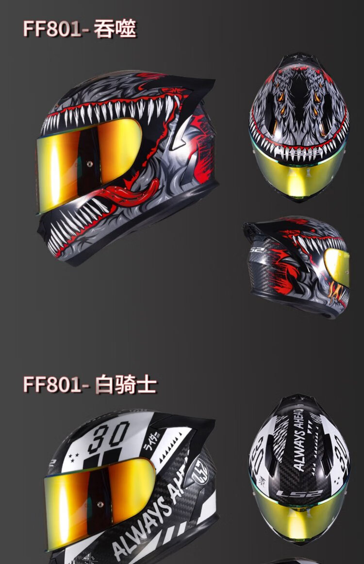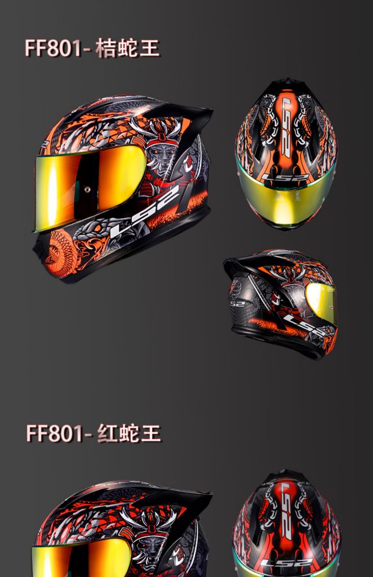 LS2 carbon fiber motorcycle helmet for men and women, all-season full-face helmet, anti-fog, large rear wing FF801 6K single lens - carbon fiber large rear wing model - bright black 2XL (59-60 head circumference recommended)