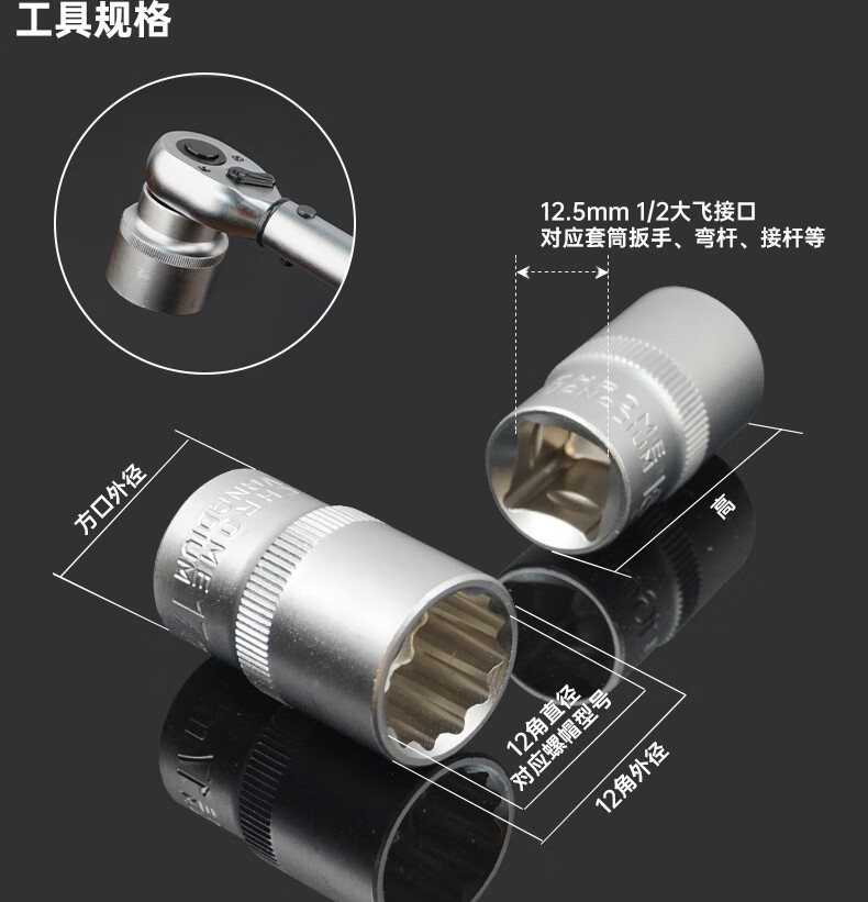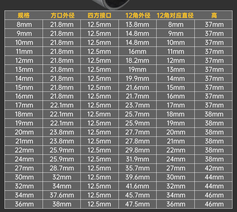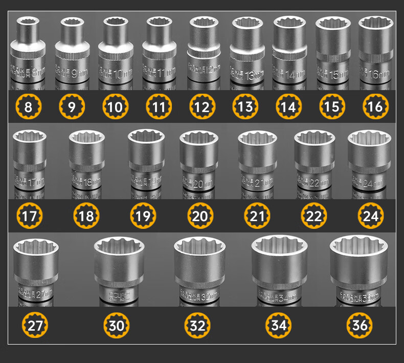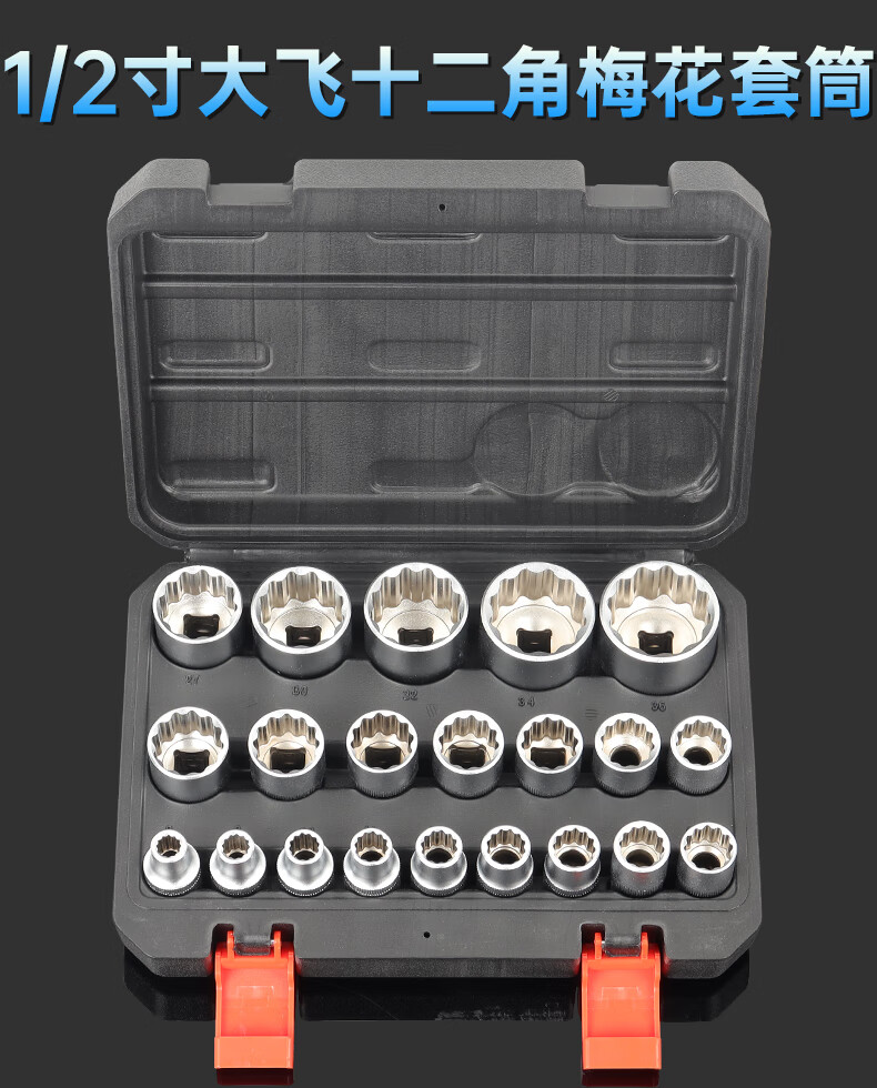 Coolanteng 12-point plum blossom socket set 12-point plum blossom socket 1/2 inch large flying small wind cannon socket head 8-36mm 21 pieces twelve-point plum blossom 8-36mm