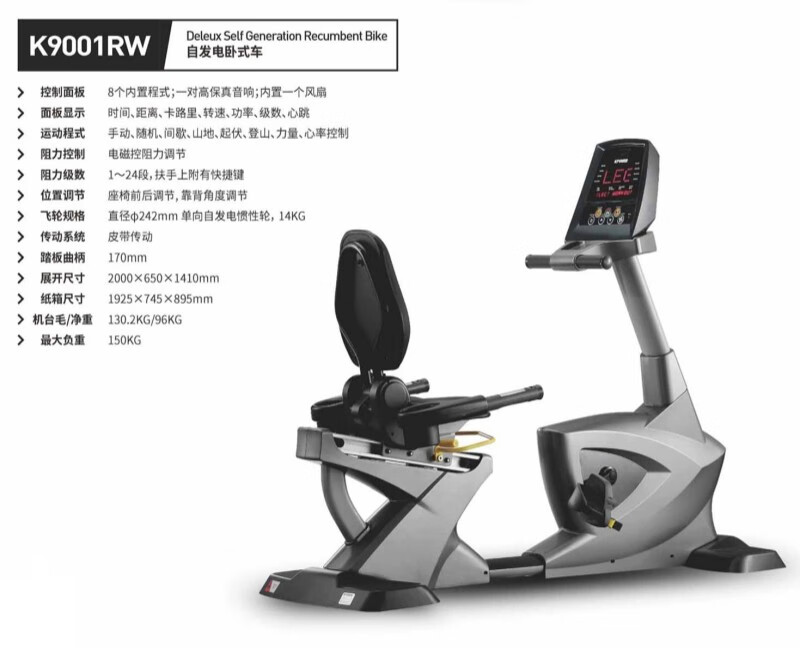Kang Lejia KPOWER high-end commercial self-powered horizontal exercise bike K9001RW gym professional luxury bicycle high-end commercial vertical exercise bike K9001W
