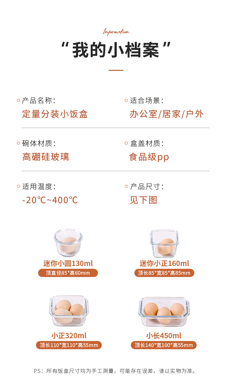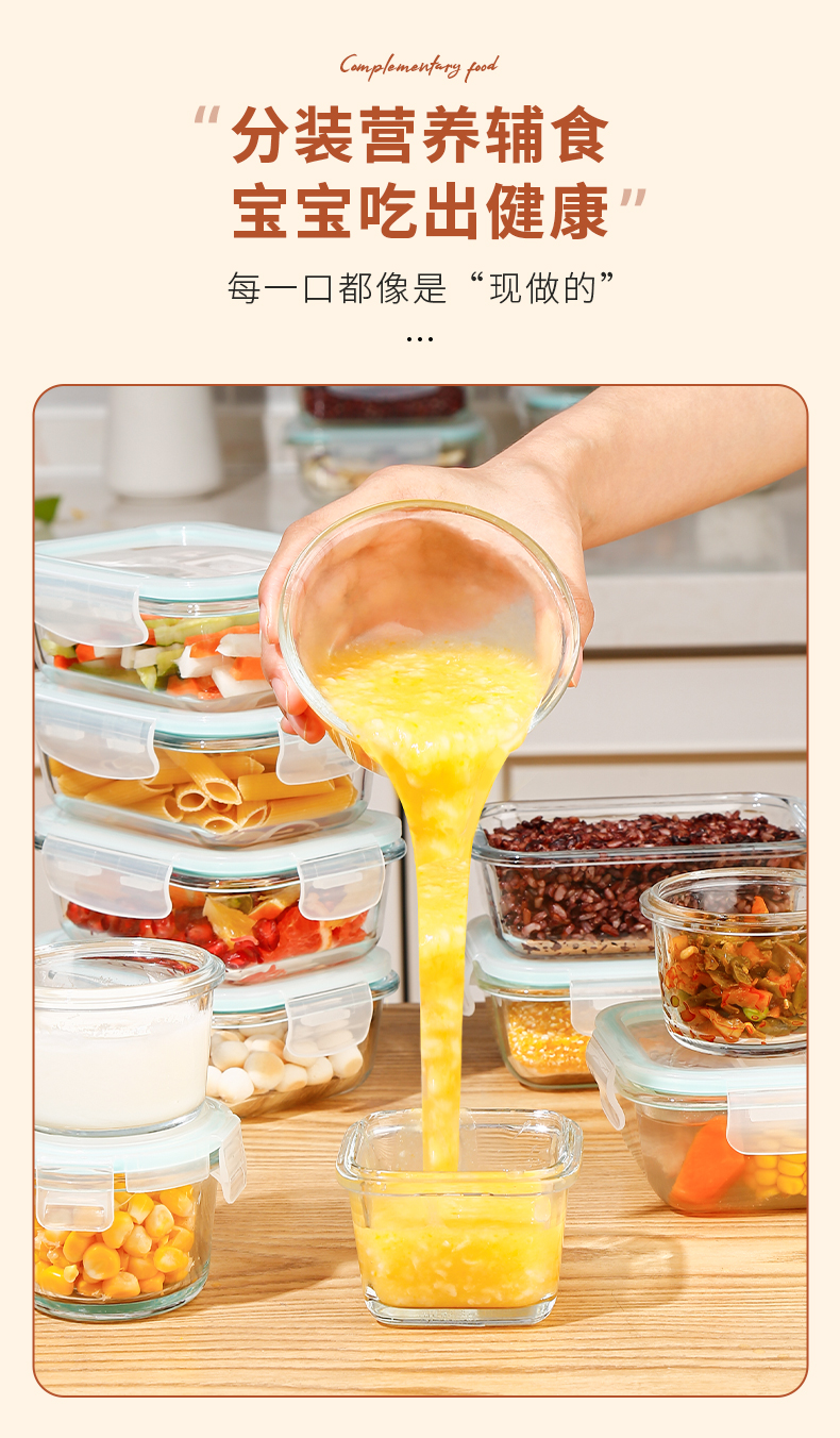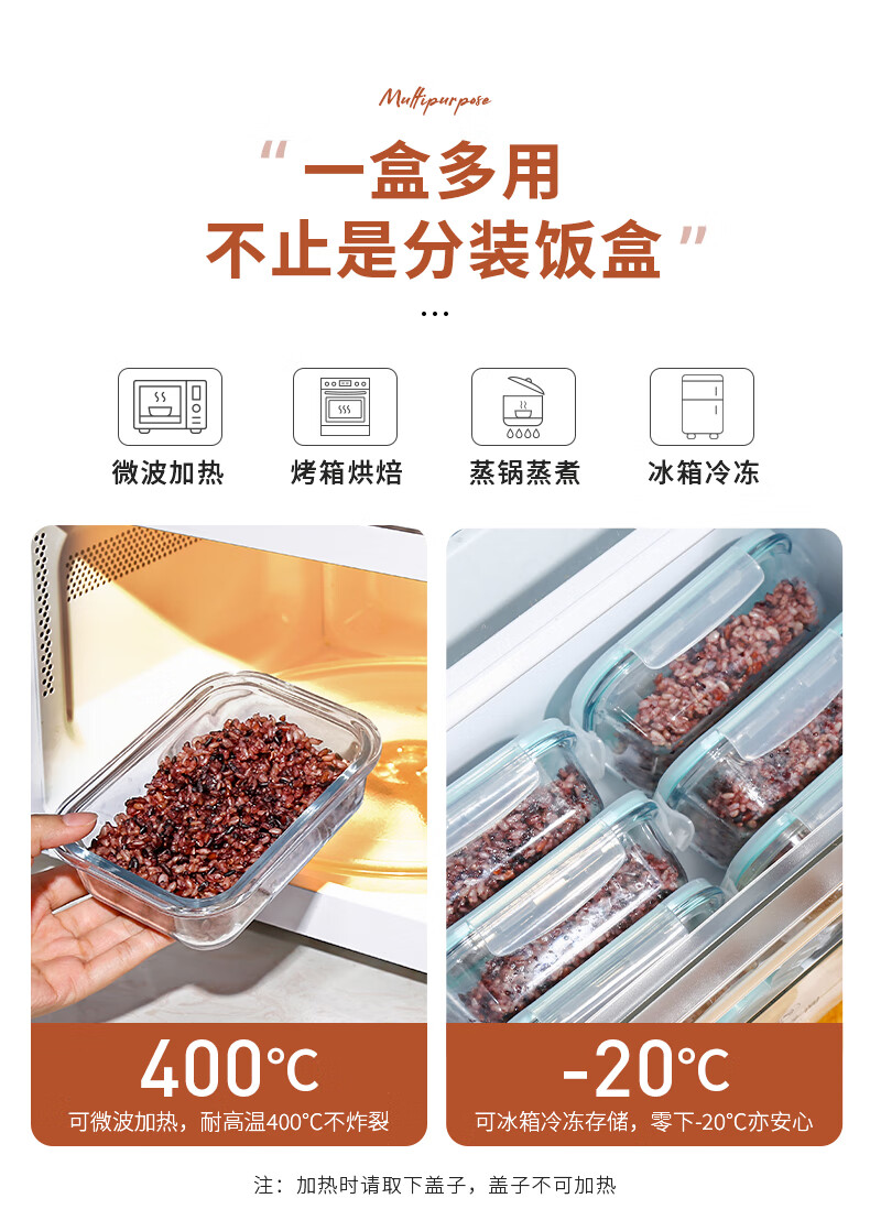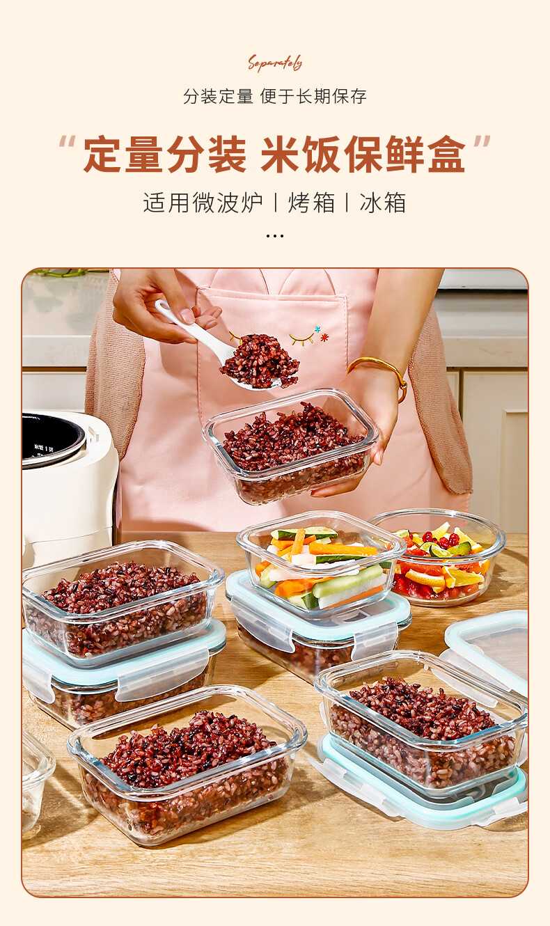 Cilock multigrain rice sub-packaging frozen box brown rice fat-reduced quantitative small lunch box glass lunch box refrigerator storage crisper mini Xiaozheng 160ml*4